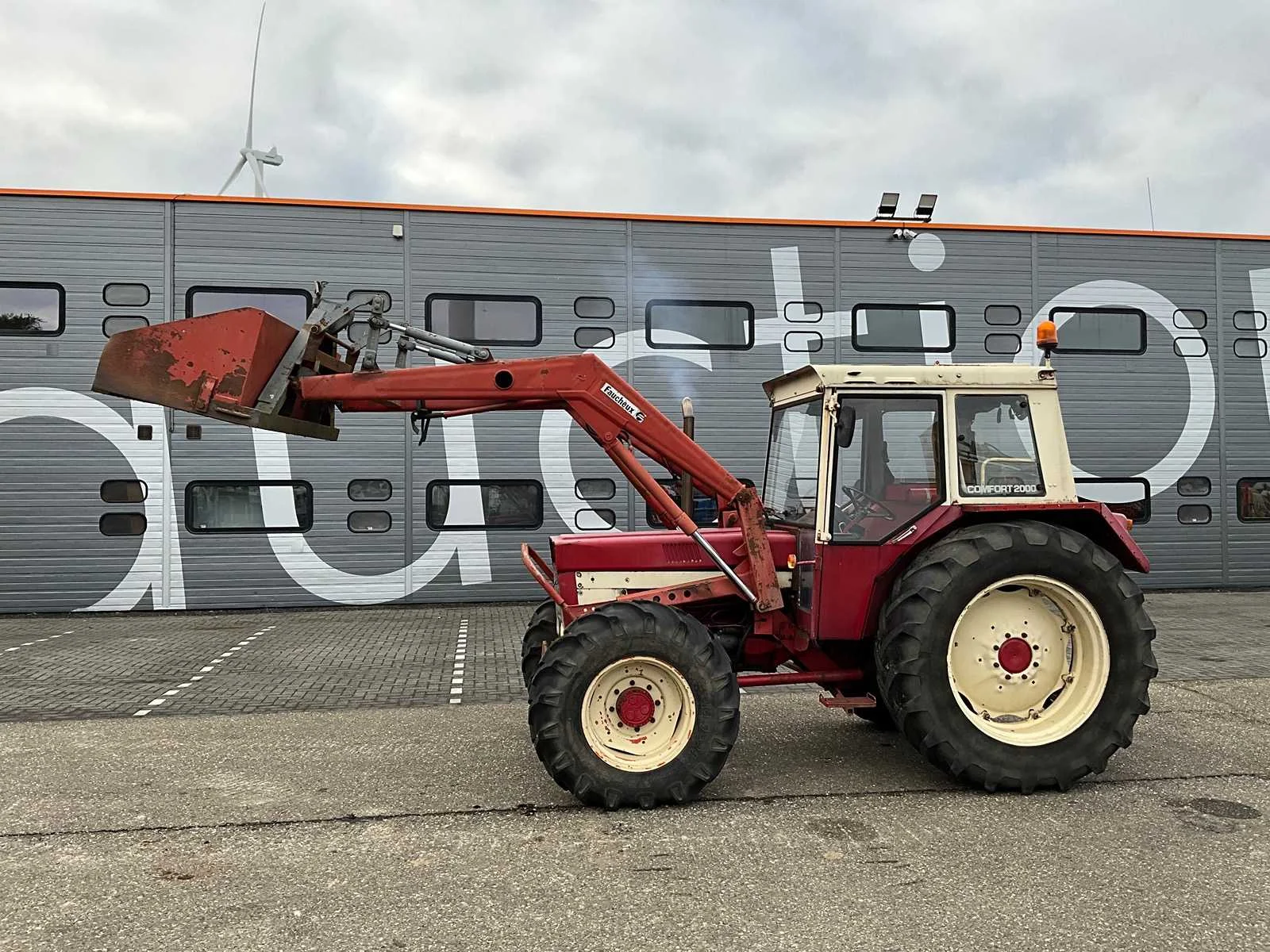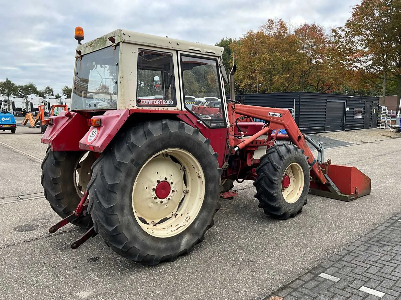 Faucheux voorlader met bak 2000mm, ZF 4WD as, stuurbekrachtiging, 4-cilinder international diesel motor, 3-punt hefinrichting, 540/1000 PTO, comfort 2000 cabine Nee Merk: International Type: 844AS Motorvermogen (kW): 84kW Afgelezen urenstand: 9337 Versnellingsbaktype: Handgeschakeld Bandenmaat voor: 14.9-24 Bandenmaat achter: 18.4-38 Voorlader: true Cabine: true Totale afmeting L: 6000mm Totale afmeting Breedte: 2100mm Totale afmeting Hoogte: 2700mm Nationaliteit documenten: Geen