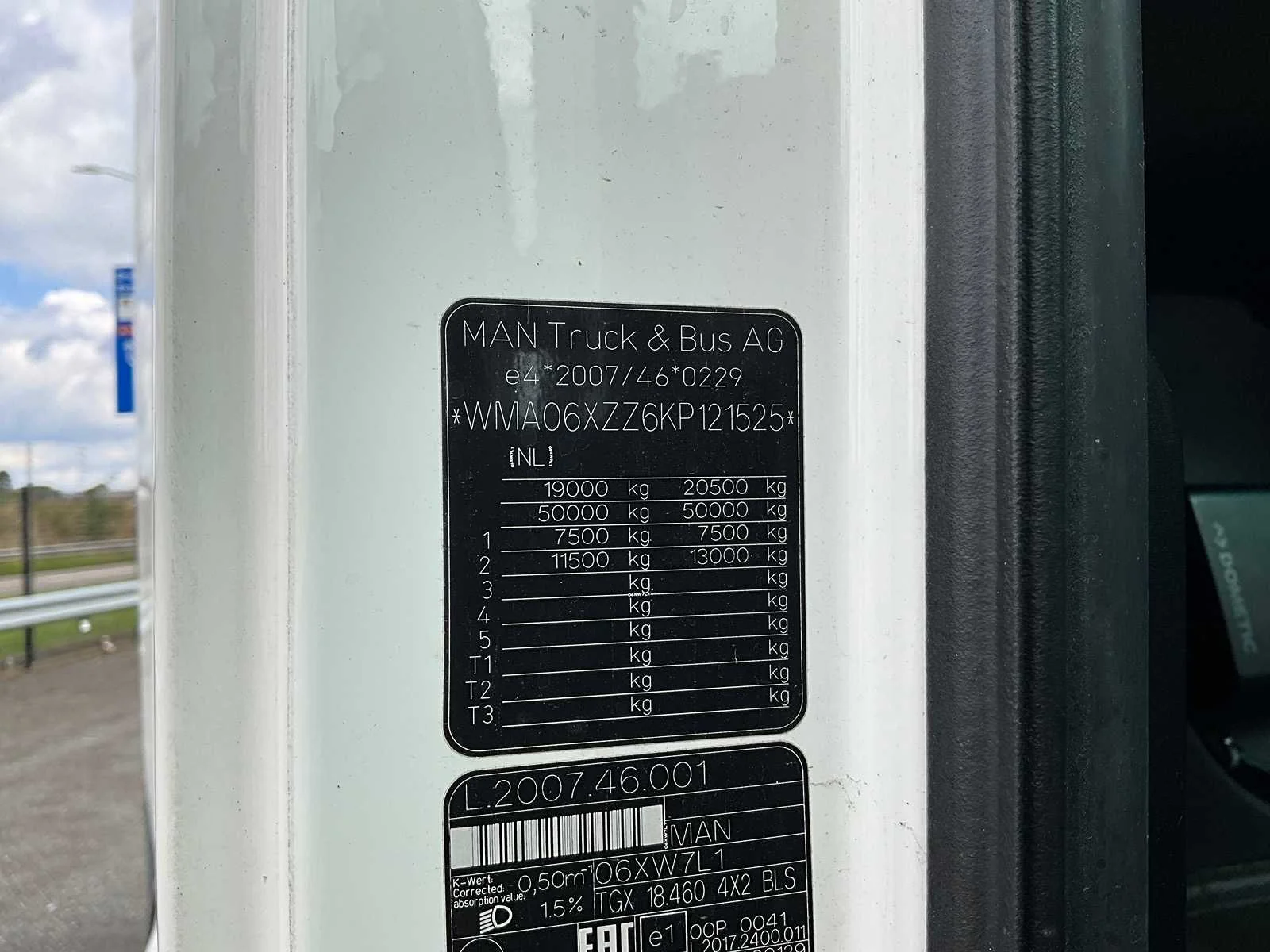 Elektrische ramen en spiegels, spiegel verwarming, stuurwiel bediening, airco, sper, digitale tachograaf, koelkast, slaapcabine, dubbele brandstoftank, start onderbreker Nee Merk: MAN Type: TGX 18.460 4x2 Bouwjaar: 2018 Chassisnummer VIN: WMA06XZZ6KP121525 Cilinderinhoud: 12419cc Kilometerstand bij opname: 684980km Datum eerste toelating: 27-12-2018 Type transmissie: Automatisch Aantal assen: 2 Asconfiguratie: 4x2 Fuel Type: Diesel Emissieklasse: EURO6 Slaapcabine: true Eigen gewicht: 7966kg Nationaliteit documenten: Litouwen Kentekenpapieren compleet?: true Aantal zitplaatsen: 2 Automaat: true