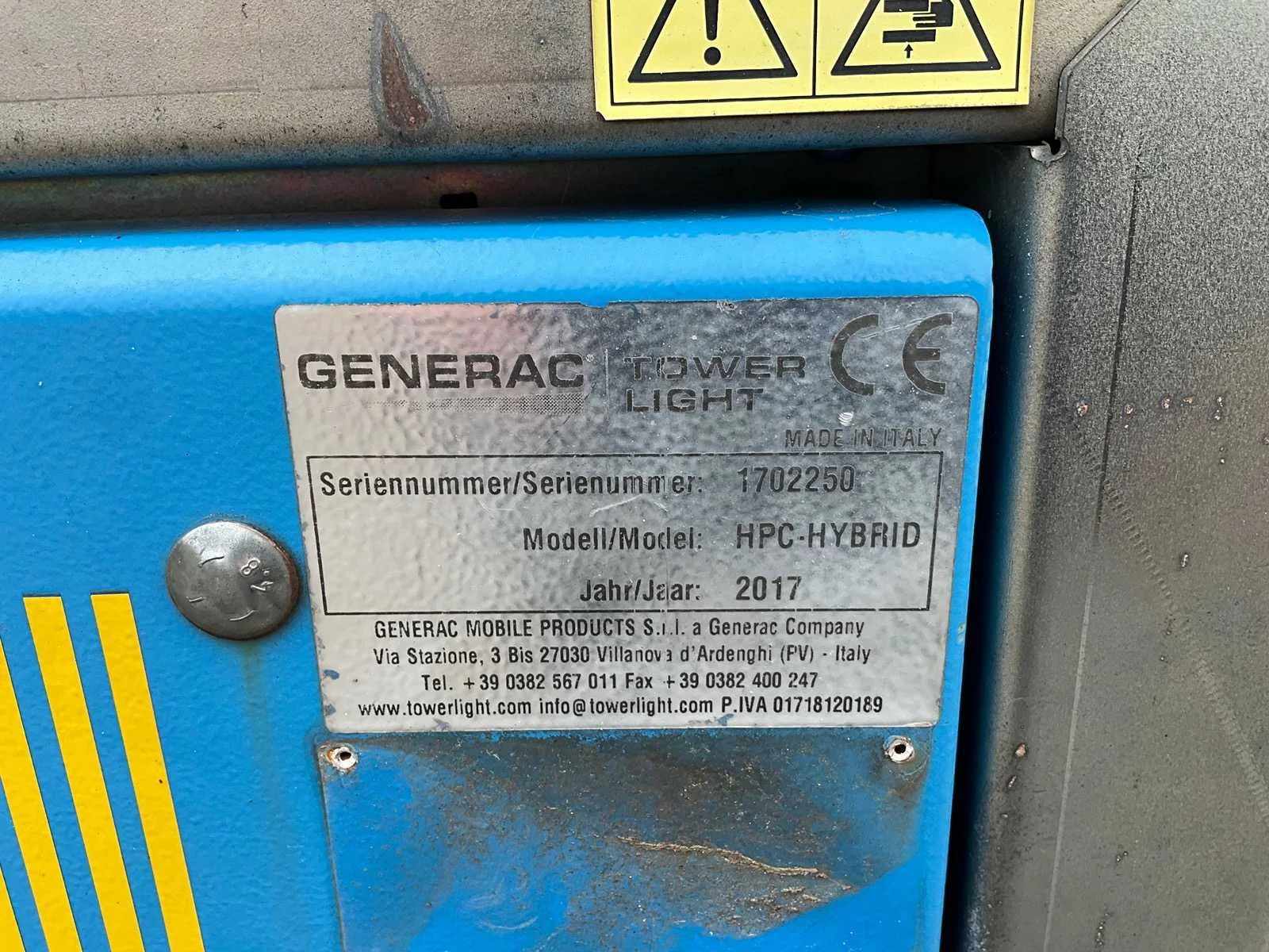 Yanmar L70 diesel motor, 4x led lamp, hybride, stempelpoten Nee Merk: Generac Type: Light Tower Bouwjaar: 2017 Serienummer: 1702250 LED: true Aansluiting: 220V Totale afmeting L: 1300mm Totale afmeting Breedte: 1300mm Totale afmeting Hoogte: 2450mm