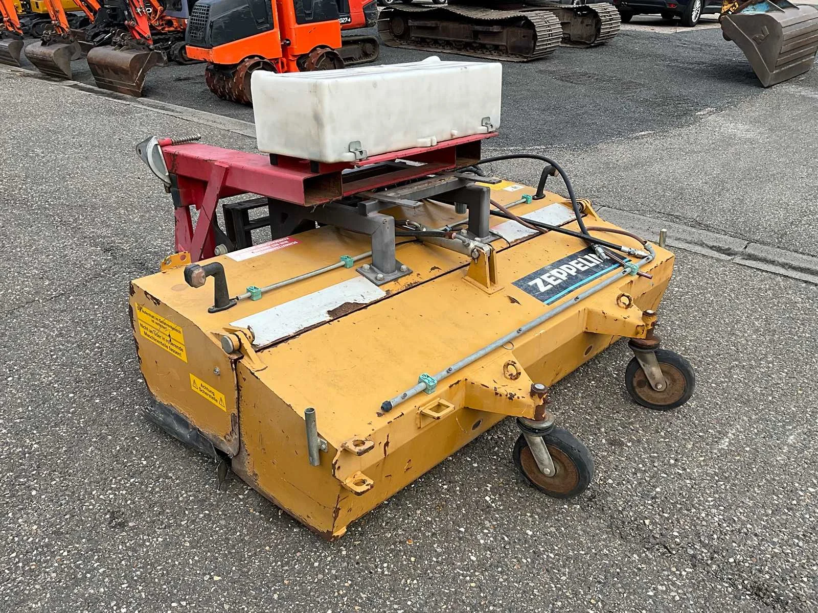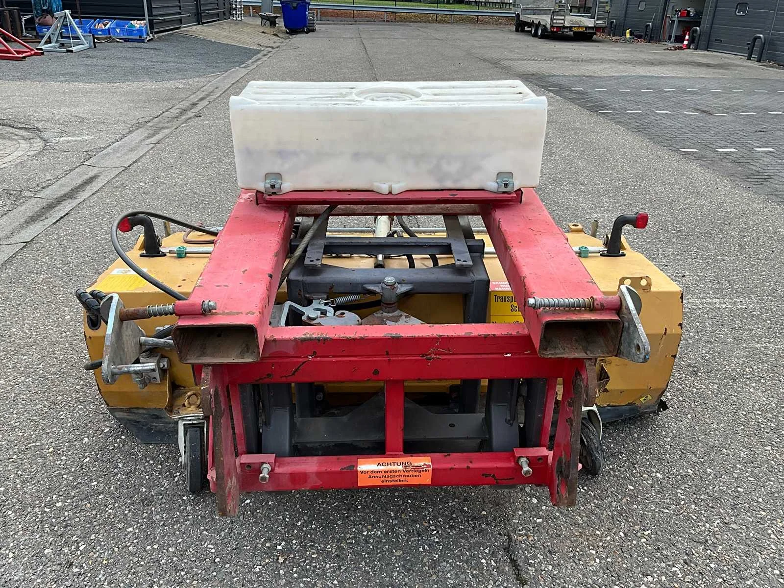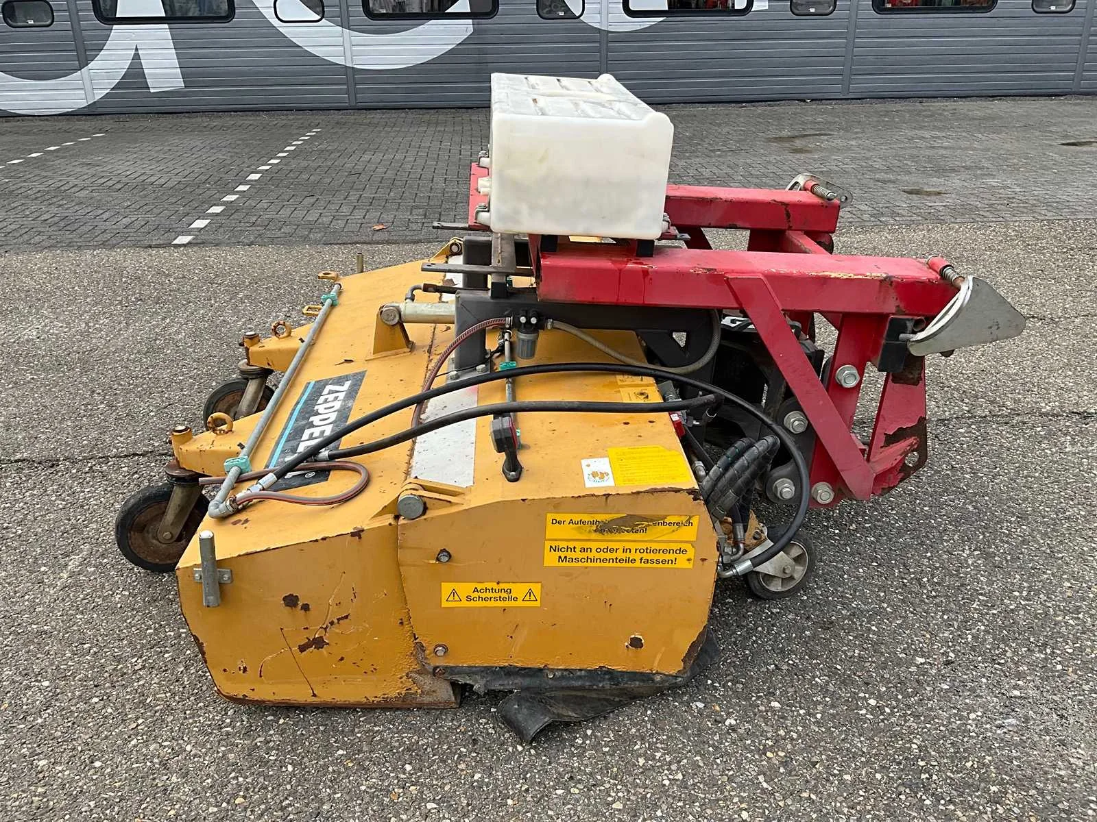 Werkbreedte 2000mm, passend aan vorken en snelwissel, mechanisch in schuinte verstelbaar, hydraulische aandrijving en hydraulische opvangbak Nee Merk: Zeppelin Type: UKM2.0 Bouwjaar: 2015 Serienummer: 530309 Eigen gewicht: 720kg Totale afmeting L: 2200mm Totale afmeting Breedte: 2100mm Totale afmeting Hoogte: 1200mm