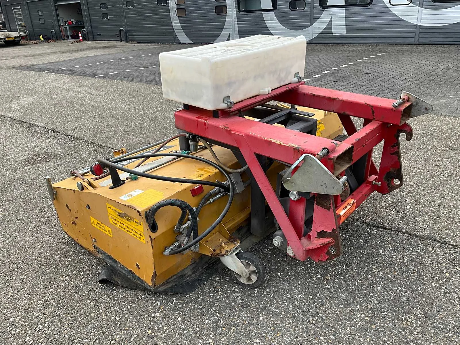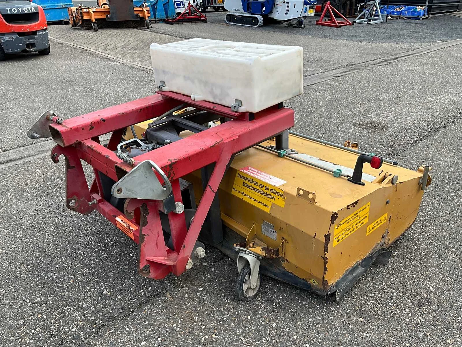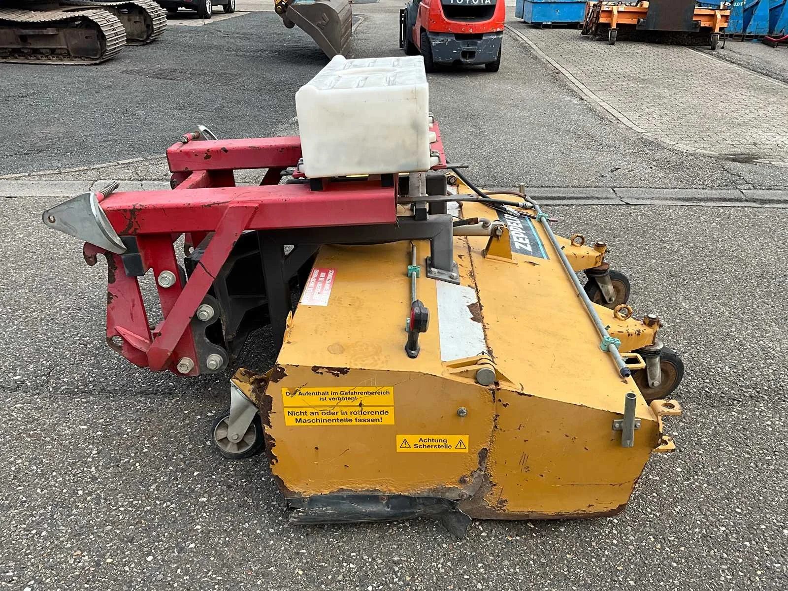 Werkbreedte 2000mm, passend aan vorken en snelwissel, mechanisch in schuinte verstelbaar, hydraulische aandrijving en hydraulische opvangbak Nee Merk: Zeppelin Type: UKM2.0 Bouwjaar: 2015 Serienummer: 530309 Eigen gewicht: 720kg Totale afmeting L: 2200mm Totale afmeting Breedte: 2100mm Totale afmeting Hoogte: 1200mm