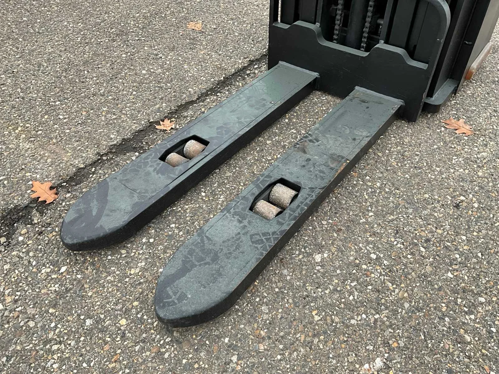 3-delige freelift mast, hefhoogte 4400mm, opgebouwde 220V lader, geen rubber meer op de wielen Nee Merk: EP Equipment Type: ES16 Bouwjaar: 2020 Serienummer: 3291600863 Hefvermogen: 1600kg Lepellengte: 1150mm Accu lader: true Afgelezen urenstand: 115 Eigen gewicht: 1220kg Totale afmeting L: 2000mm Totale afmeting Breedte: 850mm Totale afmeting Hoogte: 2000mm
