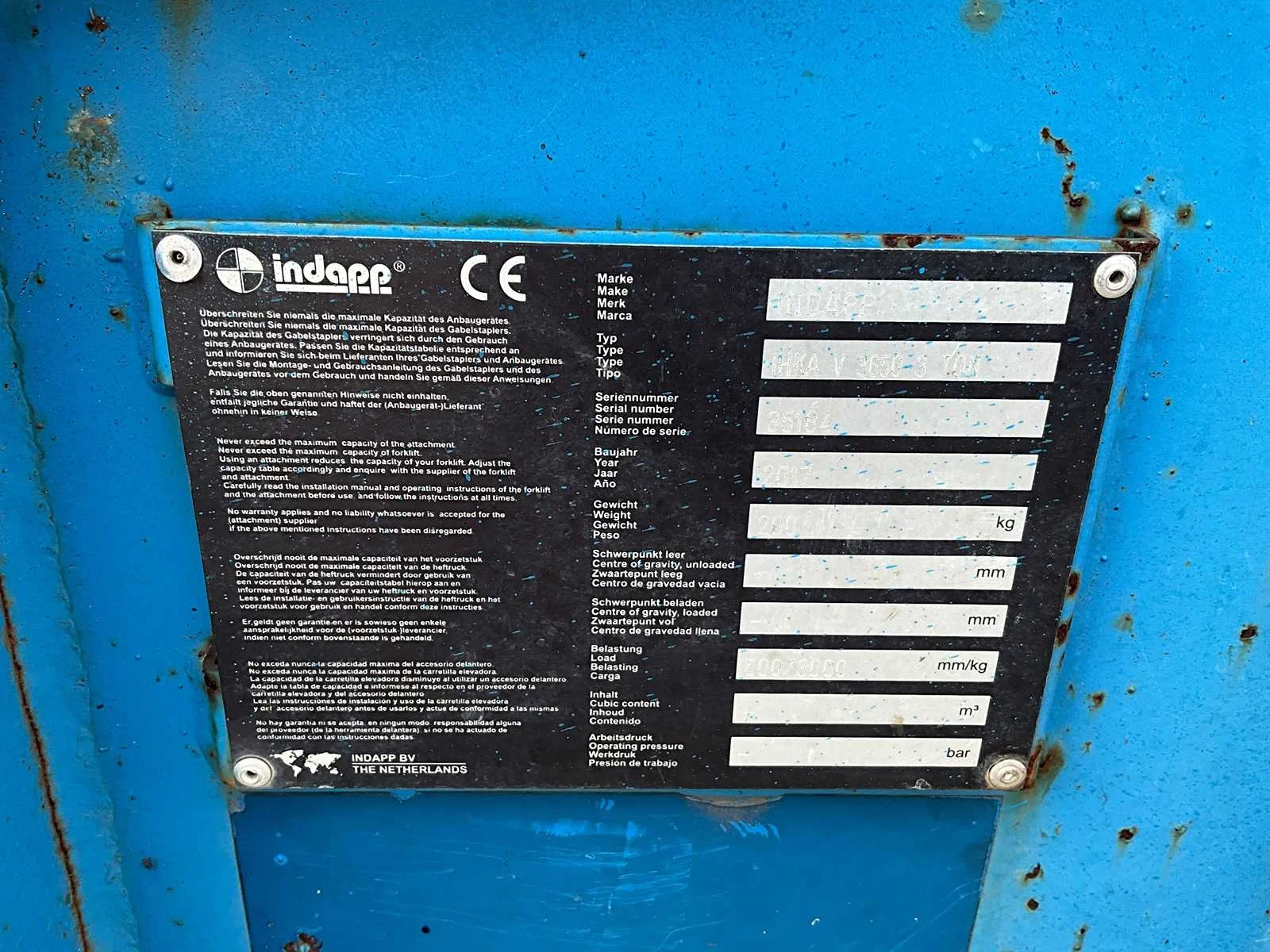 Schuinte verstelbaar, lengte verstelbaar 2100-3700mm, lepelgaten Nee Merk: Indapp Type: V3560 Bouwjaar: 2017 Serienummer: 35184 Hijsvermogen: 1810kg Eigen gewicht: 200kg Totale afmeting L: 2100mm Totale afmeting Breedte: 500mm Totale afmeting Hoogte: 900mm
