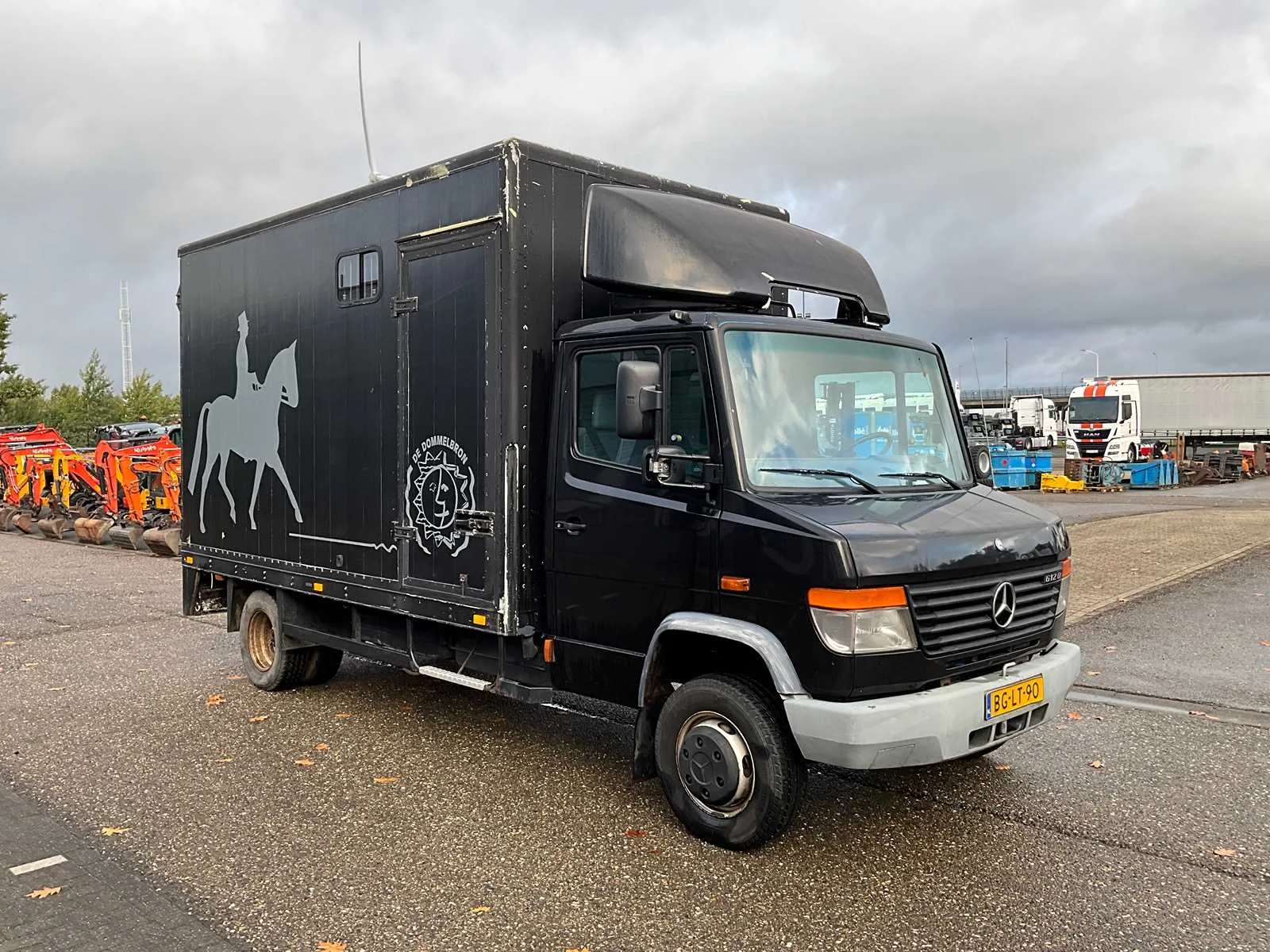 Ingericht voor paardenvervoer, Elektrische Ramen, Hoogte Verstelbare Koplampen, Radio/CD-Speler, zijdeur, afmeting laadruimte LxBxH 4000x2200x2200mm, oploopklep met leuningen te gebruiken als oploopklep en als deuren, bladgeveerde voor en achter Nee Kenteken: BG-LT-90 Merk: Mercedes-Benz Type: 512D Bouwjaar: 1998 Chassisnummer VIN: WDB6683231N070959 Kilometerstand bij opname: 264432km APK vervaldatum: 2026-08-29 Datum eerste toelating: 1998-06-29 Datum eerste toelating (NL): 1998-06-29 Type transmissie: Handmatig Aantal assen: 1 Asconfiguratie: 4x2 Fuel Type: Diesel Laadvermogen: 1840kg Aantal sleutels: 2 Emissieklasse: 2 Gesloten opbouw: true Totale afmeting L: 7000mm Totale afmeting Breedte: 2300mm Totale afmeting Hoogte: 3100mm Afgelezen kilometerstand: 264374km Nationaliteit documenten: NL Kentekenpapieren compleet?: true Aantal zitplaatsen: 3 Zelf rijdend exporteren: Mogelijk Handgeschakelde versnellingsbak: true Diesel: true