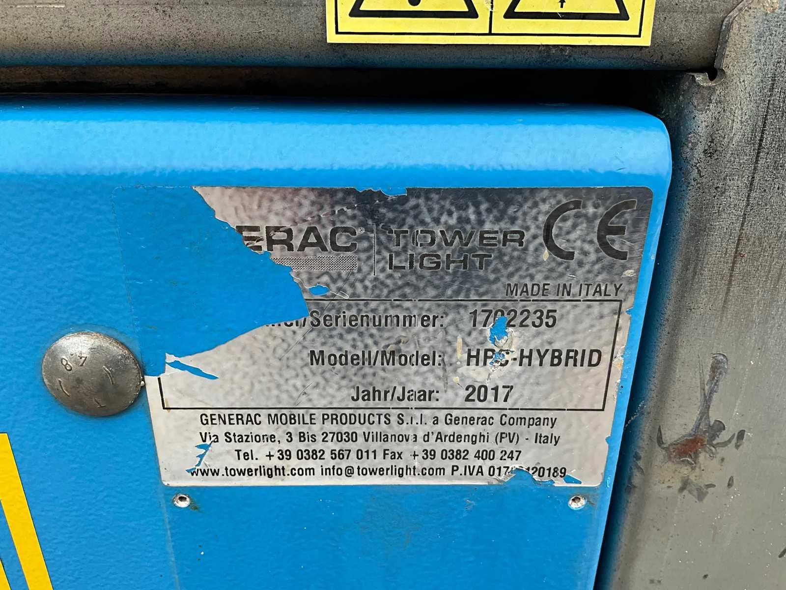 Yanmar L70 diesel motor, 4x led lamp, hybride, stempelpoten Nee Merk: Generac Type: Light Tower Bouwjaar: 2017 Serienummer: 1702235 LED: true Aansluiting: 220V Totale afmeting L: 1300mm Totale afmeting Breedte: 1300mm Totale afmeting Hoogte: 2450mm
