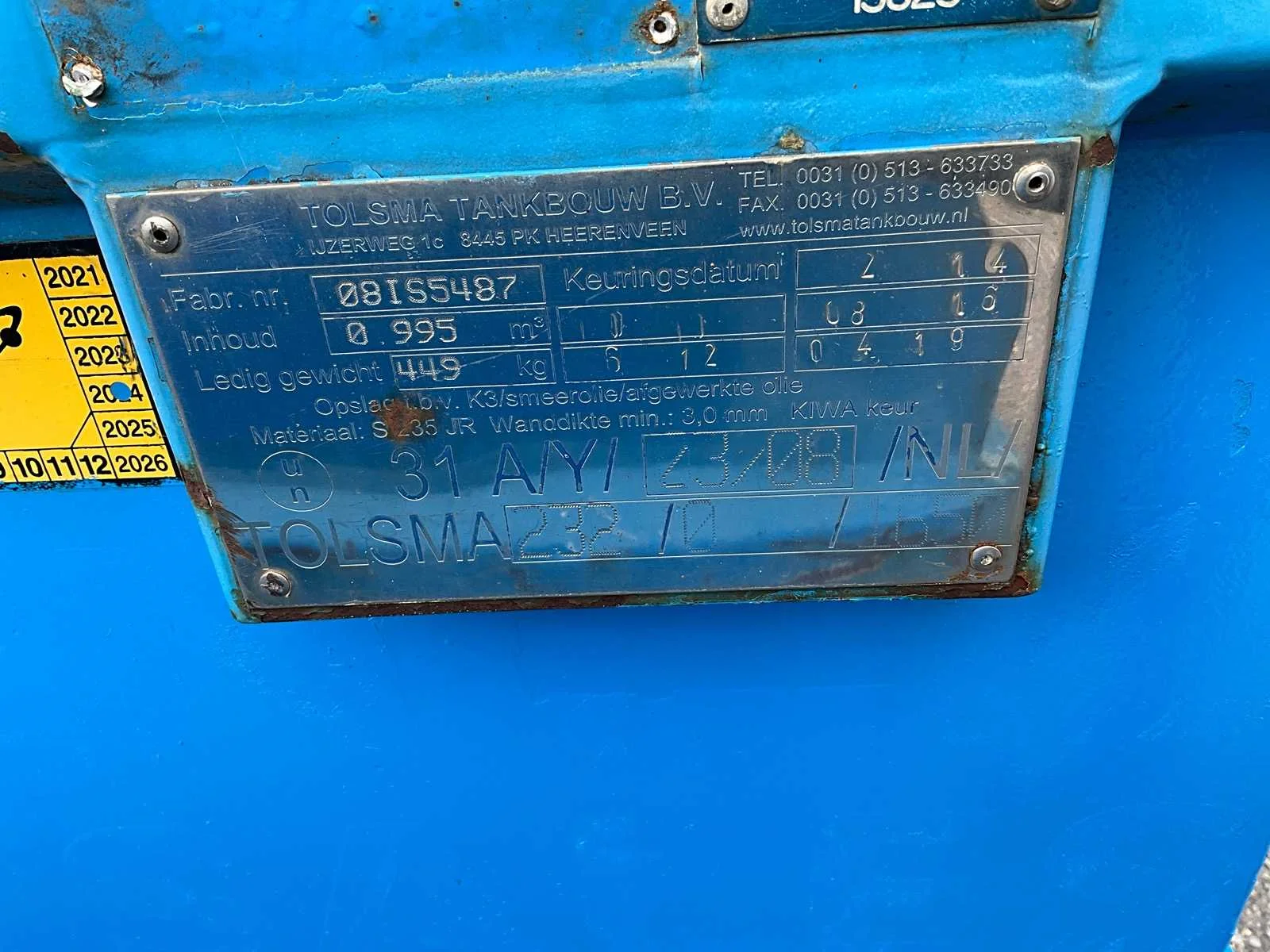 1000 liter inhoud, elektrische pomp en handpomp Nee Merk: Tolsma Totale afmeting L: 1600mm Totale afmeting Breedte: 2400mm Totale afmeting Hoogte: 1300mm