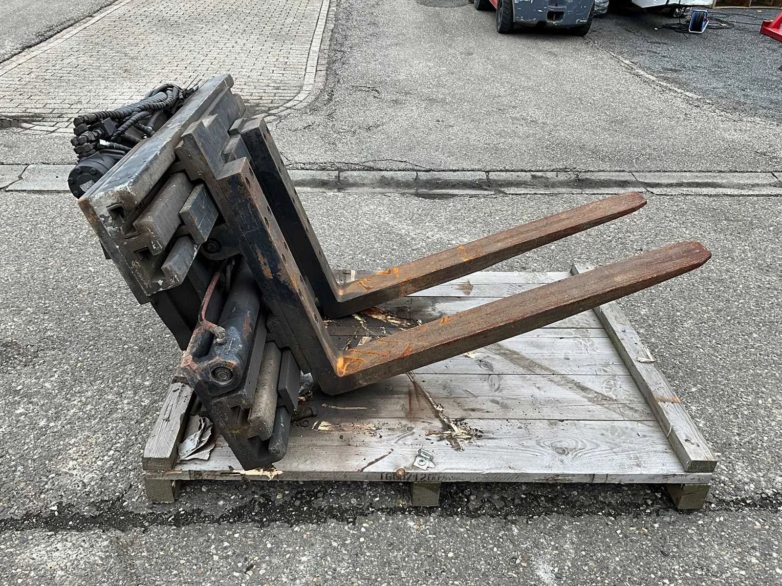 Afmeting vorken LxBxH 1200x150x60, hydraulische vorken versteller, roterend Nee Eigen gewicht: 1250kg Totale afmeting L: 2000mm Totale afmeting Breedte: 1500mm Totale afmeting Hoogte: 1100mm