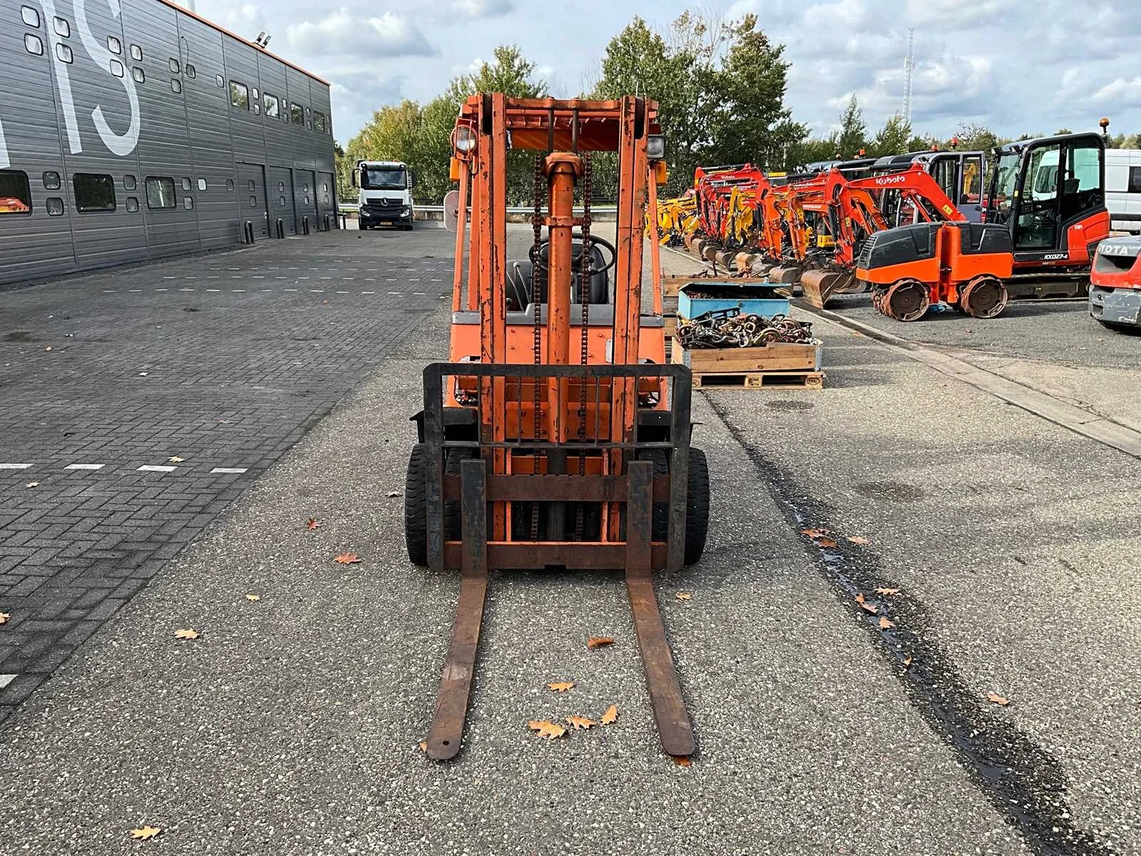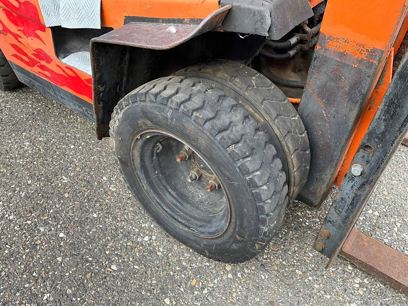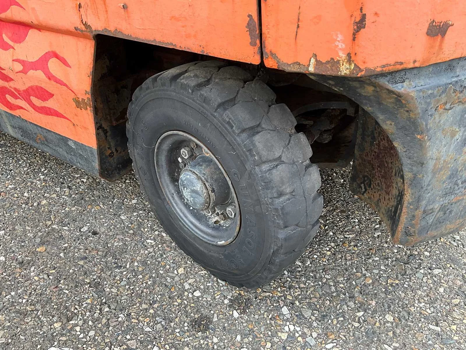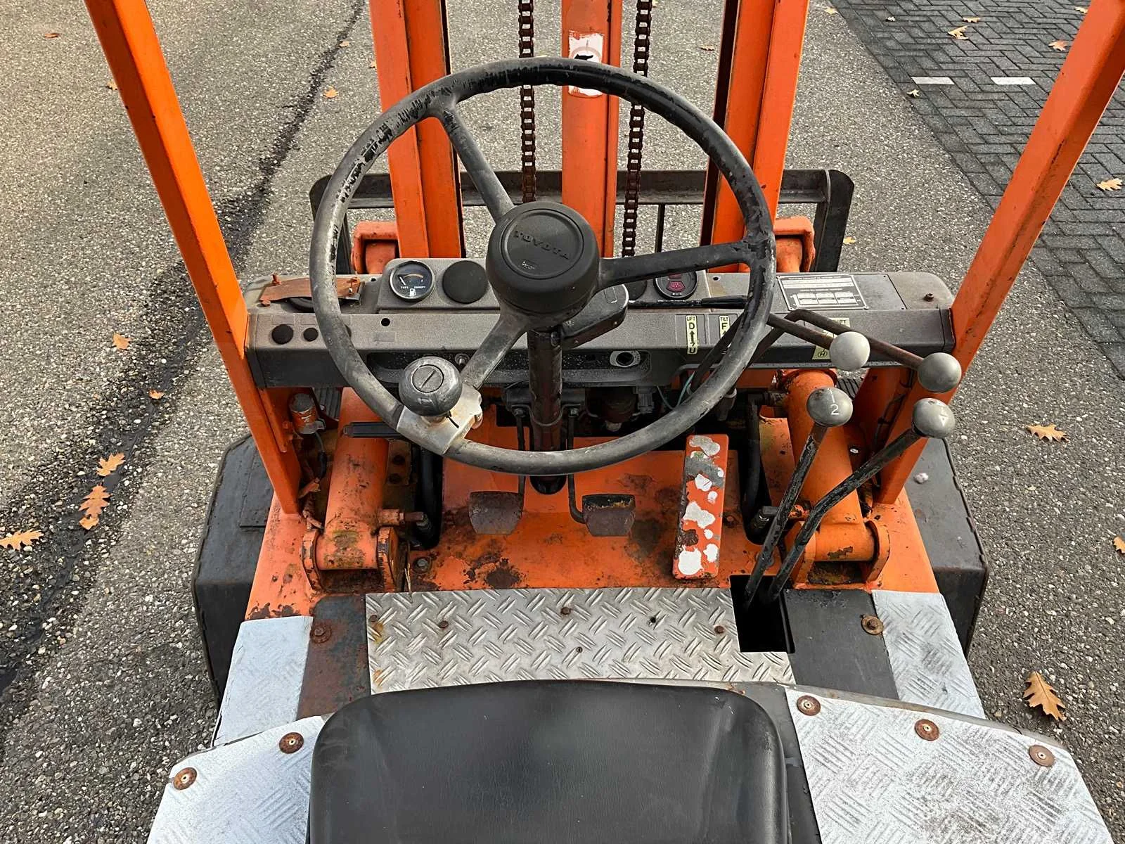 Let op: functioneert niet Nee Merk: Toyota Type: 4FGL10 Serienummer: 11733 Brandstof: LPG Aantal wielen: 4 Duplex mast: true Eigen gewicht: 2250kg Hefvermogen: 1000kg Lepellengte: 1200mm Luchtbanden: true Minimale doorrijhoogte: 2050mm Totale afmeting L: 3400mm Totale afmeting Breedte: 1300mm Totale afmeting Hoogte: 2050mm LPG: true
