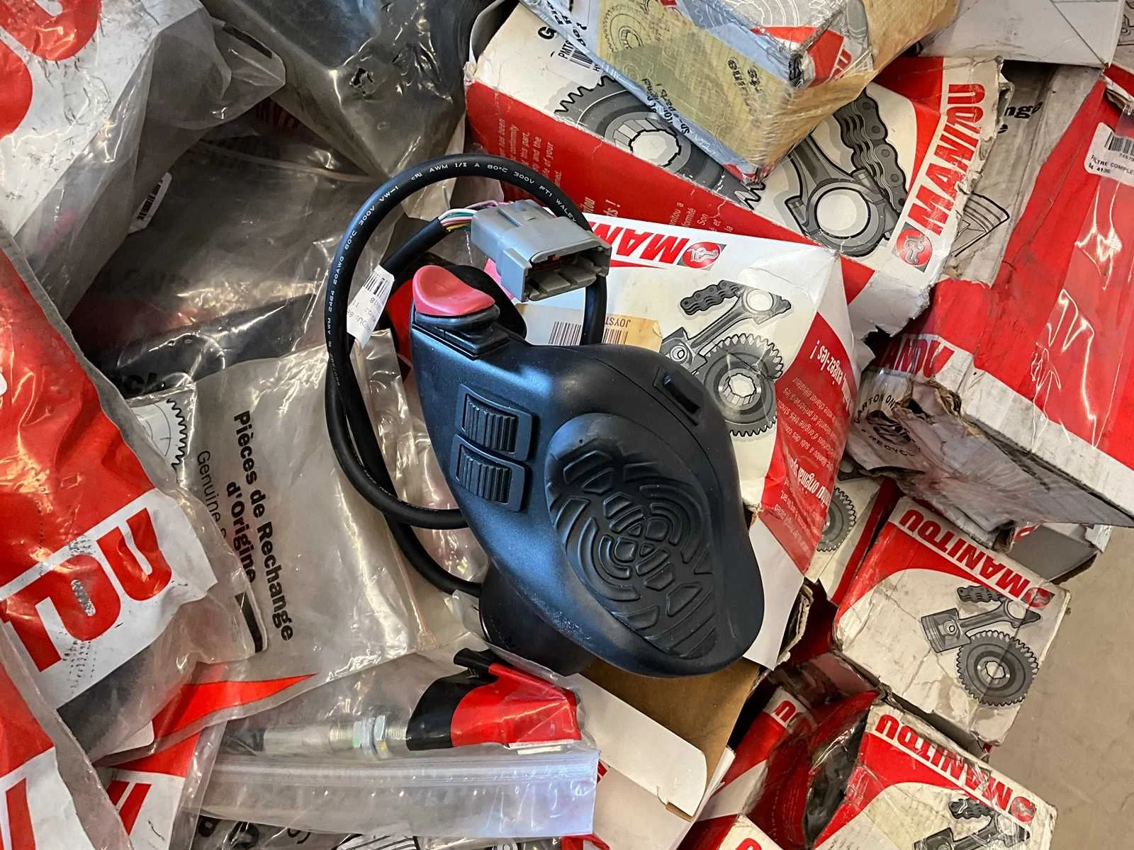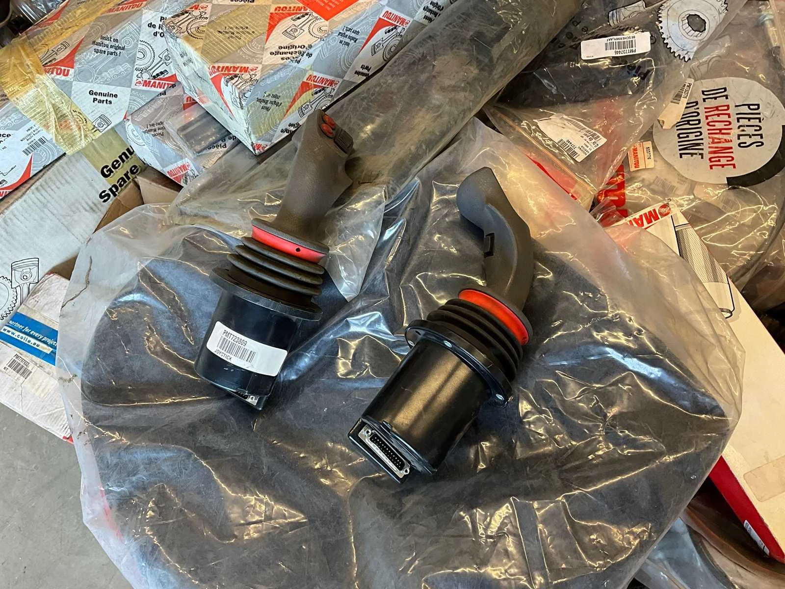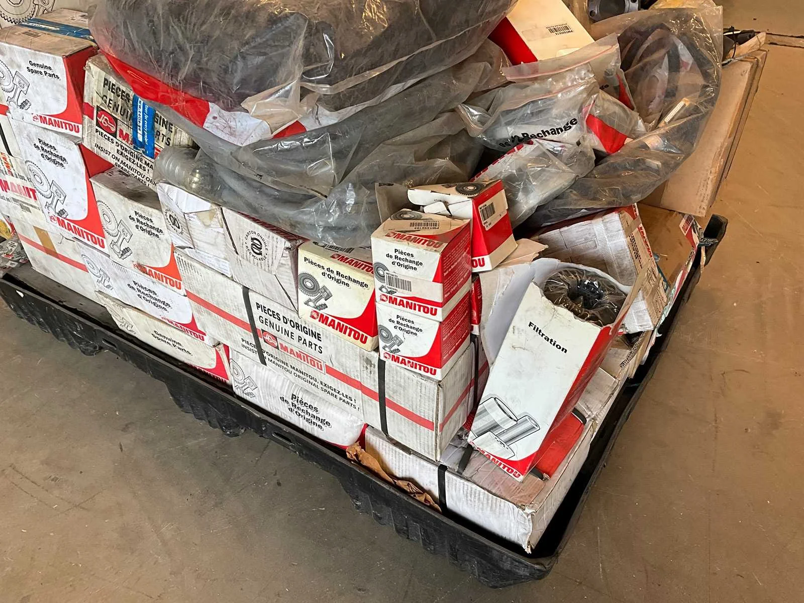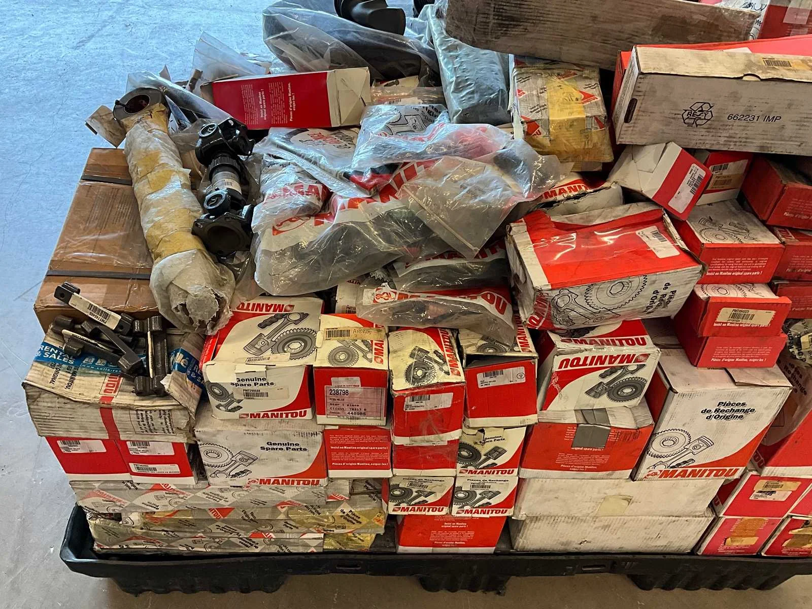 Partij ongebruikte Manitou onderdelen voor verreikers en heftrucks, o.a. Airco unit MLT120, verlichting, kabels, slangen, aandrijving onderdelen, joystick, kettingen, cilinders, kachel units Nee Merk: Manitou