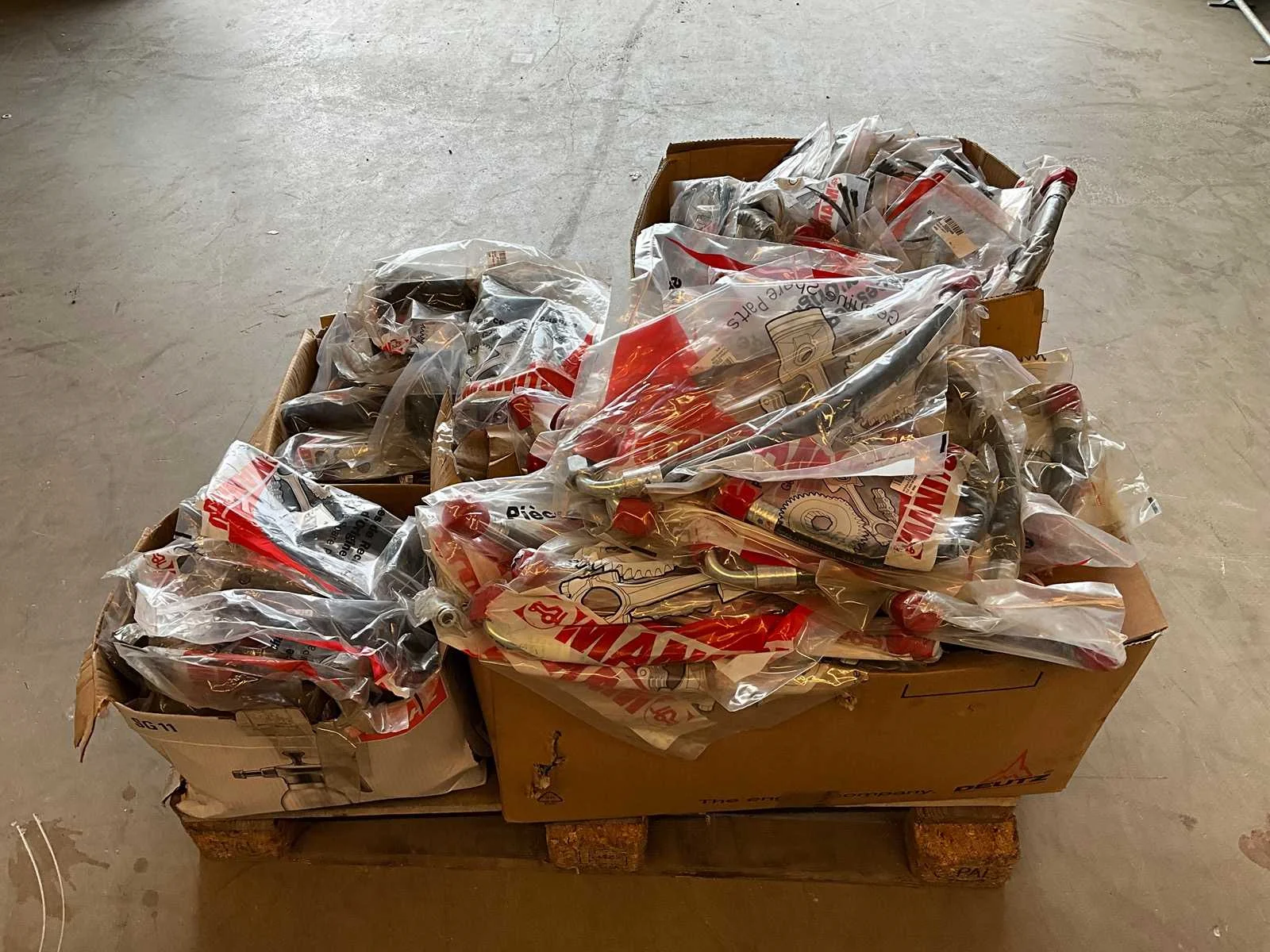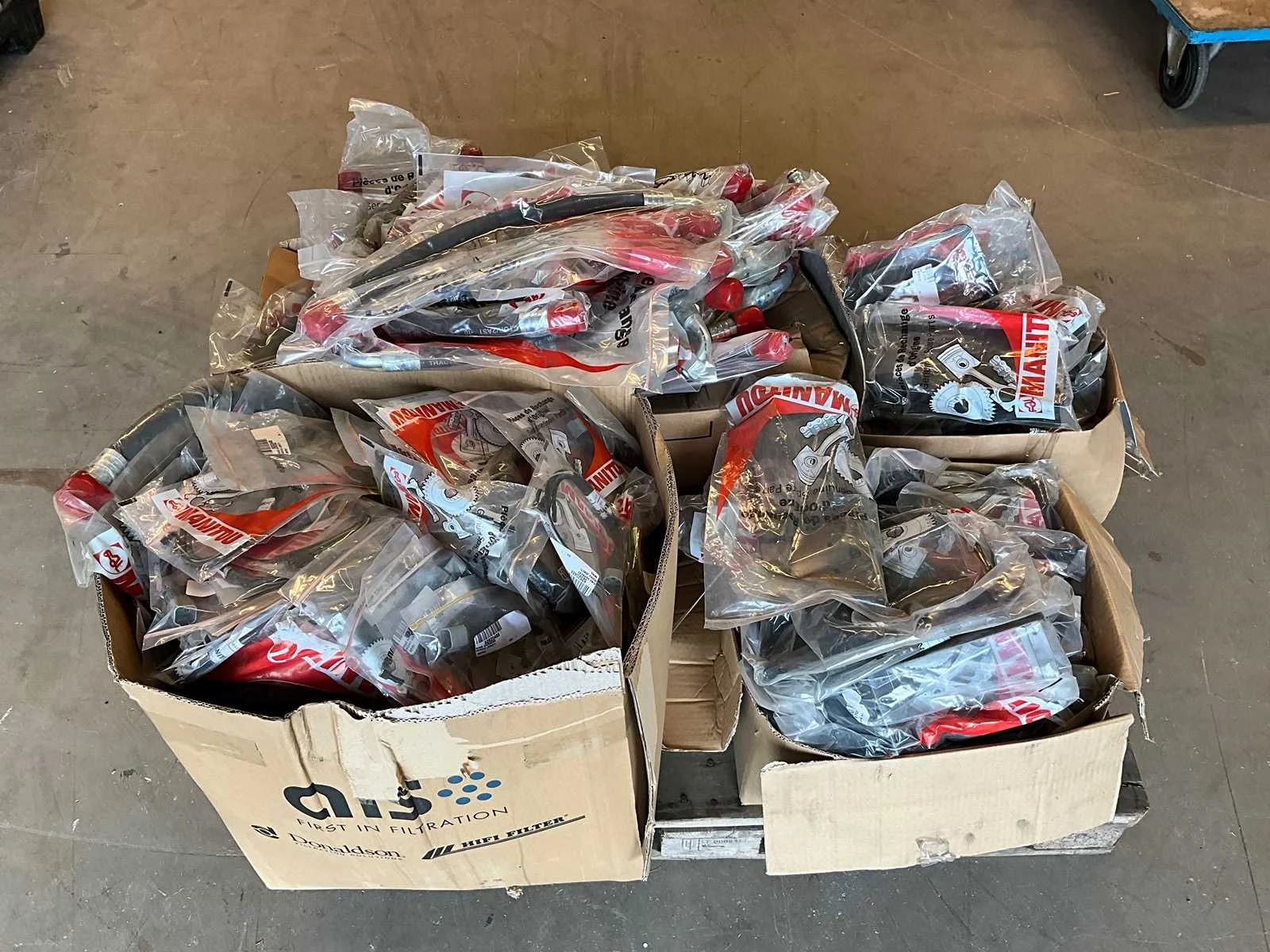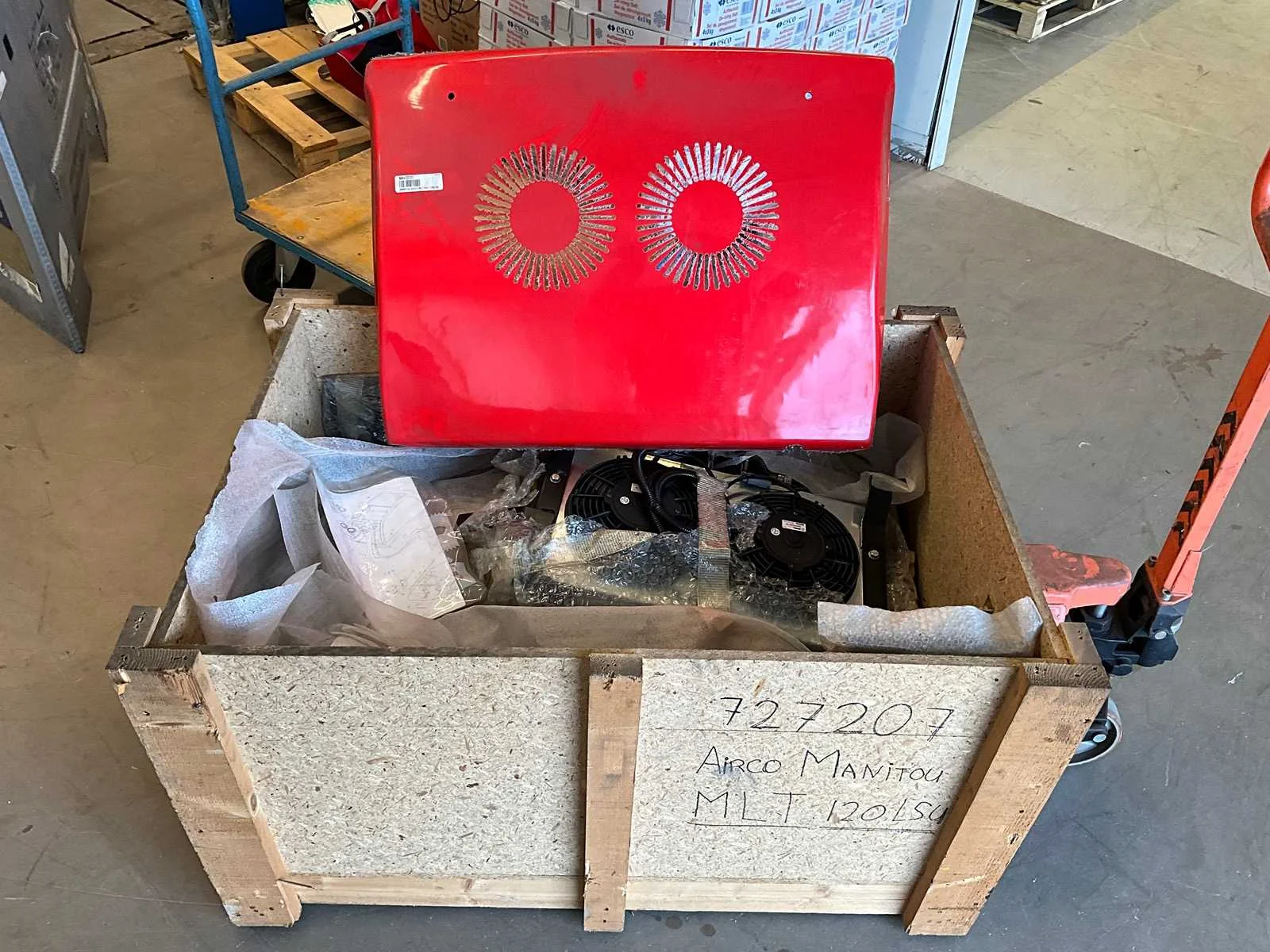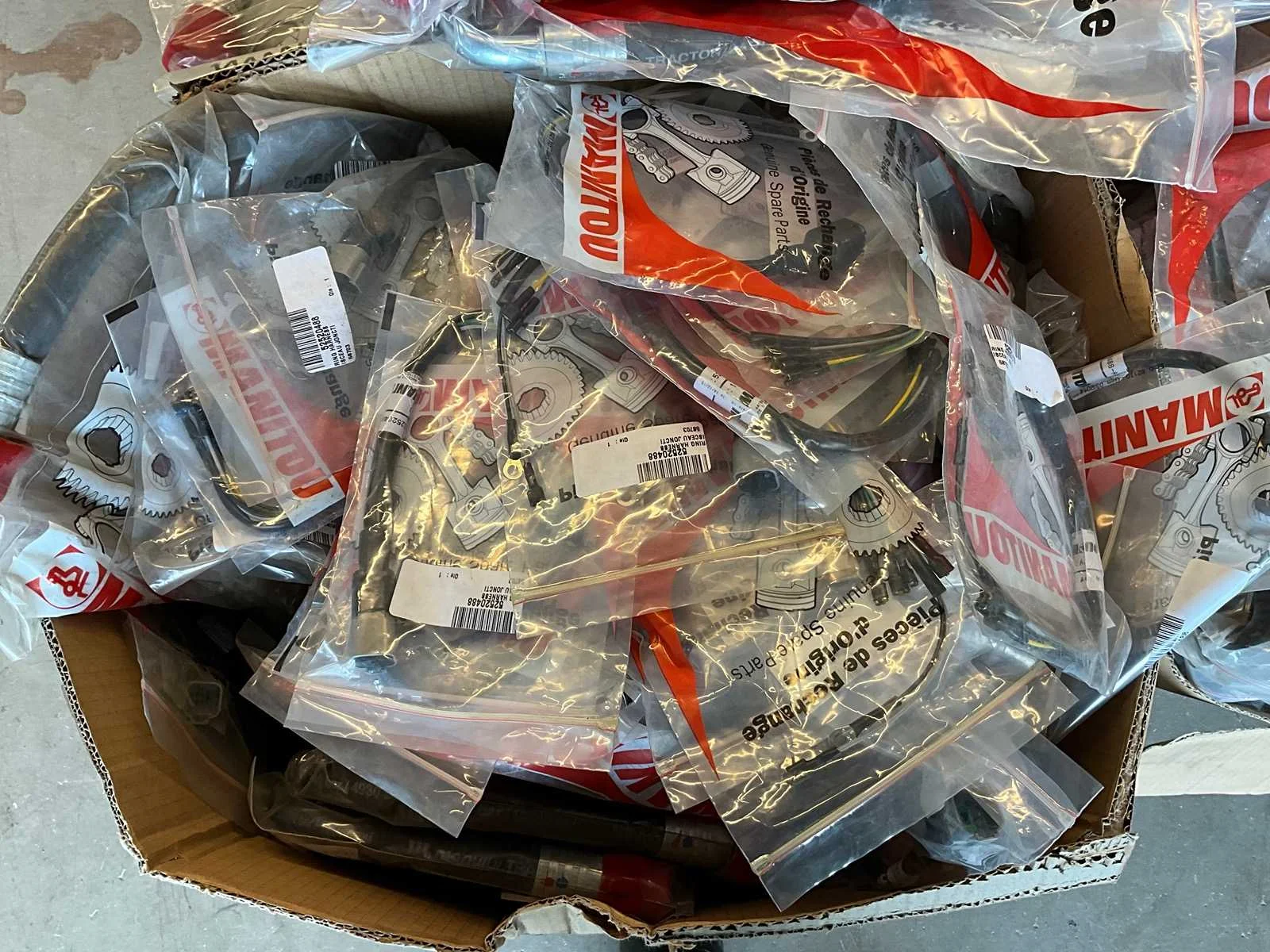 Partij ongebruikte Manitou onderdelen voor verreikers en heftrucks, o.a. Airco unit MLT120, verlichting, kabels, slangen, aandrijving onderdelen, joystick, kettingen, cilinders, kachel units Nee Merk: Manitou