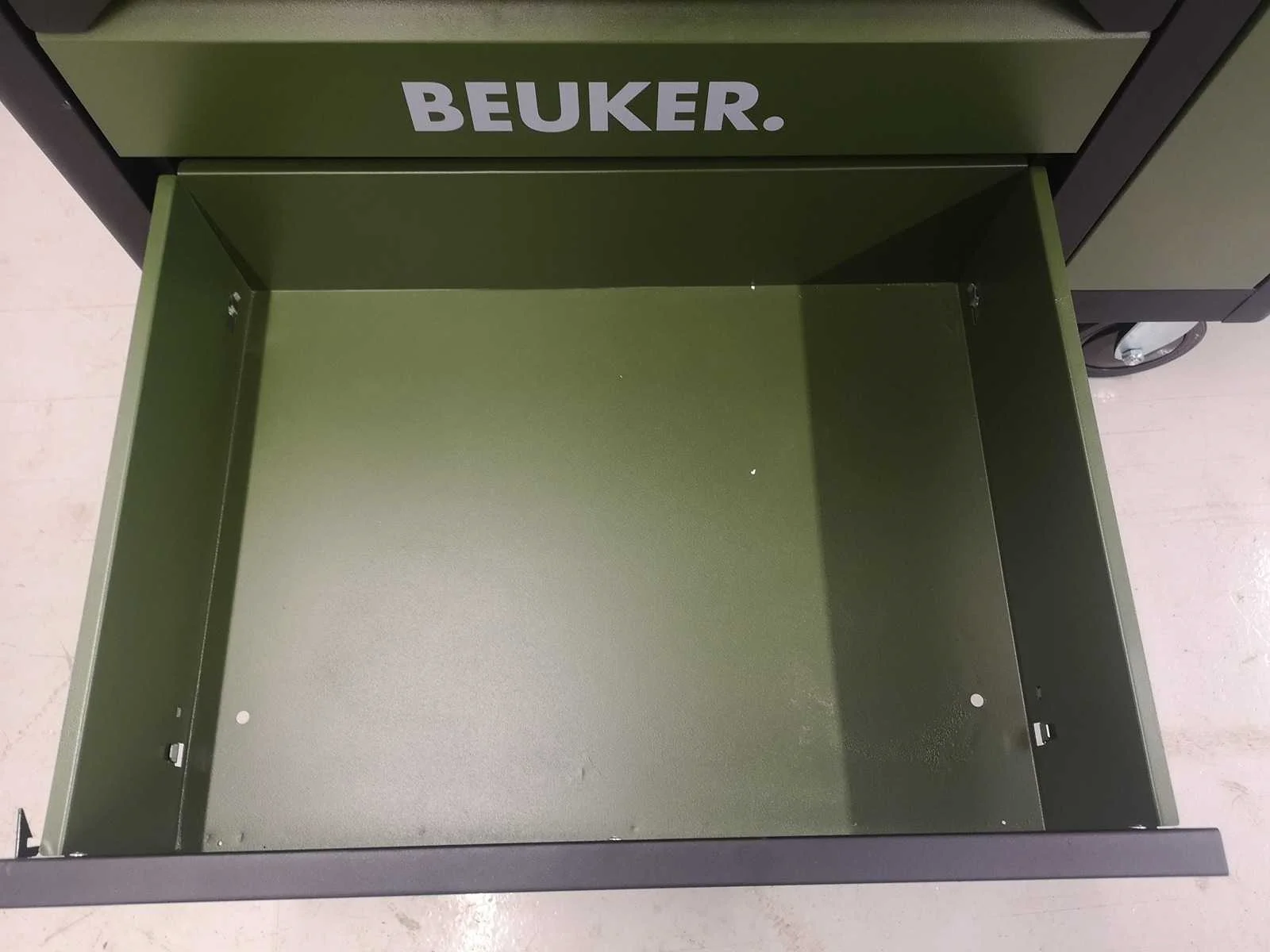 7 Lades waarvan 6 gevuld, 2x Zwenkwiel met rem Nee Merk: Beuker Model: Big Type: XL Gewicht: 83kg Lengte: 905cm Breedte: 480cm Hoogte: 900cm