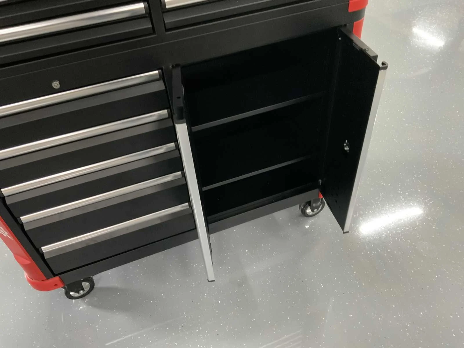 13 Laden, 9 gevuld, 327 pcs gereedschap. Kar met afneembare topbox Top box met 8 laden en boven klep Kar met 5 laden en kast met dubbele openslaande deuren Hoeken schuin afgewerkt met bumpers Stevig kunststof handvaten 2 zwenkwielen waarvan 2 geremd Hoge kwaliteit cilinder sloten Mat zwart afgewerkt met rode accenten Nee Merk: Stahlgruppe Type: XL PRO Deluxe Bouwjaar: 2025 Aantal laden: 13 Met inhoud: true