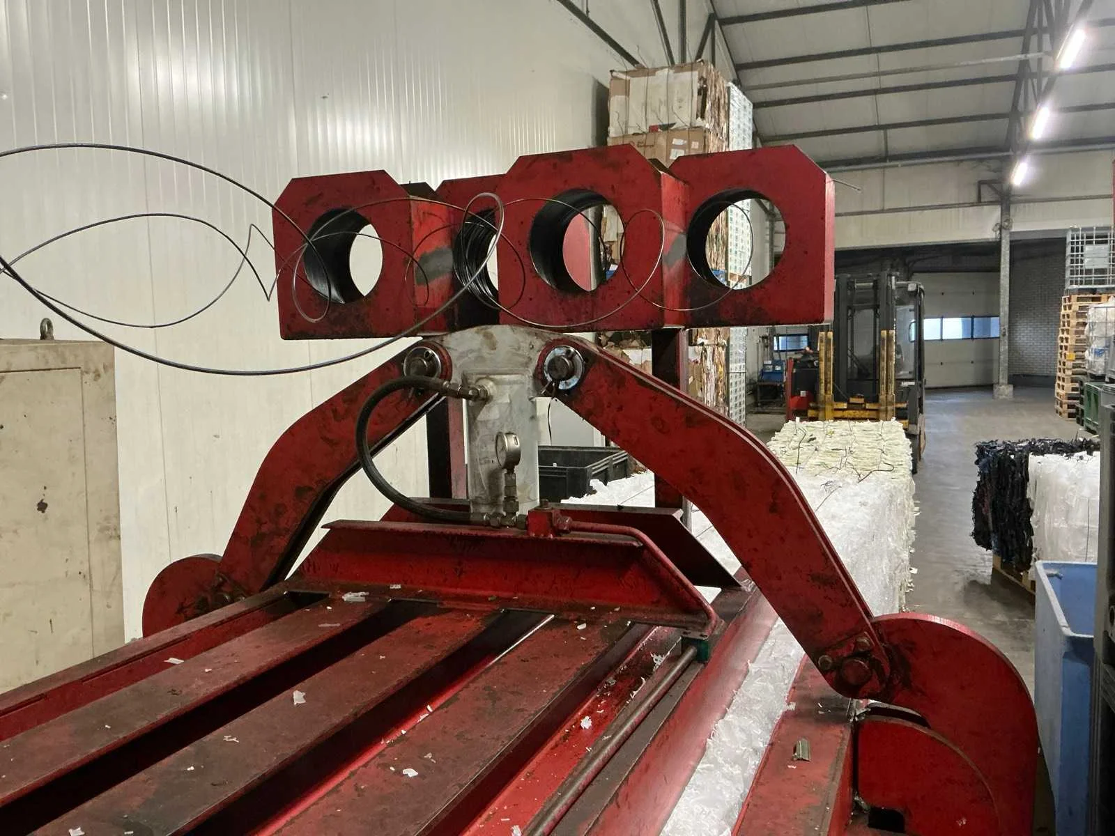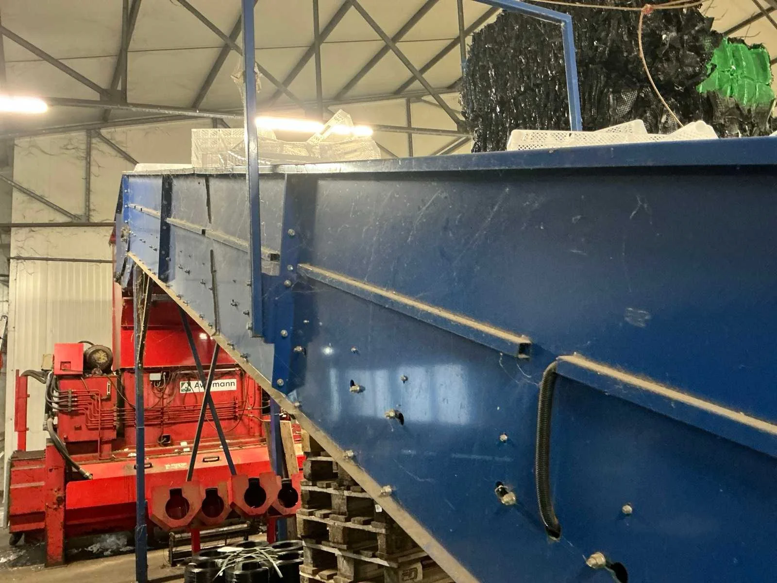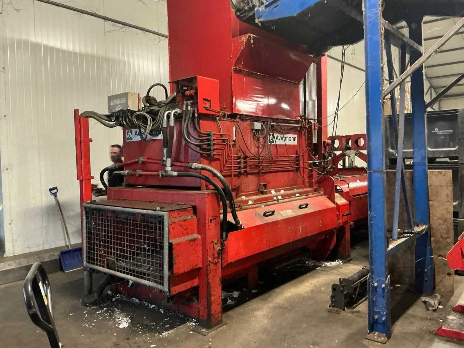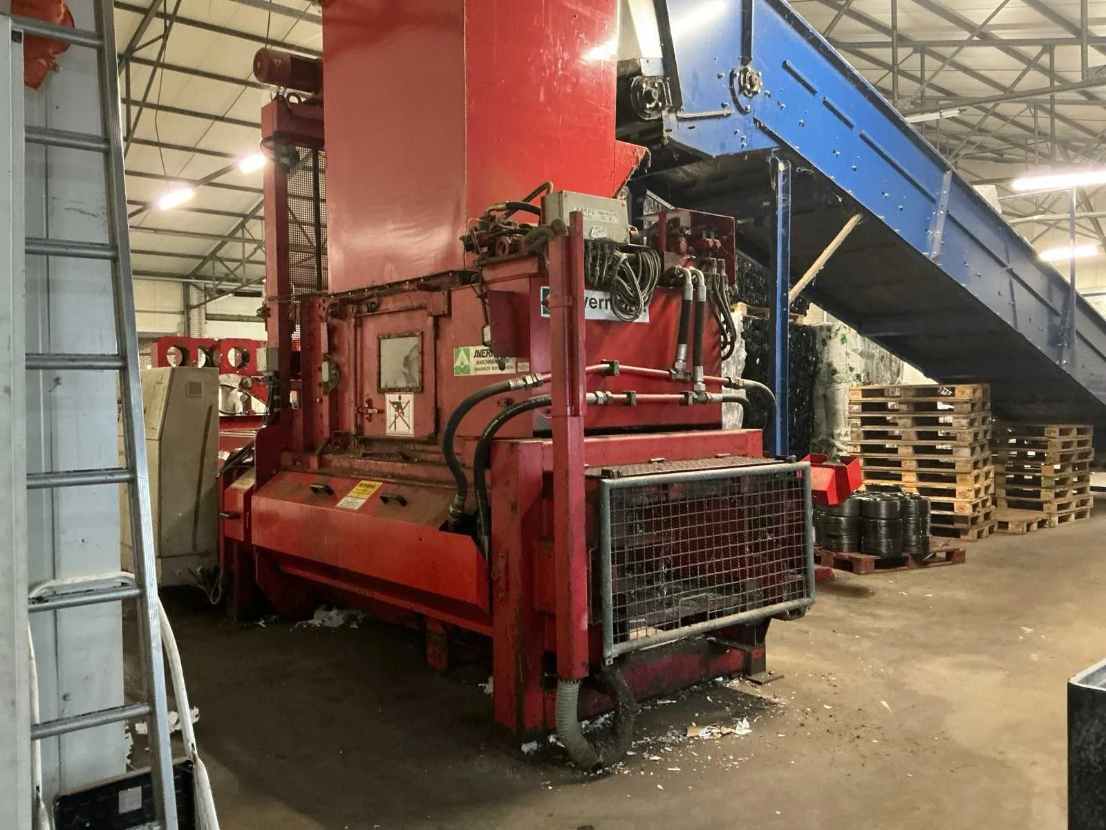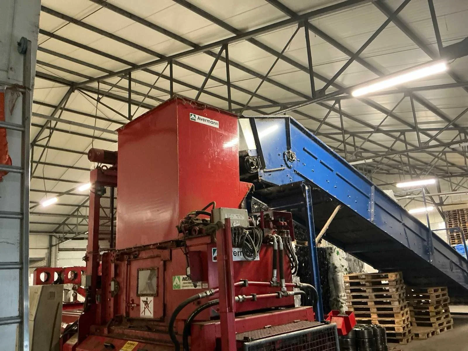 Voorzien van: breedte opvoerband 1600x lengte 12000. Hoog 1000mm. Pers 2000 breed, opgesteld 4000 hoog, opzet bunker 1900. Lengte machine pers: 6100mm,type: AVOS 1411 22/50 machinelengte (A) 7.600mm,machinebreedte (B)2.400 mm, machinehoogte (C) 3.850mm, breedte vulopening (zie PDF bijgevoegd bestand) (D)1.100 mm, diepte vulopening (E) 1.400,mm, bindsysteem 4-weg verticaal, leeggewicht ca. 16.000 kg, aandrijfvermogen enkele motor 45 kW, perskracht 800 kN, bedrijfsspanning 3x400/230 V, stuurspanning 24 V, Aansluiting: directe aansluiting, kanaalinstelling: volautomatisch, baalgrootte (B x H)(Lengte instelbaar)1.100 x 700 besturing: programmeerbaar, werkdruk: 200 bar, maximale druk: 150 kN, besturing: programmagestuurd, Automatische bindinrichting, 4-weg bindinrichting, gewicht ca. 1500 kg, aantal binddraden: 4, draaddiameter (conform DIN 177): 3,1 mm, elektrische aansluiting (lanseenheid): 400V/50Hz, vermogen lansmotor: 4 kW, vermogen bindmotor: 3 kW, werkdruk (snij-inrichting): 150 bar, besturing: programmagestuurd. Aanvoerband: nummer 4100657, transportbandlengte 11200mm, 32° helingshoek, bandbreedte 1400mm, motor aandrijving 3Kw. (zie technische tekening) Nee Merk: Avermann Type: Horizontal baler BP1411 22/50 Bouwjaar: 1993 Serienummer: S60025 Kunststof industrie: true Papierindustrie: true