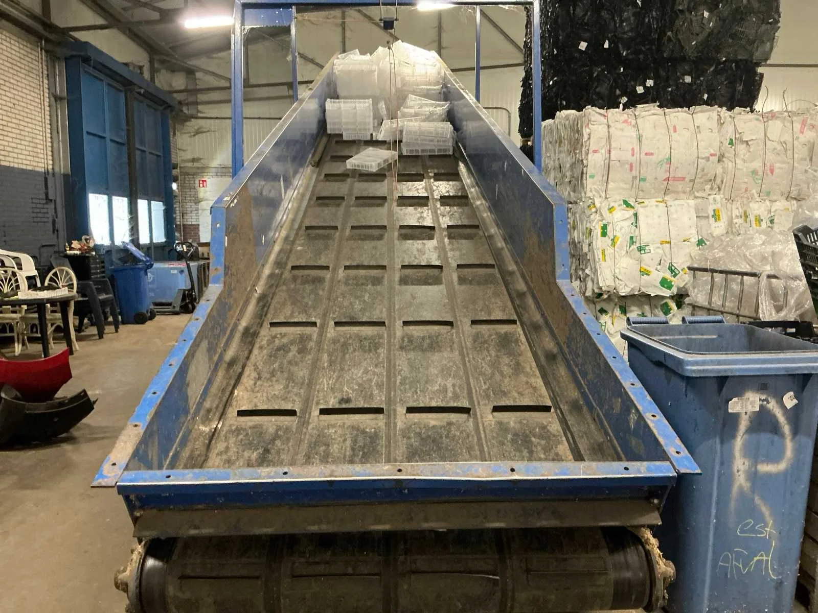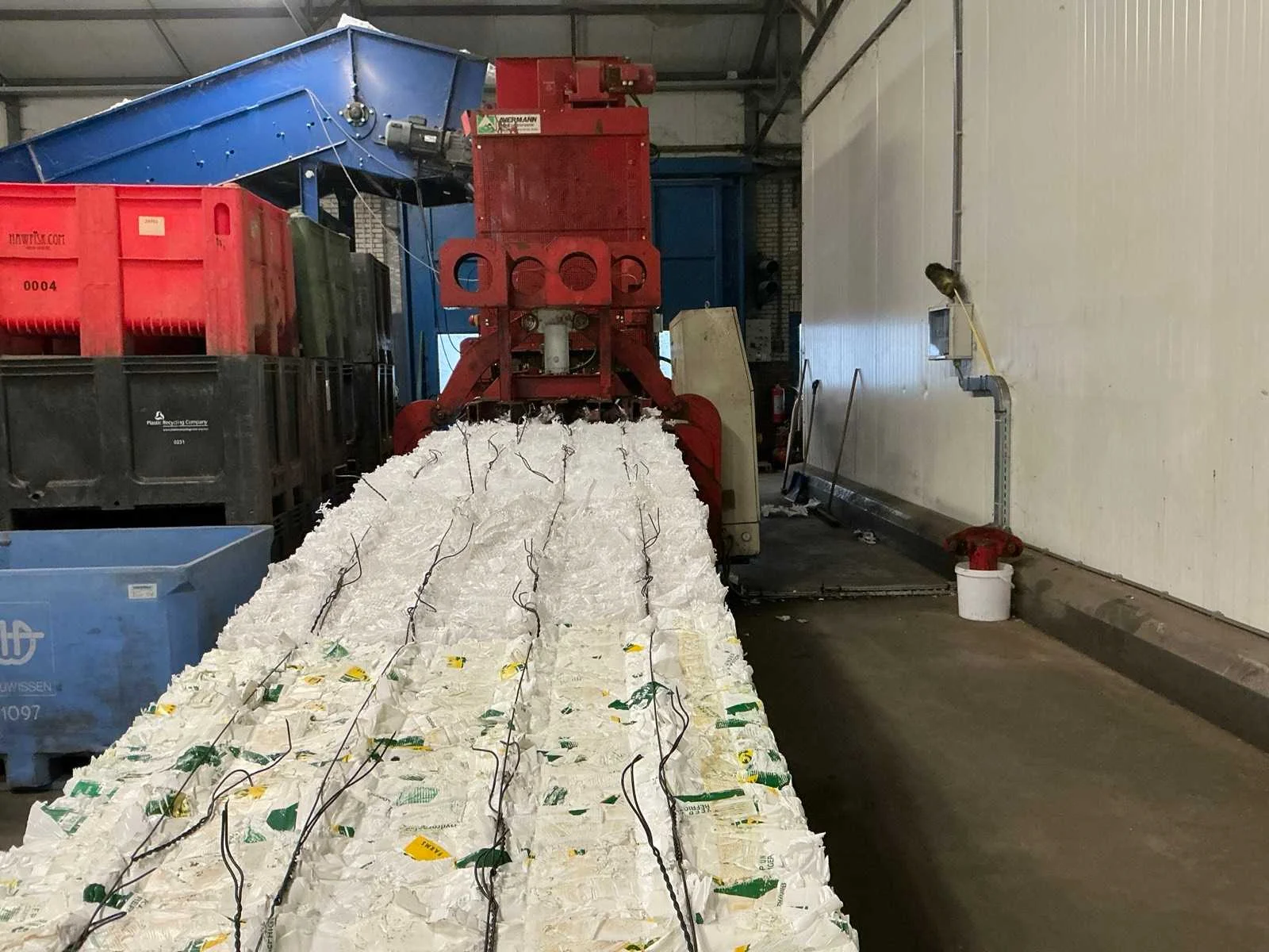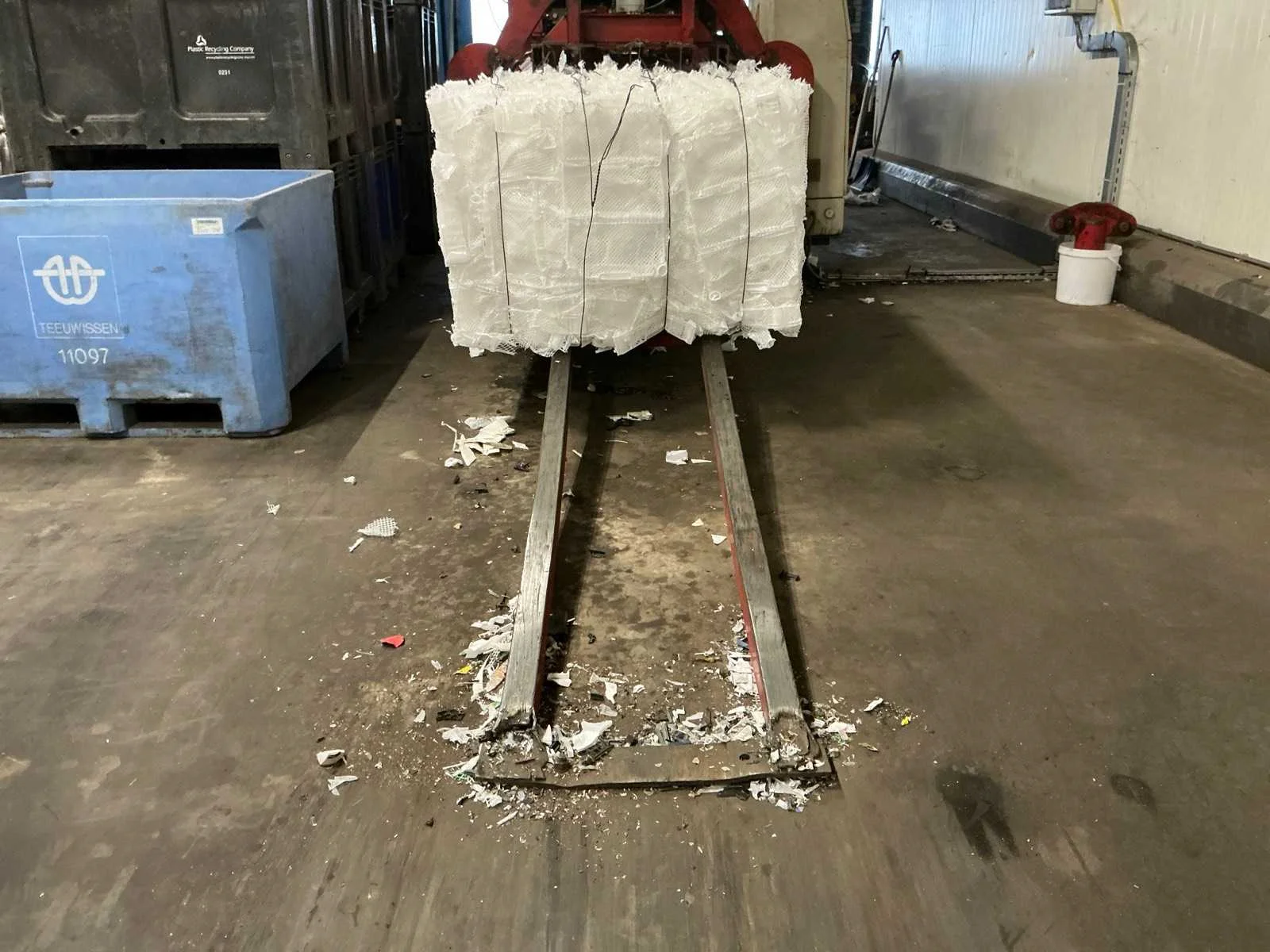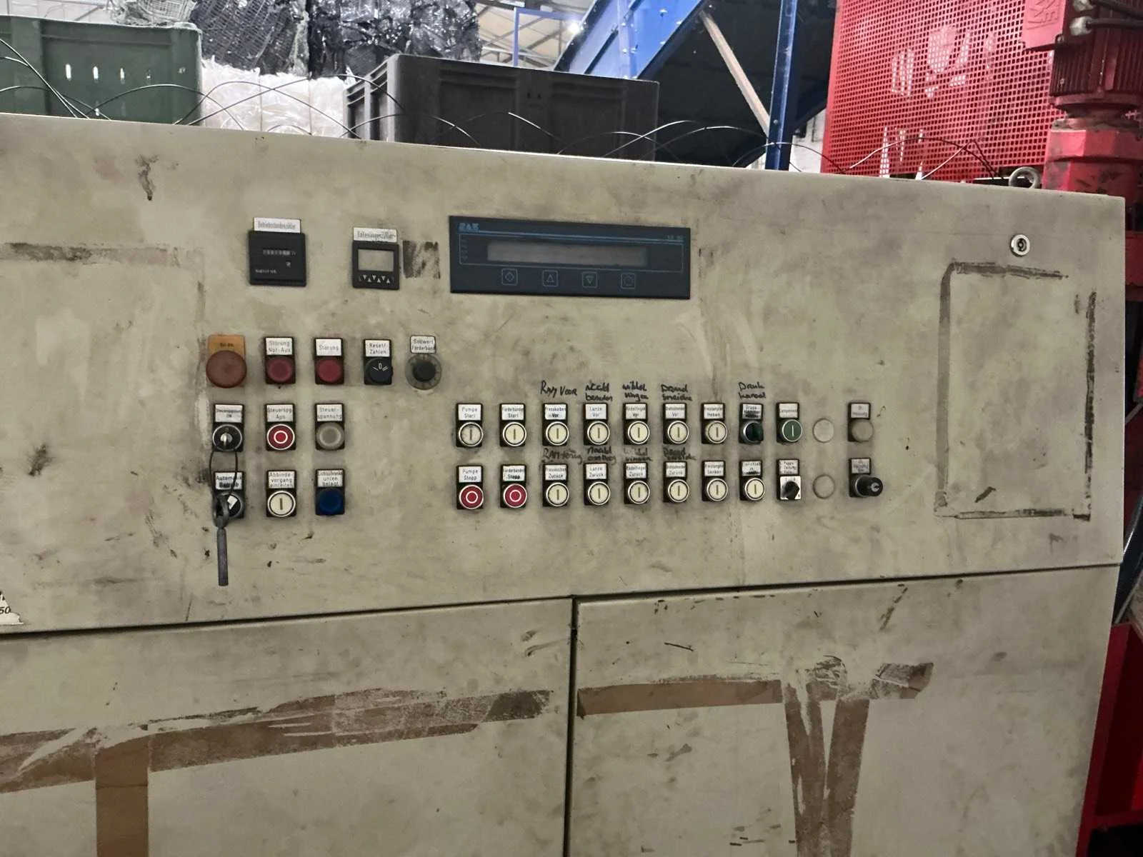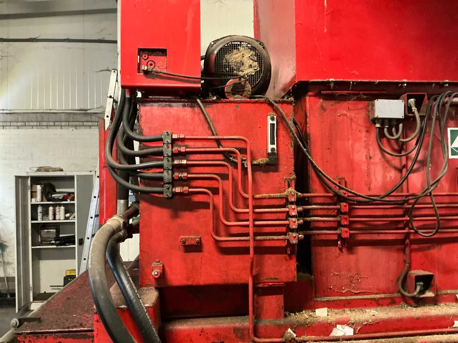 Voorzien van: breedte opvoerband 1600x lengte 12000. Hoog 1000mm. Pers 2000 breed, opgesteld 4000 hoog, opzet bunker 1900. Lengte machine pers: 6100mm,type: AVOS 1411 22/50 machinelengte (A) 7.600mm,machinebreedte (B)2.400 mm, machinehoogte (C) 3.850mm, breedte vulopening (zie PDF bijgevoegd bestand) (D)1.100 mm, diepte vulopening (E) 1.400,mm, bindsysteem 4-weg verticaal, leeggewicht ca. 16.000 kg, aandrijfvermogen enkele motor 45 kW, perskracht 800 kN, bedrijfsspanning 3x400/230 V, stuurspanning 24 V, Aansluiting: directe aansluiting, kanaalinstelling: volautomatisch, baalgrootte (B x H)(Lengte instelbaar)1.100 x 700 besturing: programmeerbaar, werkdruk: 200 bar, maximale druk: 150 kN, besturing: programmagestuurd, Automatische bindinrichting, 4-weg bindinrichting, gewicht ca. 1500 kg, aantal binddraden: 4, draaddiameter (conform DIN 177): 3,1 mm, elektrische aansluiting (lanseenheid): 400V/50Hz, vermogen lansmotor: 4 kW, vermogen bindmotor: 3 kW, werkdruk (snij-inrichting): 150 bar, besturing: programmagestuurd. Aanvoerband: nummer 4100657, transportbandlengte 11200mm, 32° helingshoek, bandbreedte 1400mm, motor aandrijving 3Kw. (zie technische tekening) Nee Merk: Avermann Type: Horizontal baler BP1411 22/50 Bouwjaar: 1993 Serienummer: S60025 Kunststof industrie: true Papierindustrie: true