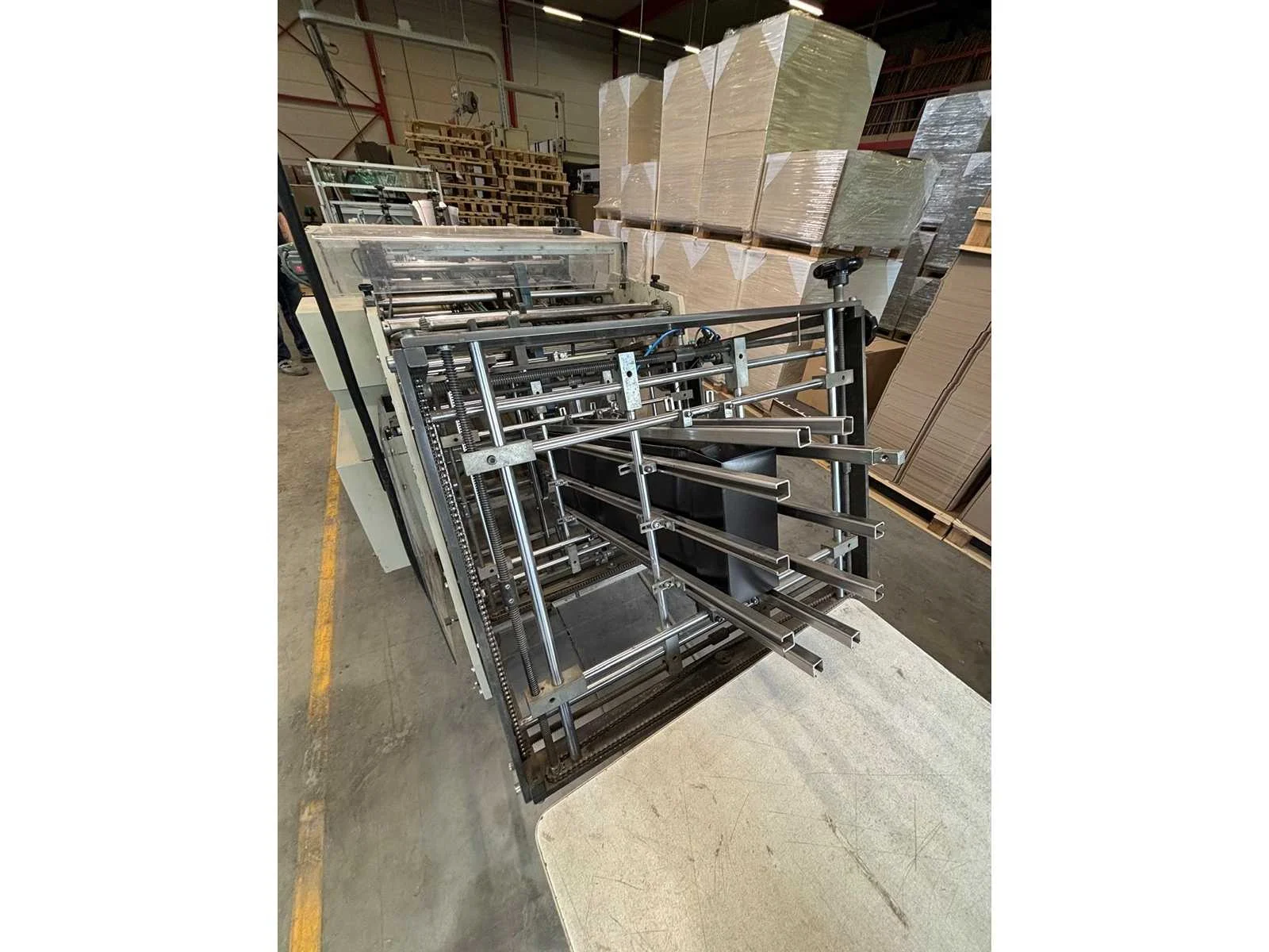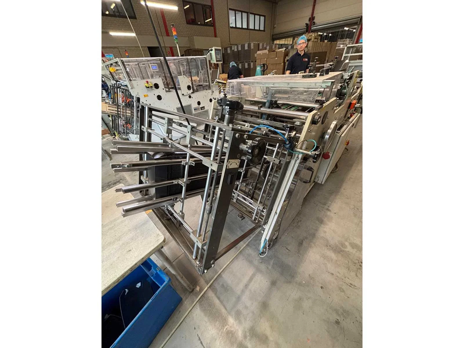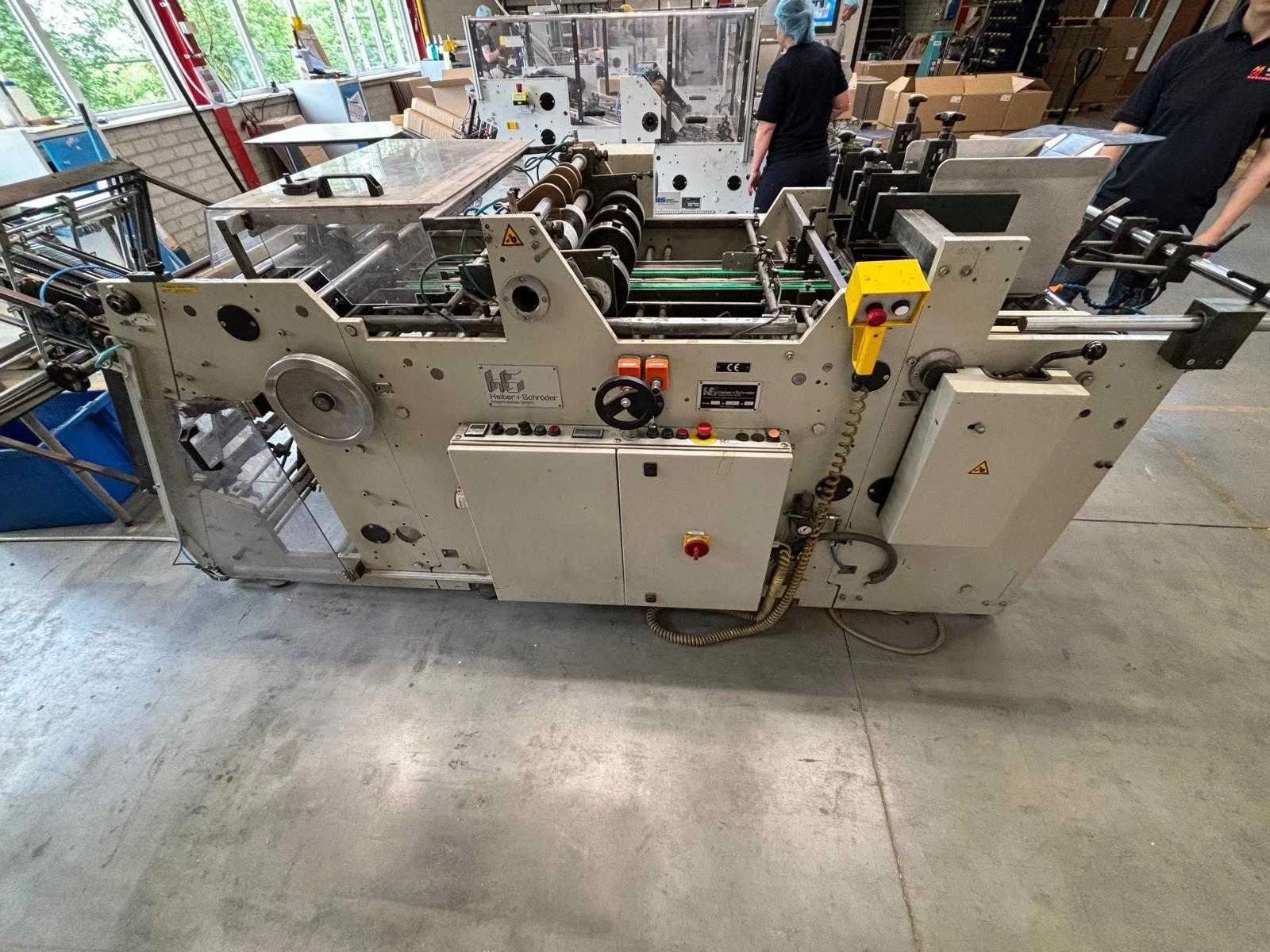 De Heiber + Schröder CE 650/1 schalenopzetmachine (bouwjaar 2000, serienummer 5246) heeft een productie snelheid tot 10.000 per uur , ondersteunt kartonformaten van ca. 200 x 200 mm tot 650 x 800 mm, verwerkt materiaal van 300–800 g/m², werkt met hotmelt lijm (meestal Nordson of Robatech), is uitgevoerd met een mechanisch vouwsysteem en persunit, heeft een elektrische aansluiting van 400V / 3-fase / 50Hz, weegt circa 1500–2000 kg en heeft afmetingen van ongeveer 3–4 meter lang en 1,5–2 meter breed. No Merk: Heiber+Schröder Type: CE 650/1 Bouwjaar: 2000 Serienummer: 5246 Aansluiting: 380V Totale afmeting L: 4000mm Totale afmeting Breedte: 2000mm