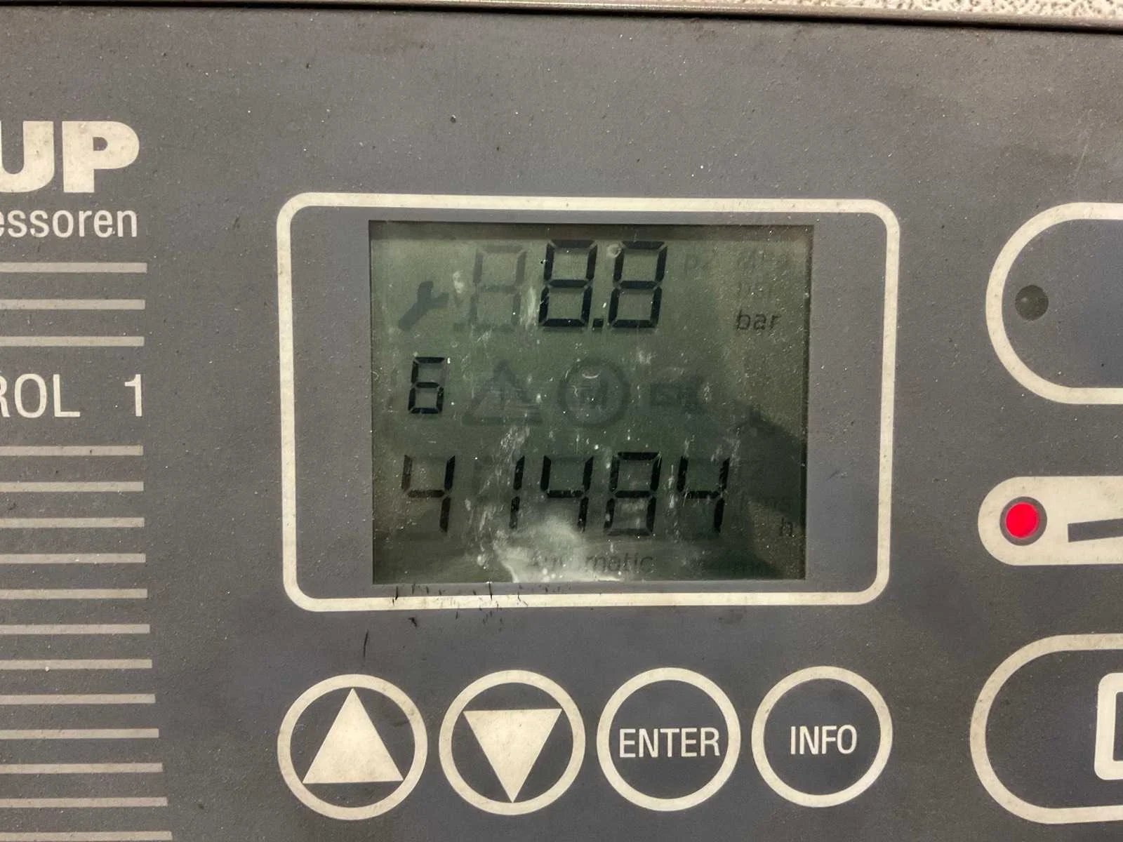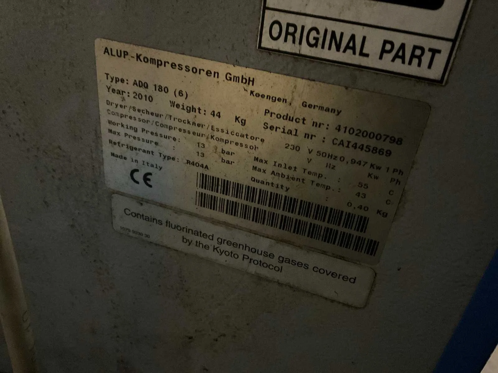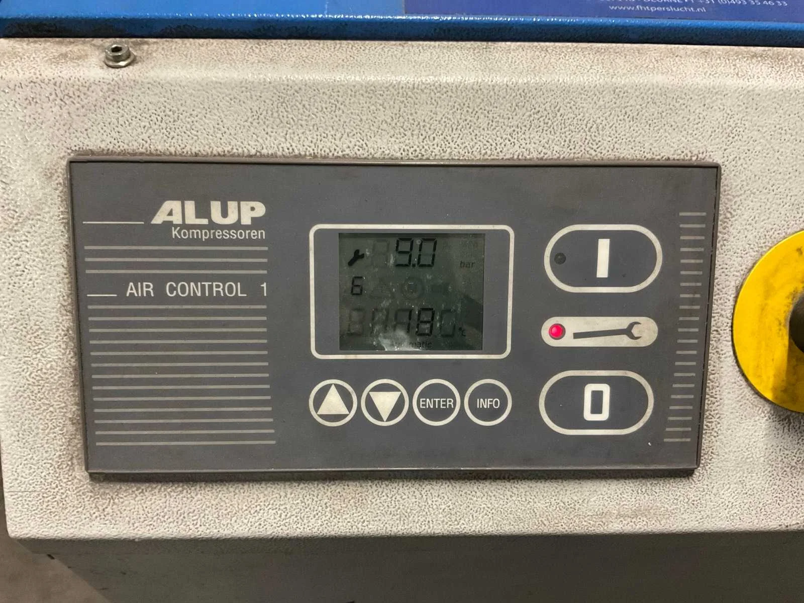 Voorzien van: compressor, Alup ADK luchtdroger (bouwjaar 2010), 500L gegalvaniseerd buffervat Nee Merk: Alup Type: SCK 15-08PLUS Bouwjaar: 2003 Capaciteit.: 8bar Vermogen: 11kW Afgelezen urenstand: 41484 Aansluiting: 400V