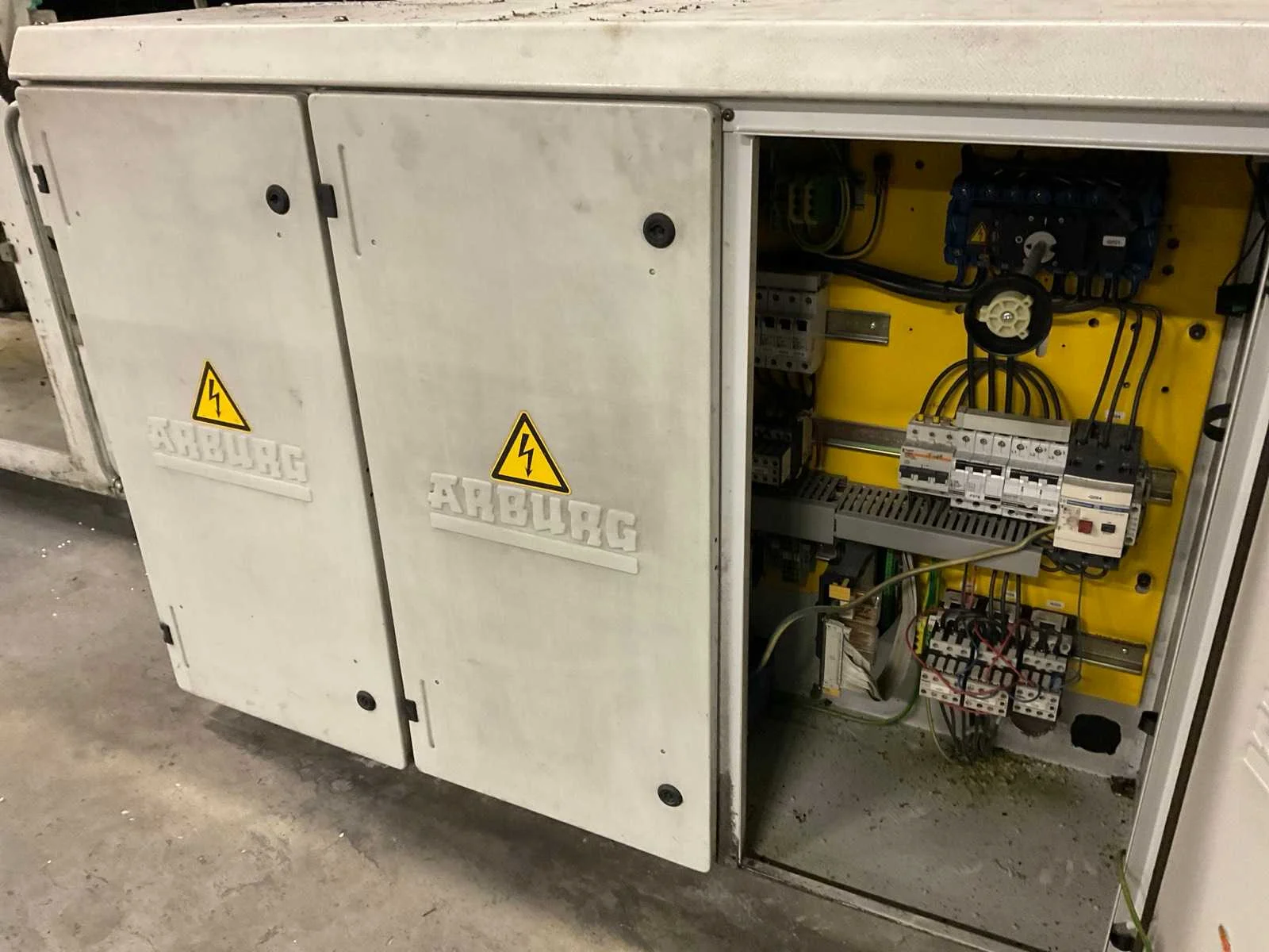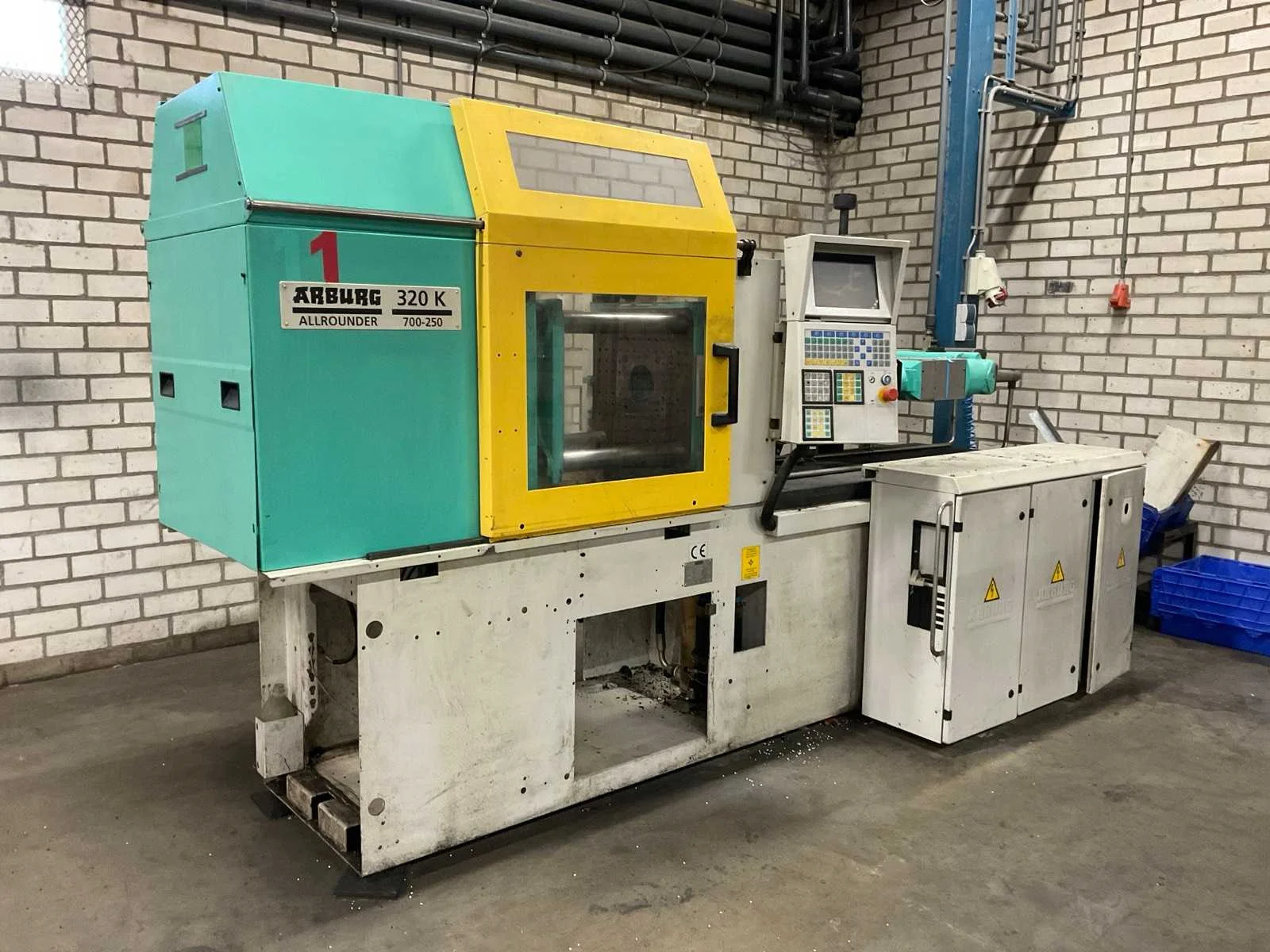 Spankracht 700KN, zonder matrijzen! machine is in niet werkende staat, geschikt voor onderdelen! Nee Merk: Arburg Type: 320K Allrounder 700-250 Bouwjaar: 2001 Serienummer: 184725 Aansluiting: 400V Machinegewicht: 2270kg Totale afmeting L: 3300mm Totale afmeting Breedte: 1500mm Totale afmeting Hoogte: 1900mm