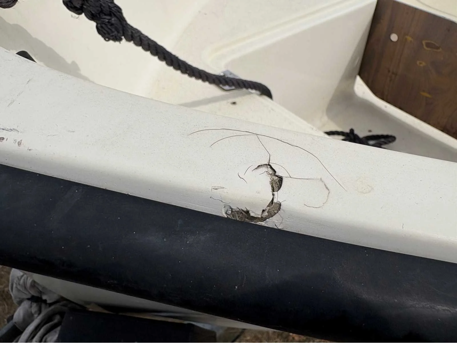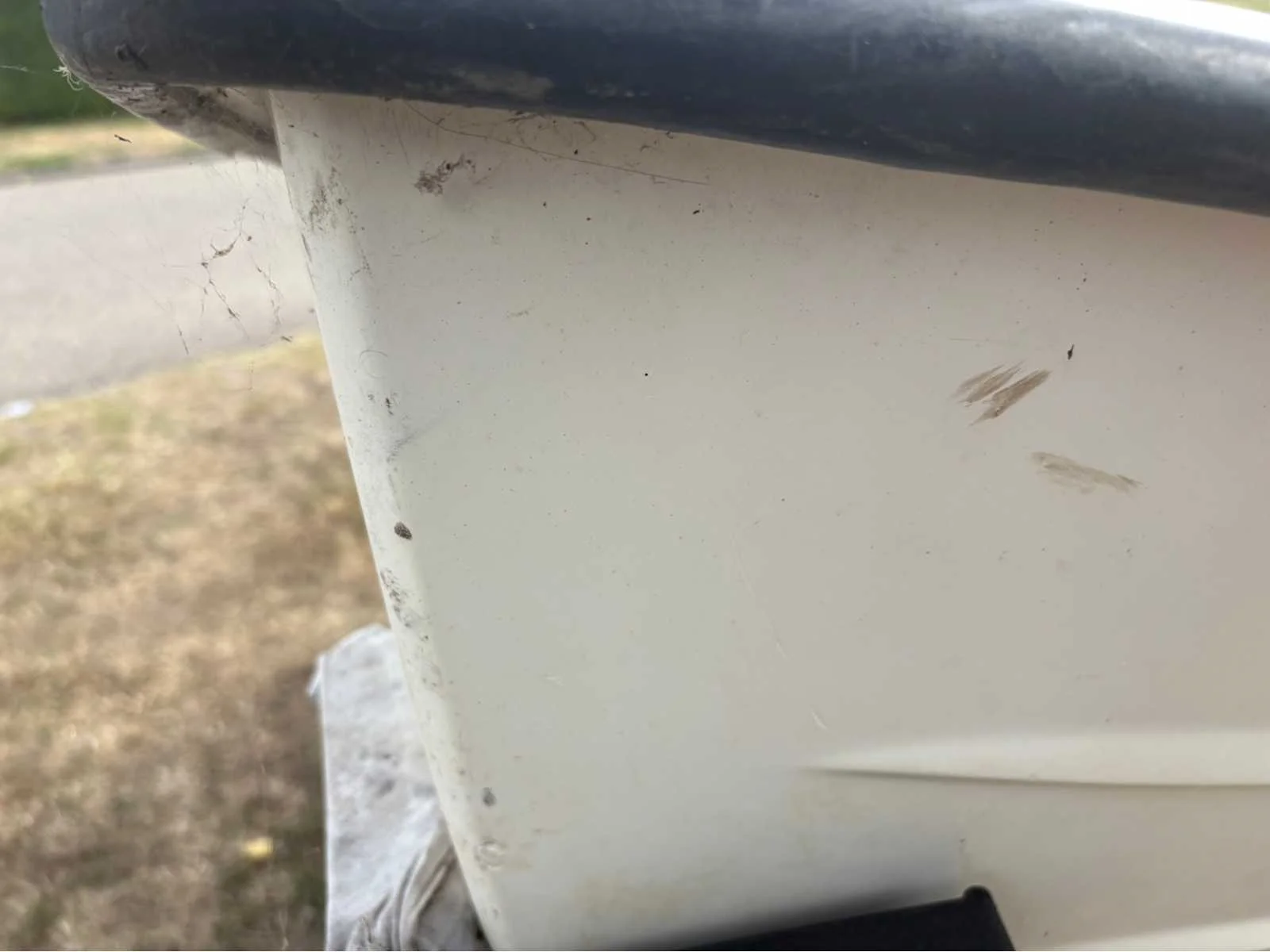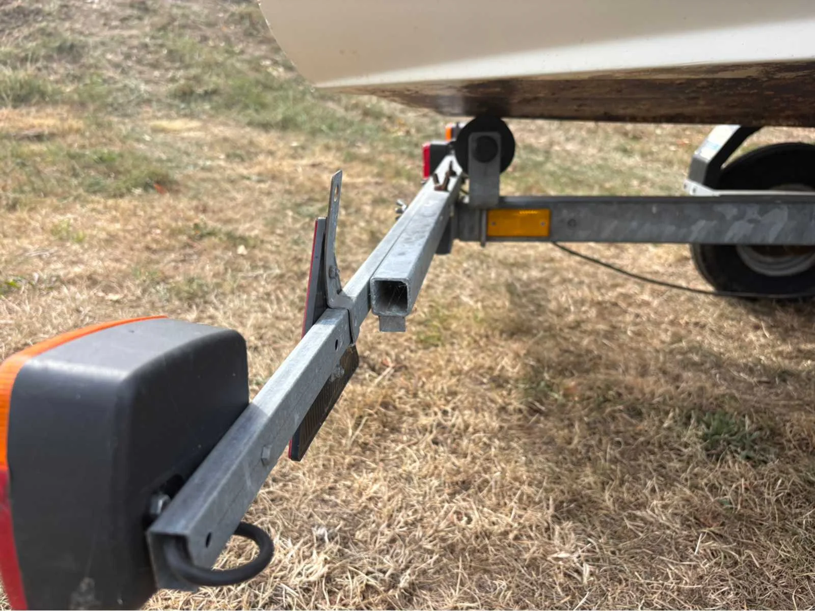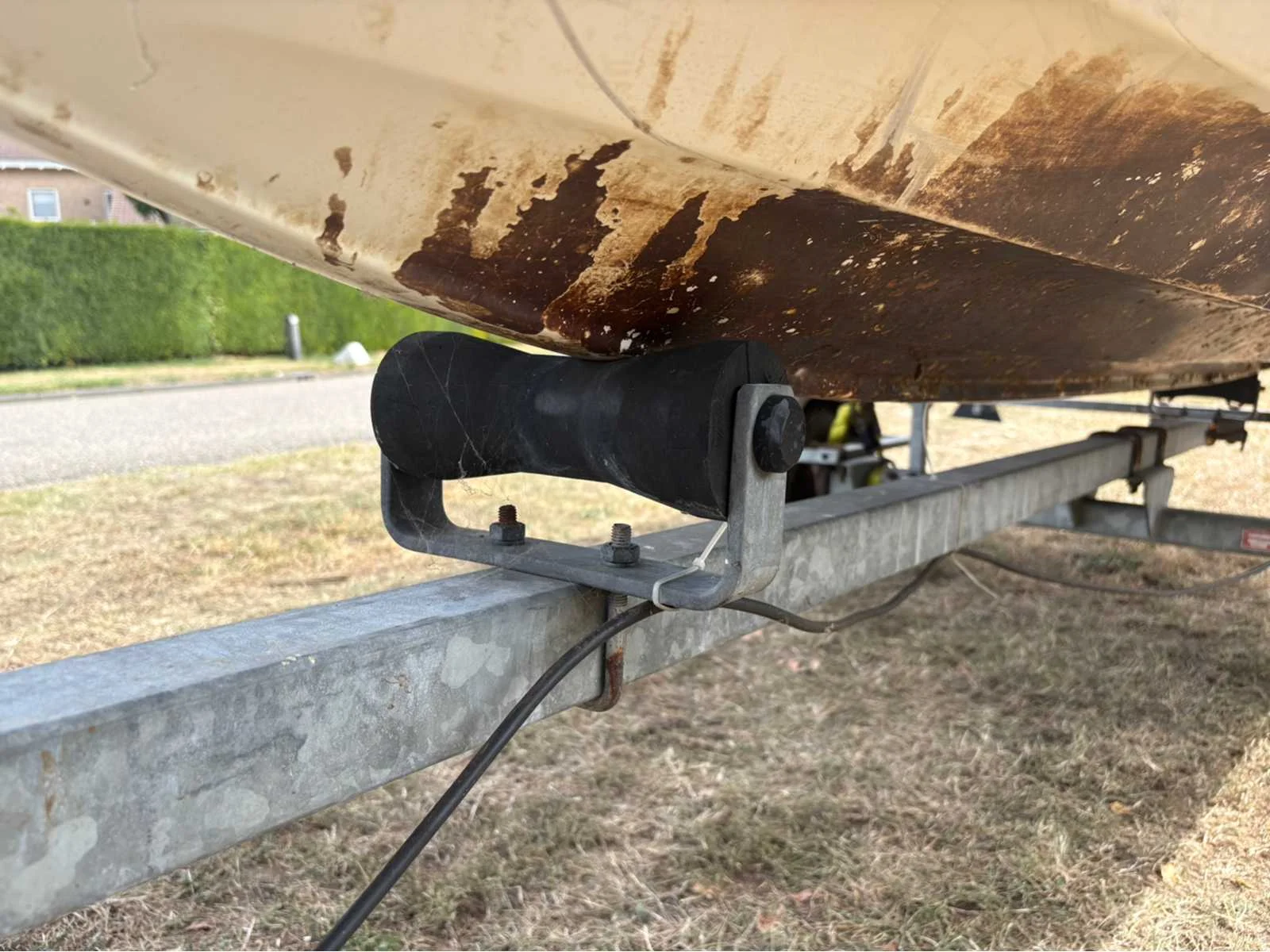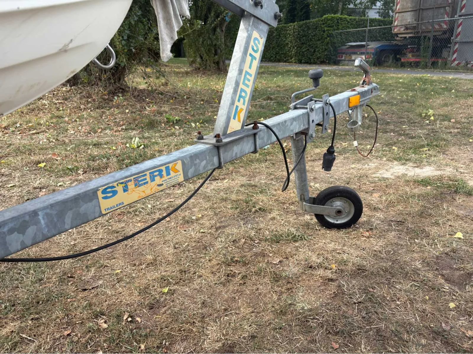 With 320 Dromedille boot, bouwjaar 2004, compleet met Suzuki 9.9 pk 2-takt buitenboordmotor en trailer. Originele uitvoering, voorzien van brandstoftank en afdekzeil. Links en rechts lichte schade aan de gelcoat aanwezig. De klep in de punt is beschadigd en dient vervangen te worden; scharnieren zijn nog aanwezig. Boot verkeert verder in nette staat (LET OP! dit voertuig heeft een kenteken registratie, bij afhalen dient u dit ter plaatste bij een derde partij te naam te stellen of te exporteren, hier zijn extra kosten aan verbonden) (Marge, geen BTW) Nee Merk: With Type: KMW Dromedille 320 Rompmateriaal: Polyester Brandstof: Benzine Bouwjaar: 2004 Serienummer: 347565 Vermogen: 7.3kW Trailer merk + type: Sterk Trailer Lengte over alles: 3.2m Breedte formaat: 1.4m Eigen gewicht: 35kg