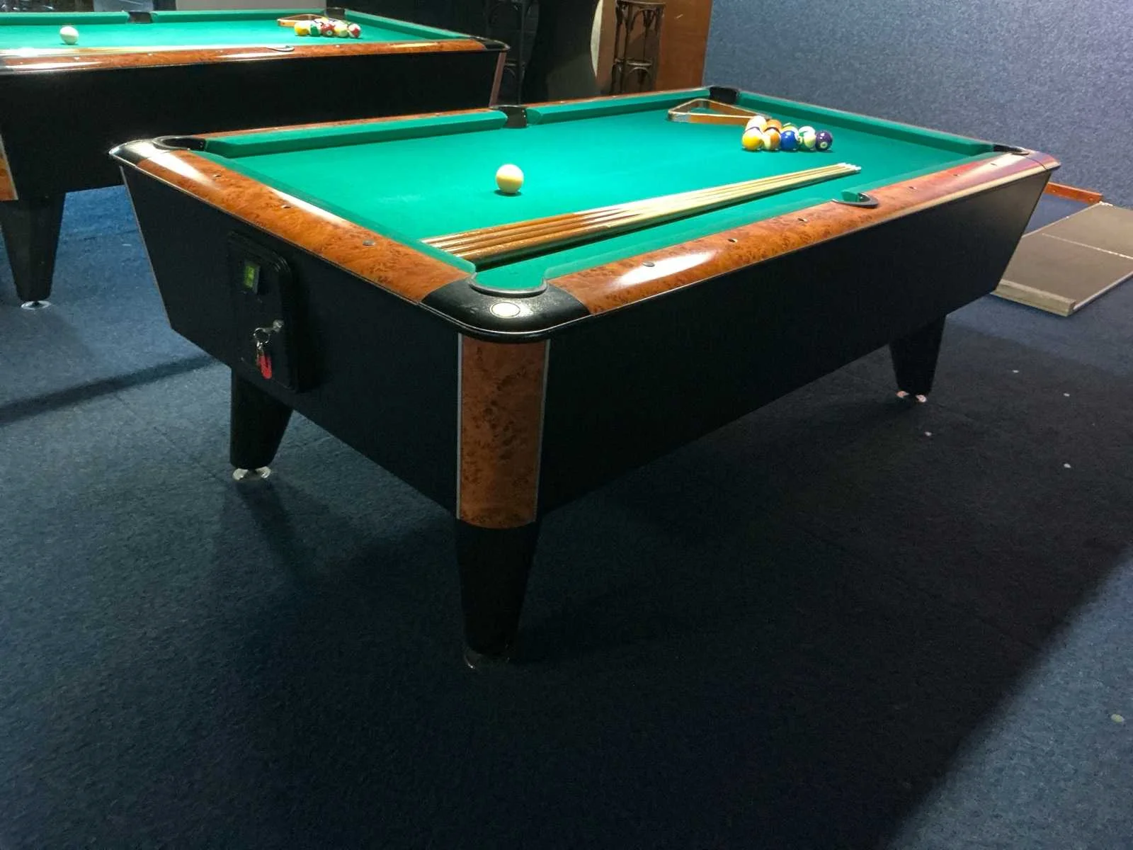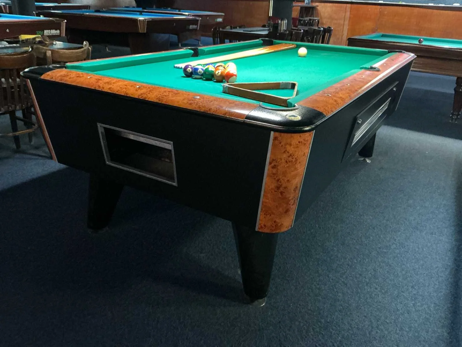 Bestaande uit: 4x keu, complete ballenset, driehoek, sleutelset Let op! Staat op eerste verdieping en dient zelf gedemonteerd en naar beneden gebracht te worden. Speeltafel is tot moment van verkoop nog in gebruik. No Merk: Buffalo Model: Pooltafel 7ft met euro inworp Lengte: 233 Breedte: 133 Hoogte: 82 Materiaal: Leisteen speelveld