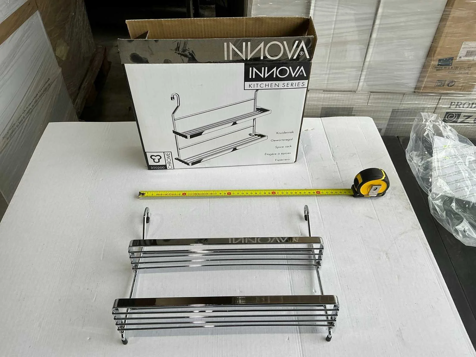 Restpartij Keukenaccessoires bestaande uit: 384x Verchroomde keuken ophangsysteem 120cm 15x Paini Keuken kraan 252x Kookboek houder groot 140x Kookboek houder klein 3x Afdruiprek 480x Lepelhouders 193x Opbergrek schroefbaar 12x Hoek opbergrek 39x Opbergrek 2-laags No 1e: Verchroomde keuken ophangsysteem 120cm 2e: Paini keuken kraan 3e: Kookboek houder groot 4e: Kookbook houder klein 5e: Afdruiprek 6e: Opbergrek schroefbaar 7e: Hoek opbergrek 8e: Opbergrek 2-laags