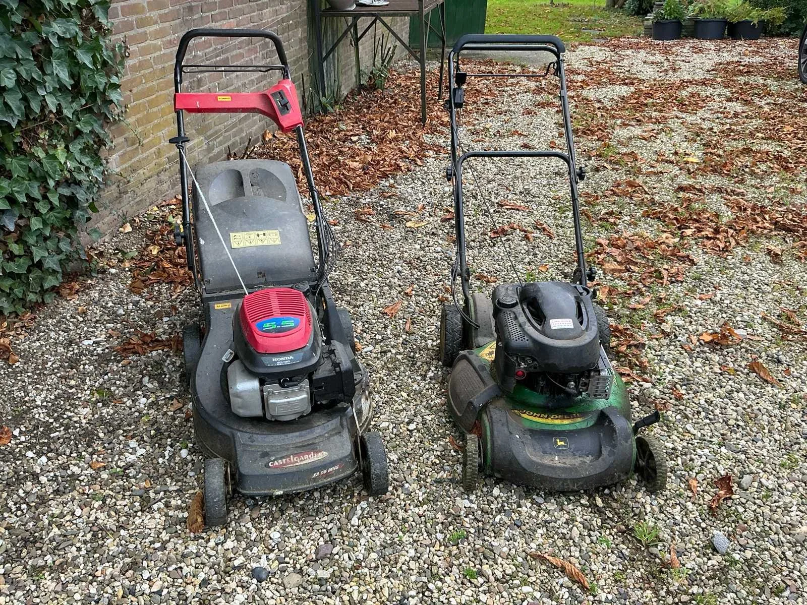 Castelgarden is voorzien van grasopvangbak, de John Deere niet Let op! (Marge, geen BTW) No Merk: John Deere + Castelgarden Type: JS63 & XA 55 MHS Bouwjaar: 2006 Loopmaaier: true Benzinemotor: true Brandstof: Aspen4 Opvang container: true