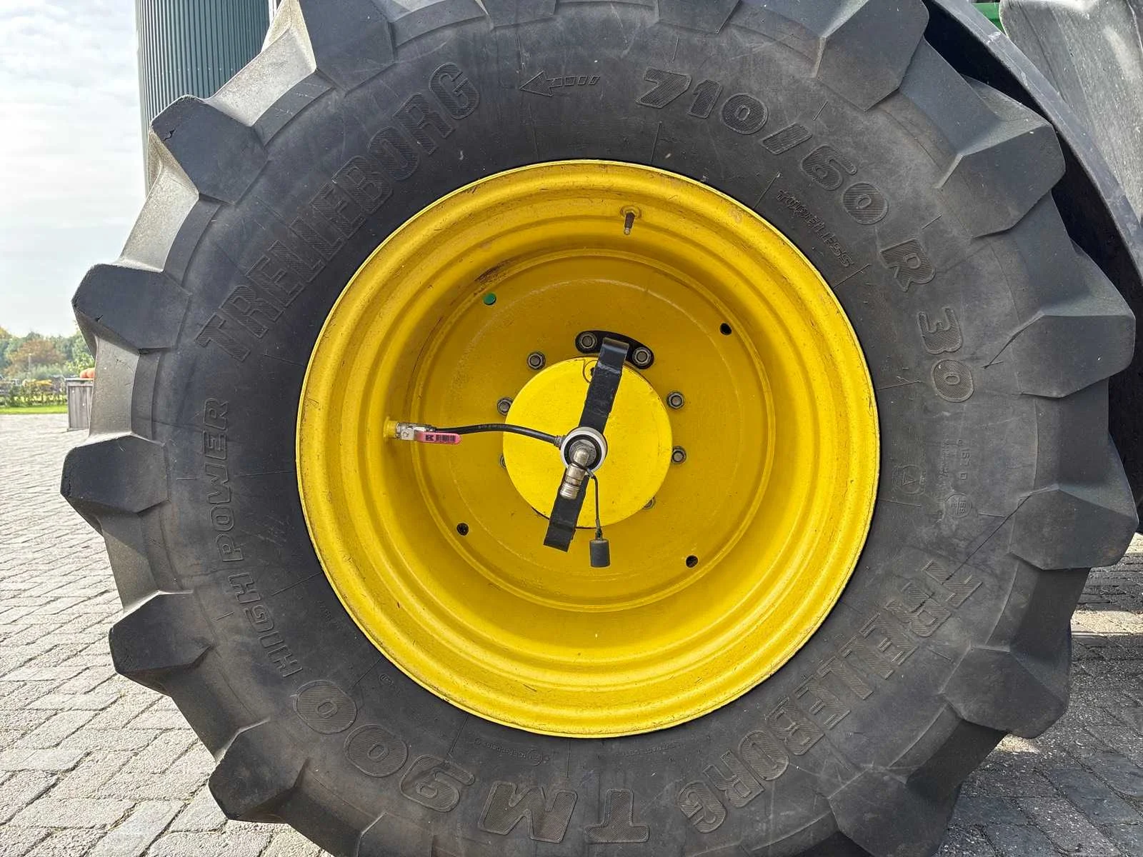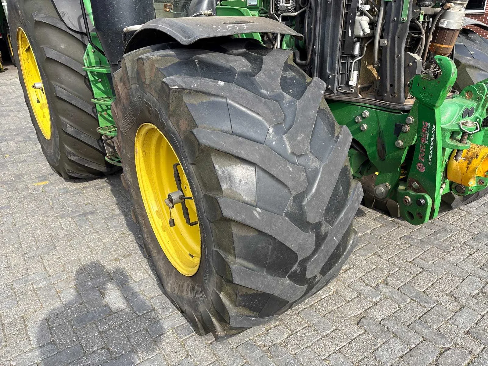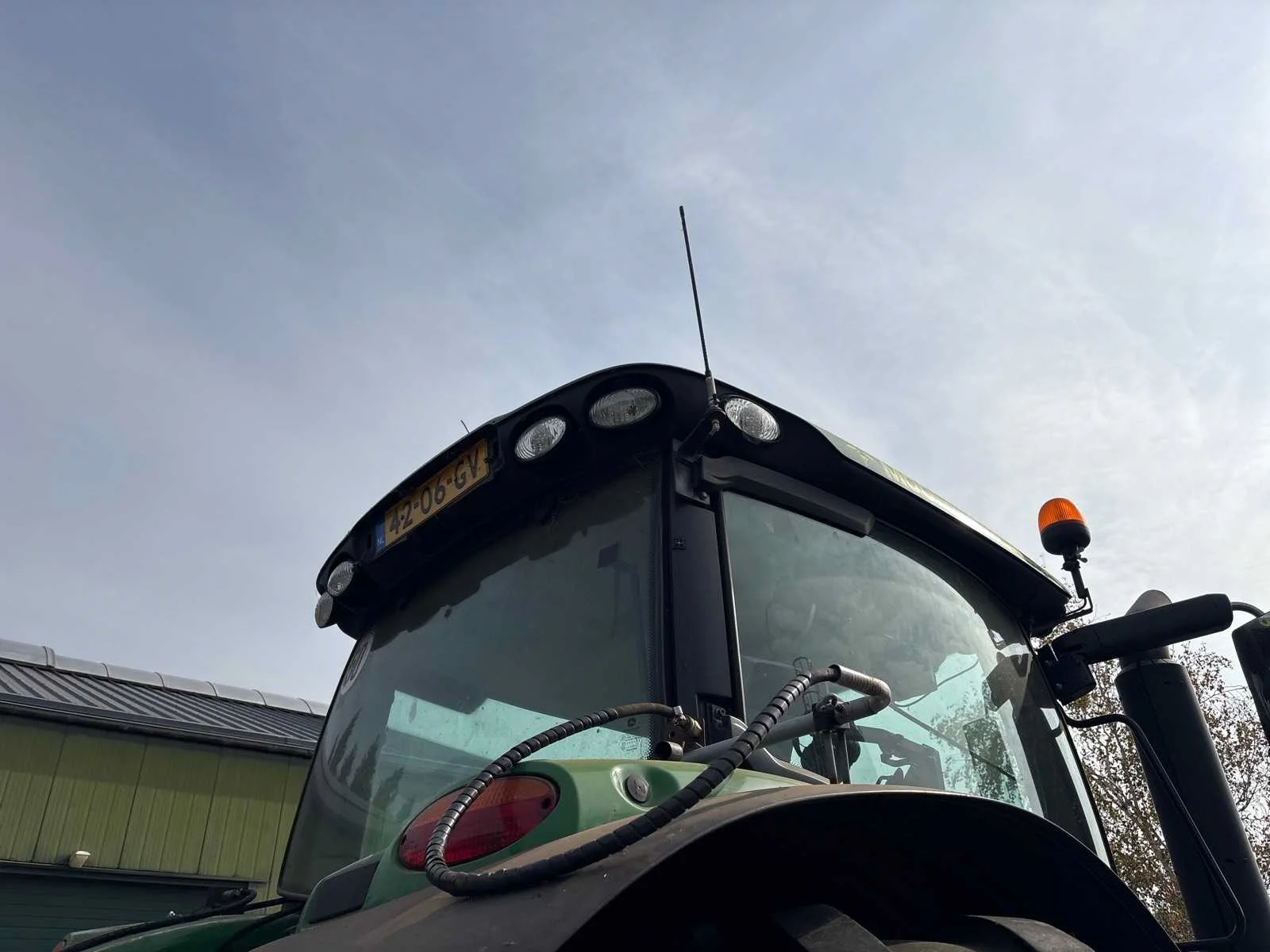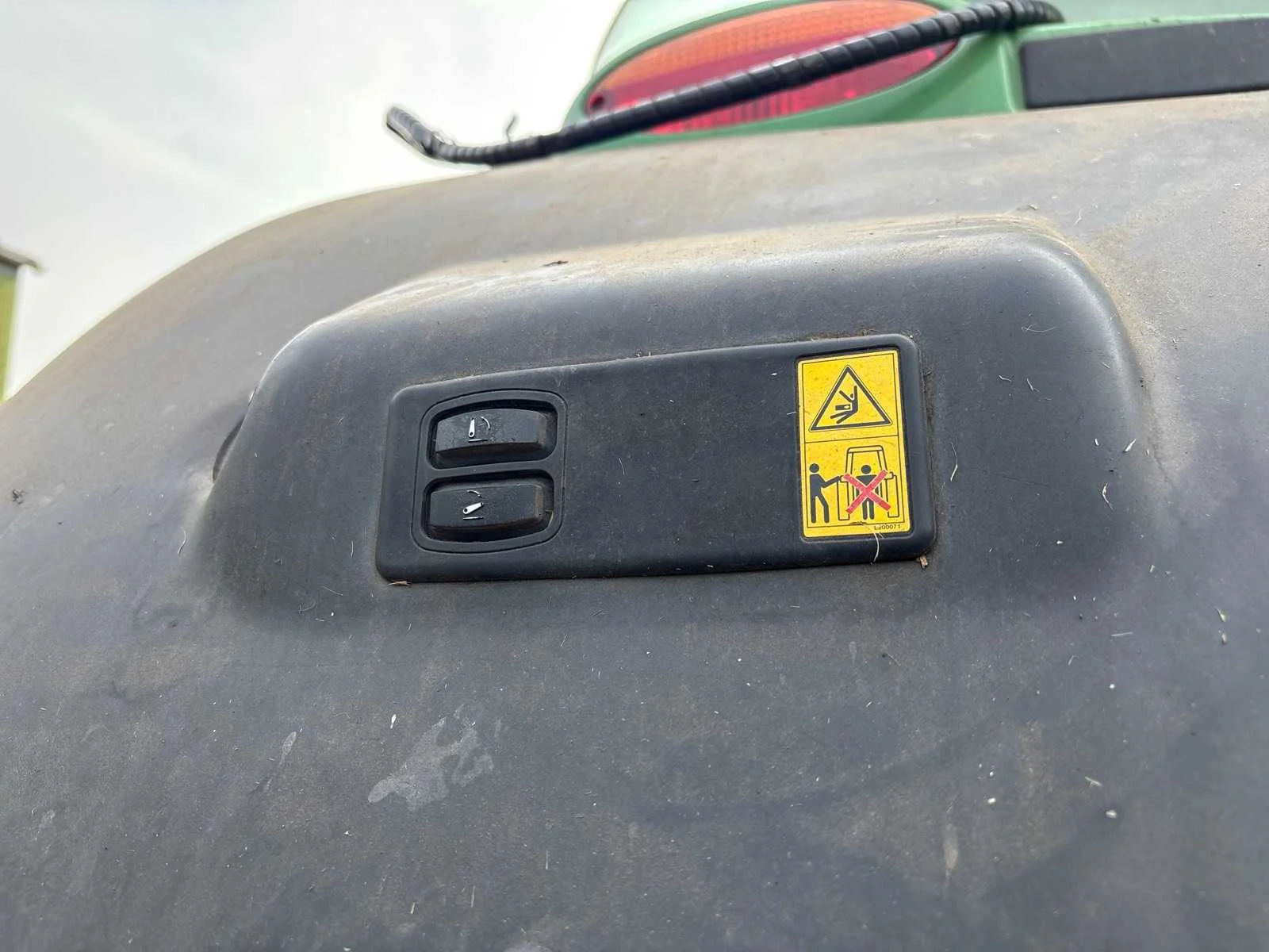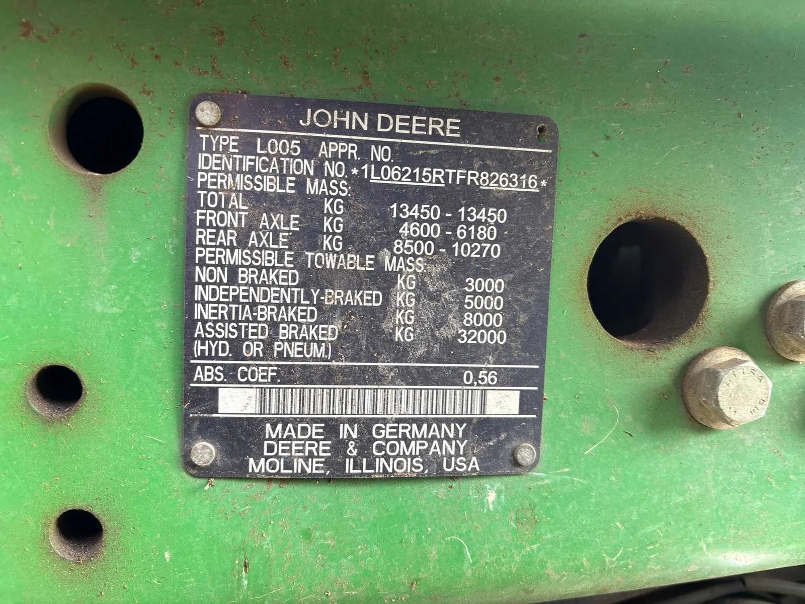 John Deere 6215R voorzien van luchtdrukwisselsysteem, 4DW hydraulische ventielen, Adblue, aanhangwagen luchtremysteem, hydraulische remventiel, Isobus, fronthefinrichting met PTO, werkverlichting rondom, spatbordbediening, bedieningsterminal. Deze landbouwtrekker is uitgerust met een 6,8 liter 6-cilinder motor met turbo en nabehandeling (SCR/DPF). Het nominale vermogen bedraagt 215 pk (160,3 kW), met een maximaal vermogen van 255 pk (190,2 kW) bij gebruik van IPM. Het netto motorvermogen ligt rond de 214 pk (159,6 kW). Het maximale koppel bedraagt ongeveer 1.000 Nm bij 1.600 tpm. De trekker is voorzien van een AutoPowr-transmissie en een maximumsnelheid tot 50 km/u. De aandrijving is 4WD met voor- en achterdifferentieelvergrendeling. Het hydraulieksysteem betreft een gesloten centrum, druk- en flowgecompenseerd systeem met een pompcapaciteit van ca. 155 L/min. De achterhef heeft een hefvermogen van 5.440 kg (gemeten op 610 mm), de voorhef 3.300 kg. PTO-aftakassen zijn aanwezig met 540 / 1.000 / 1.000E tpm achter en 1.000 tpm voor. De afmetingen bedragen 5,05 m lengte, 3,16 m hoogte, 1,89 m breedte en een wielbasis van 2,80 m. Het leeggewicht ligt tussen 7.800 en 8.500 kg (zonder ballast), met een maximaal toelaatbaar totaalgewicht van 13.450 kg. De vooras spoorbreedte is instelbaar tussen 1.524 en 2.235 mm. (LET OP! dit voertuig heeft een kenteken registratie, bij afhalen dient u dit ter plaatste bij een derde partij te naam te stellen of te exporteren, hier zijn extra kosten aan verbonden) Nee Merk: John Deere Type: 6215R Bouwjaar: 2015 Serienummer: L06215RTFR826316 Kenteken: 42-06-GV Motorvermogen (kW): 160kW Afgelezen urenstand: 11481 Aantal hydraulische ventielen voor: 2 Aantal hydraulische ventielen achter: 10 Bandenmaat voor: 710/60R30 Bandenmaat achter: 900/60R42 Fronthefinrichting: true Frontaftakas: true Cabine: true Totale afmeting L: 6200mm Totale afmeting Breedte: 3000mm Totale afmeting Hoogte: 3900mm Kentekenpapieren compleet?: true Chassisnummer: L06215RTFR826316 Datum eerste toelating: 2015-06-30 Nationaliteit documenten: NL