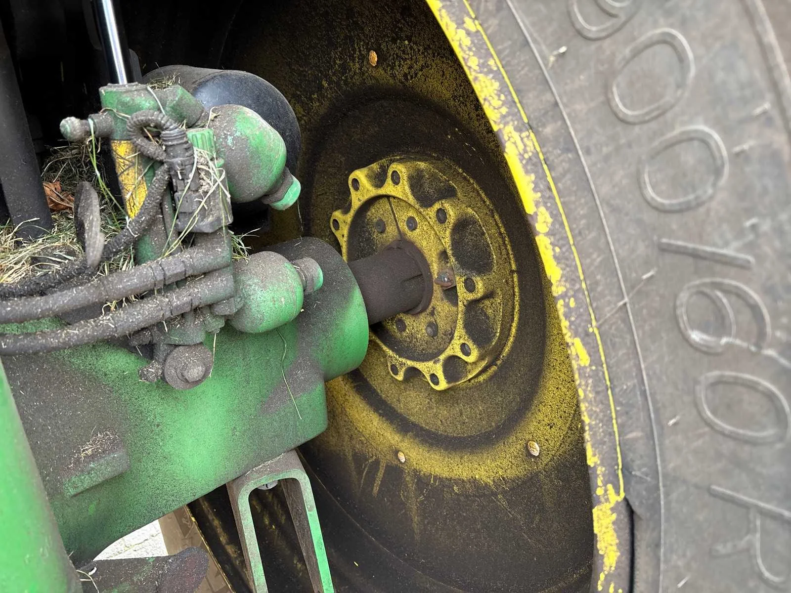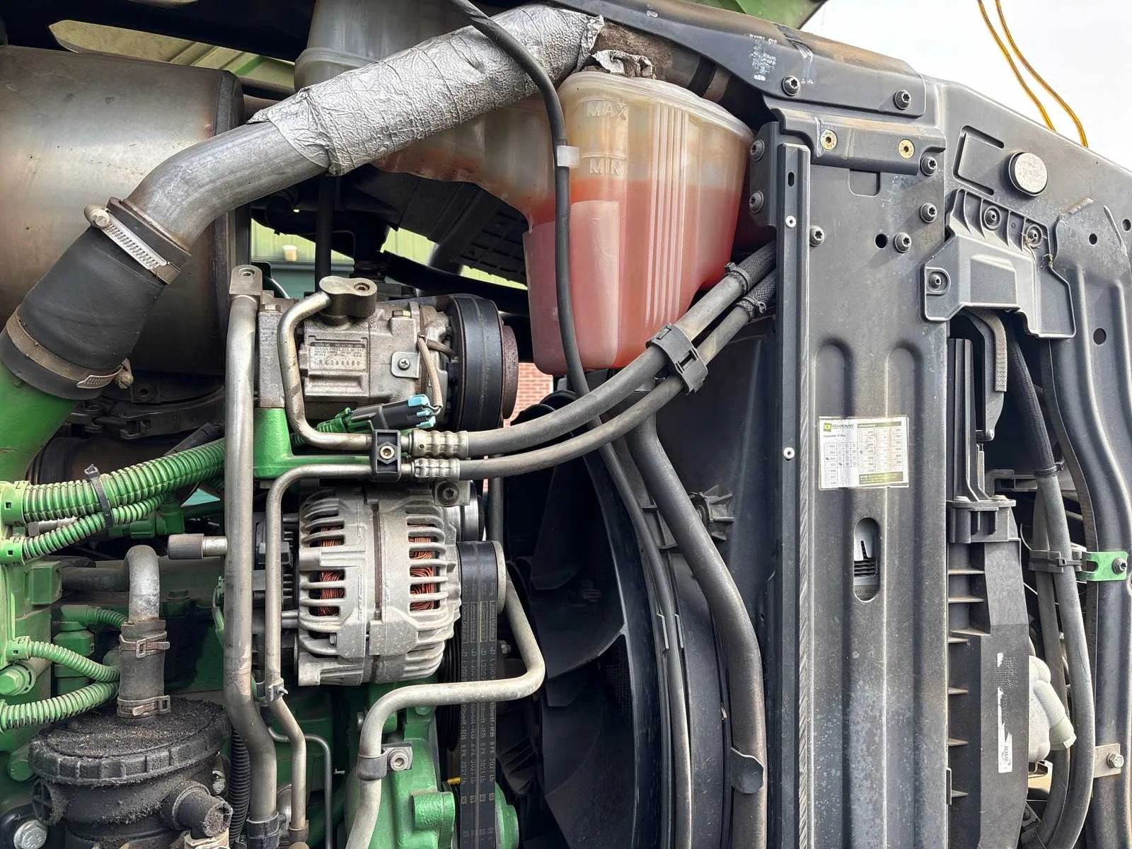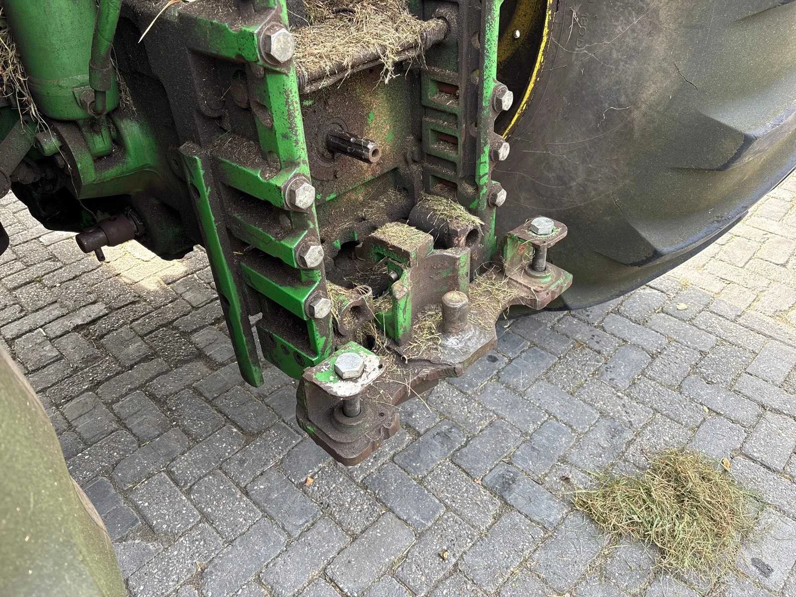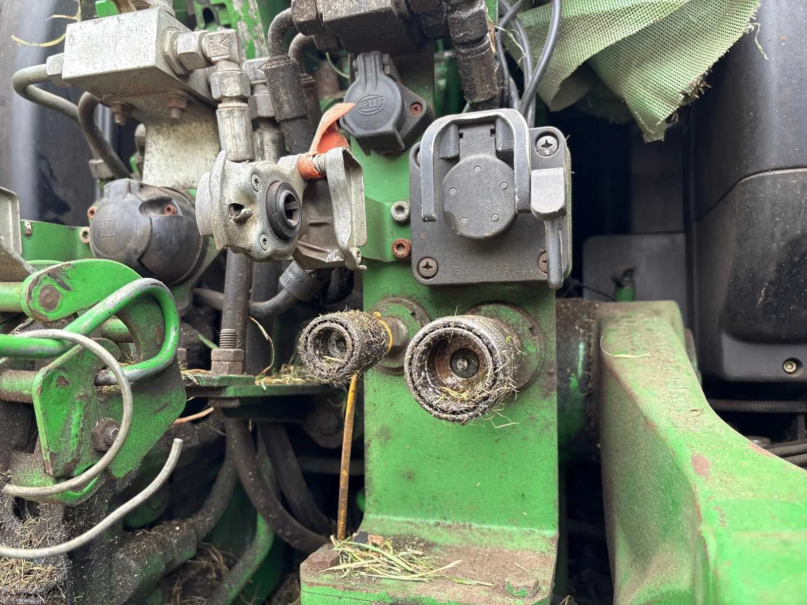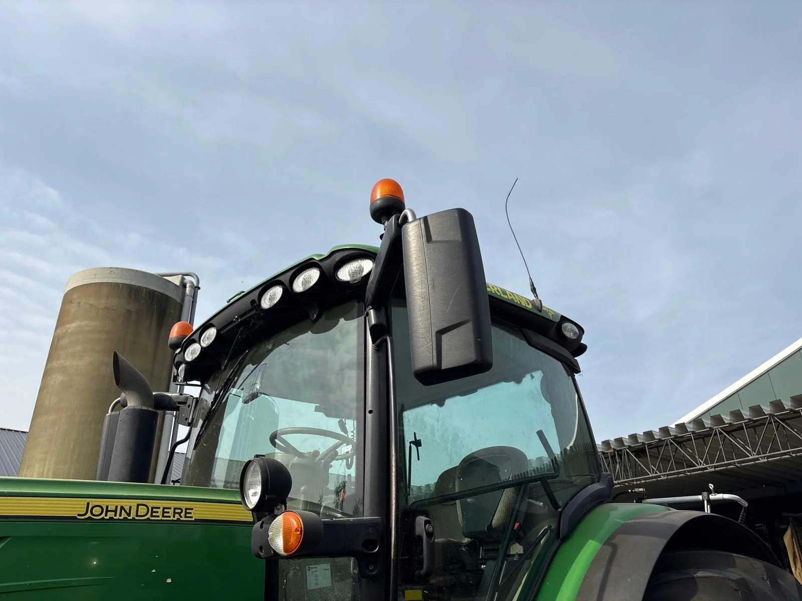 John Deere 6215R voorzien van luchtdrukwisselsysteem, 4DW hydraulische ventielen, Adblue, aanhangwagen luchtremysteem, hydraulische remventiel, Isobus, fronthefinrichting met PTO, werkverlichting rondom, spatbordbediening, bedieningsterminal. Deze landbouwtrekker is uitgerust met een 6,8 liter 6-cilinder motor met turbo en nabehandeling (SCR/DPF). Het nominale vermogen bedraagt 215 pk (160,3 kW), met een maximaal vermogen van 255 pk (190,2 kW) bij gebruik van IPM. Het netto motorvermogen ligt rond de 214 pk (159,6 kW). Het maximale koppel bedraagt ongeveer 1.000 Nm bij 1.600 tpm. De trekker is voorzien van een AutoPowr-transmissie en een maximumsnelheid tot 50 km/u. De aandrijving is 4WD met voor- en achterdifferentieelvergrendeling. Het hydraulieksysteem betreft een gesloten centrum, druk- en flowgecompenseerd systeem met een pompcapaciteit van ca. 155 L/min. De achterhef heeft een hefvermogen van 5.440 kg (gemeten op 610 mm), de voorhef 3.300 kg. PTO-aftakassen zijn aanwezig met 540 / 1.000 / 1.000E tpm achter en 1.000 tpm voor. De afmetingen bedragen 5,05 m lengte, 3,16 m hoogte, 1,89 m breedte en een wielbasis van 2,80 m. Het leeggewicht ligt tussen 7.800 en 8.500 kg (zonder ballast), met een maximaal toelaatbaar totaalgewicht van 13.450 kg. De vooras spoorbreedte is instelbaar tussen 1.524 en 2.235 mm. (LET OP! dit voertuig heeft een kenteken registratie, bij afhalen dient u dit ter plaatste bij een derde partij te naam te stellen of te exporteren, hier zijn extra kosten aan verbonden) Nee Merk: John Deere Type: 6215R Bouwjaar: 2015 Serienummer: L06215RTFR826316 Kenteken: 42-06-GV Motorvermogen (kW): 160kW Afgelezen urenstand: 11481 Aantal hydraulische ventielen voor: 2 Aantal hydraulische ventielen achter: 10 Bandenmaat voor: 710/60R30 Bandenmaat achter: 900/60R42 Fronthefinrichting: true Frontaftakas: true Cabine: true Totale afmeting L: 6200mm Totale afmeting Breedte: 3000mm Totale afmeting Hoogte: 3900mm Kentekenpapieren compleet?: true Chassisnummer: L06215RTFR826316 Datum eerste toelating: 2015-06-30 Nationaliteit documenten: NL