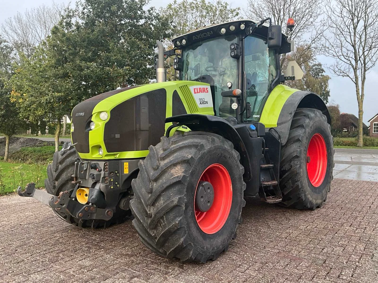 Voorzien van 6-Cil. “FPT” Dieselmotor; aftakas: 540/540E/1000/1000E Rpm; kipperknobbel; luchtsysteem; loadsensing; 4 dubbelwerkende hydraulische ventielen achter; hydraulische remventiel; isobus; spatbord bediening; fronthefinrichting; frontaftakas; 2 dubbelwerkende hydraulische ventielen voor; Trimble GPS systeem; geveerde vooras; geveerde cabine Nee Merk: Claas Type: Axion 950 C-matic Bouwjaar: 2013 Kenteken: TVN-22-L Afgelezen urenstand: 8595 Bandenmaat voor: 710/60R30 Bandenmaat achter: 800/70R38 Cabine: true Luchtgeveerde stoel: true Datum eerste toelating: 2013-06-30