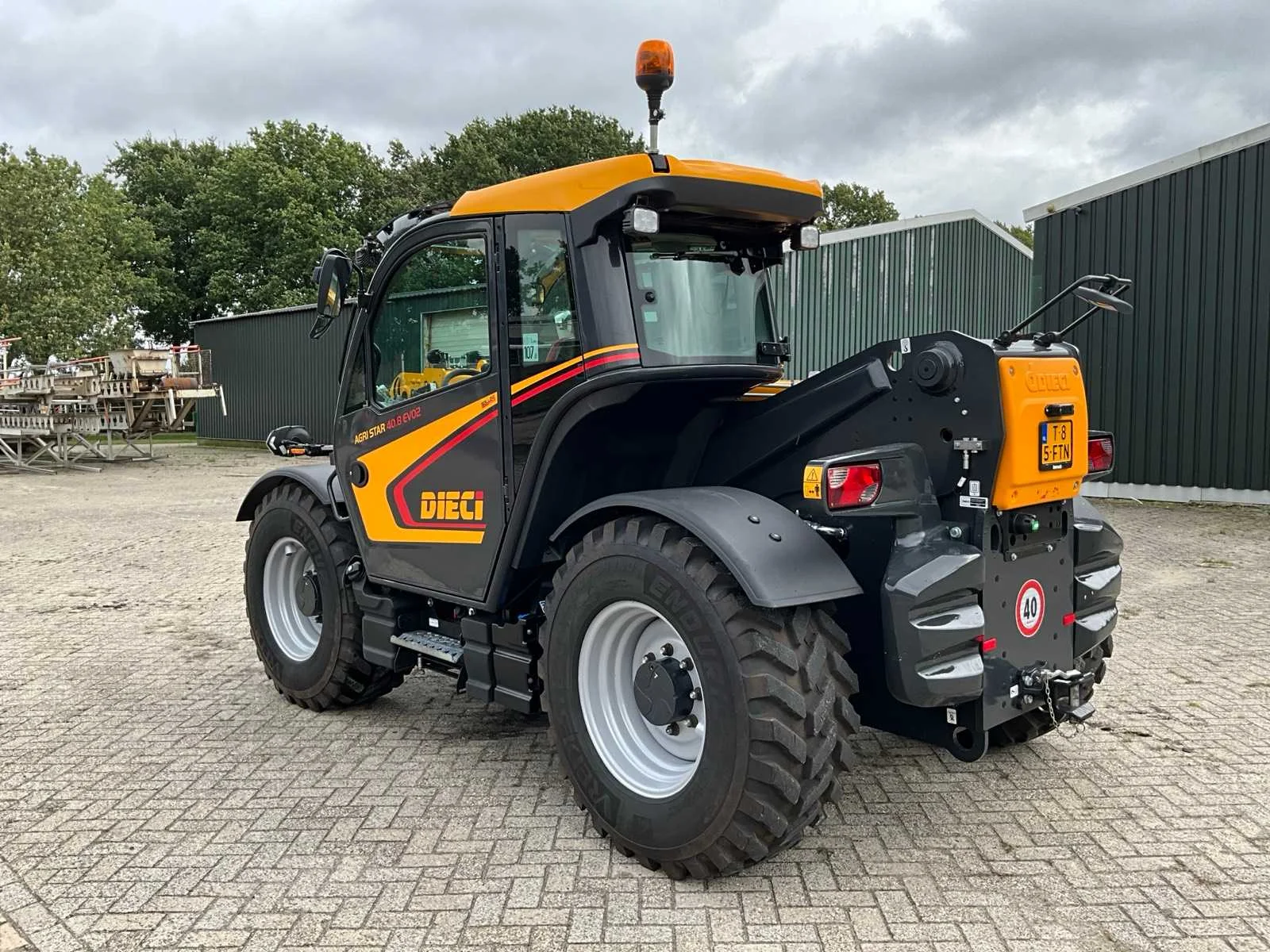 Voorzien van 4-Cil. “Perkins” Dieselmotor; 130 pk; 40km/h; hydraulische snelwissel; Manitou aansluiting;Vario transmissie; geveerde cabine; airco; uitlijnhulp; omkeerfan; geveerde mast; Vredestein: 460/70R24; Nee Merk: Dieci Type: Agristar 40.8 Bouwjaar: 2023 Kenteken: T85ftn Motorvermogen (kW): 95kW Hefvermogen: 4000kg Hefhoogte: 7200mm Cabine: true Vierwielaandrijving 4x4: true Luchtbanden: true Afgelezen urenstand: 476 Eigen gewicht: 8500kg