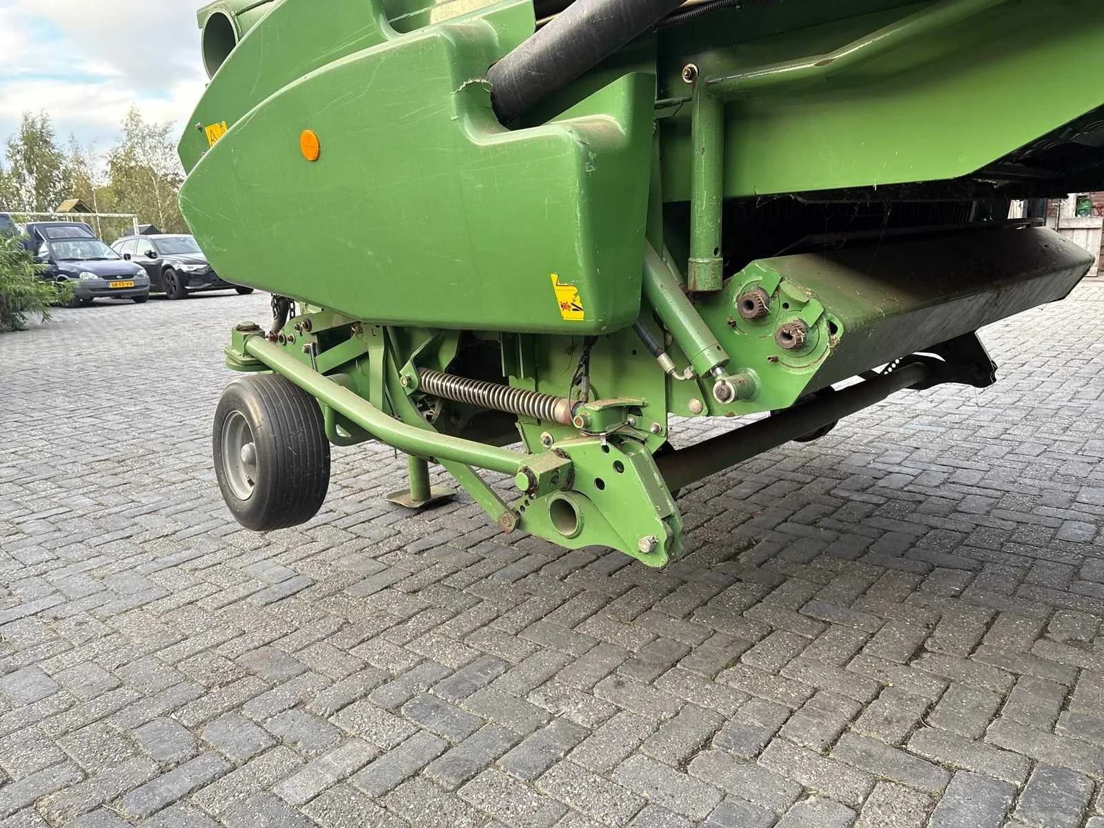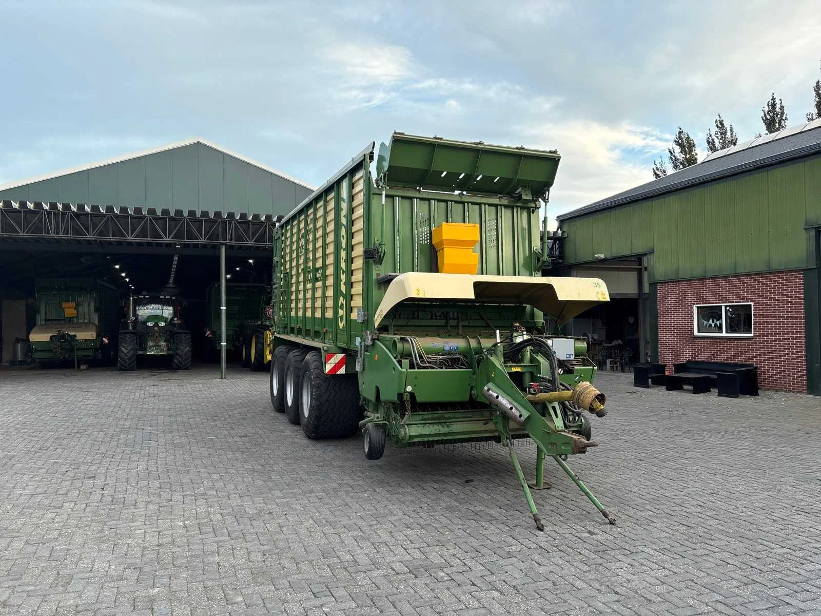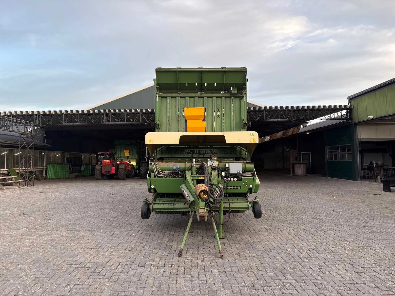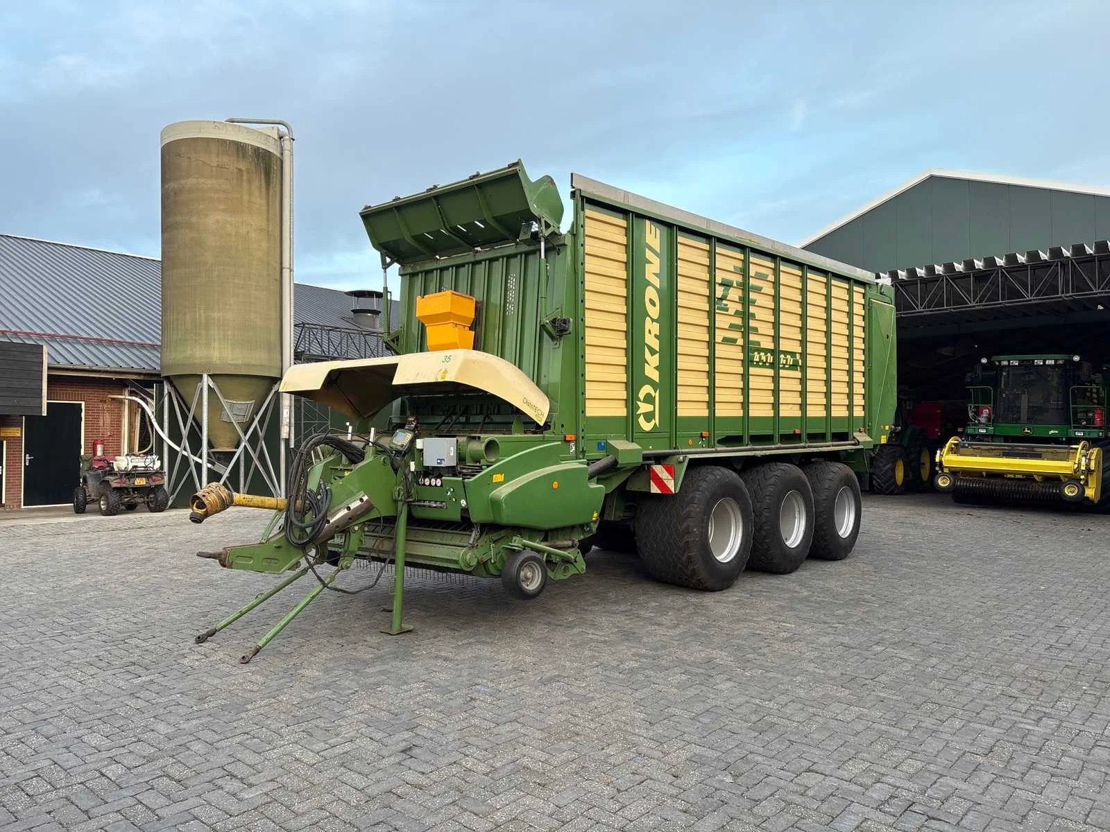 Deze Krone ZX 450 opraapwagen is uitgerust met een hydraulisch tridemstel (3-assig) met liftas en gedwongen besturing. De wagen staat op 800/45R26.5 banden en beschikt over een weeginrichting in combinatie met doseerwalsen. Verder is de machine voorzien van een Gamma bedienterminal, granulaat dosseerapparaat en wordt geleverd met Nederlands kenteken (LRS-95-B). De opraapwagen heeft een opslagcapaciteit van 27.000 liter en is voorzien van maximaal 46 messen. Het eigen gewicht bedraagt 28.500 kg. De totale afmetingen zijn 10.000 mm lengte, 3.000 mm breedte en 3.900 mm hoogte. Serienummer: ZX873071. Nee Merk: Krone Type: ZX 450 Bouwjaar: 2013 Serienummer: ZX873071 Kenteken: LRS-95-B Opslagcapaciteit: 27000 Met onderstel: true Bandenmaat: 800/45R26.5 Maximaal aantal messen: 46 Verdeelwals: true Doseerapparaat: true Afgelezen urenstand: 808 Eigen gewicht: 28500 Totale afmeting L: 10000 Totale afmeting Breedte: 3000 Totale afmeting Hoogte: 3900