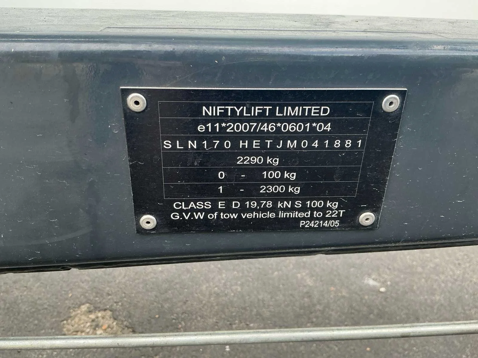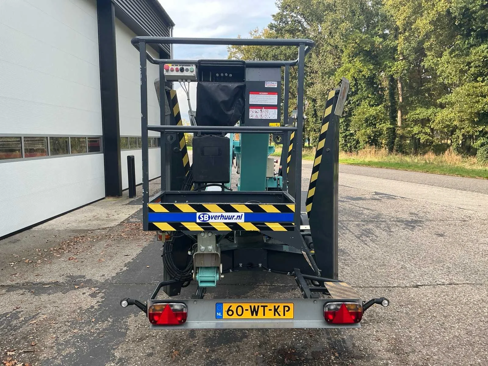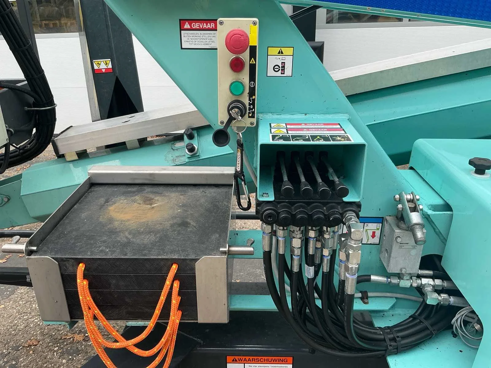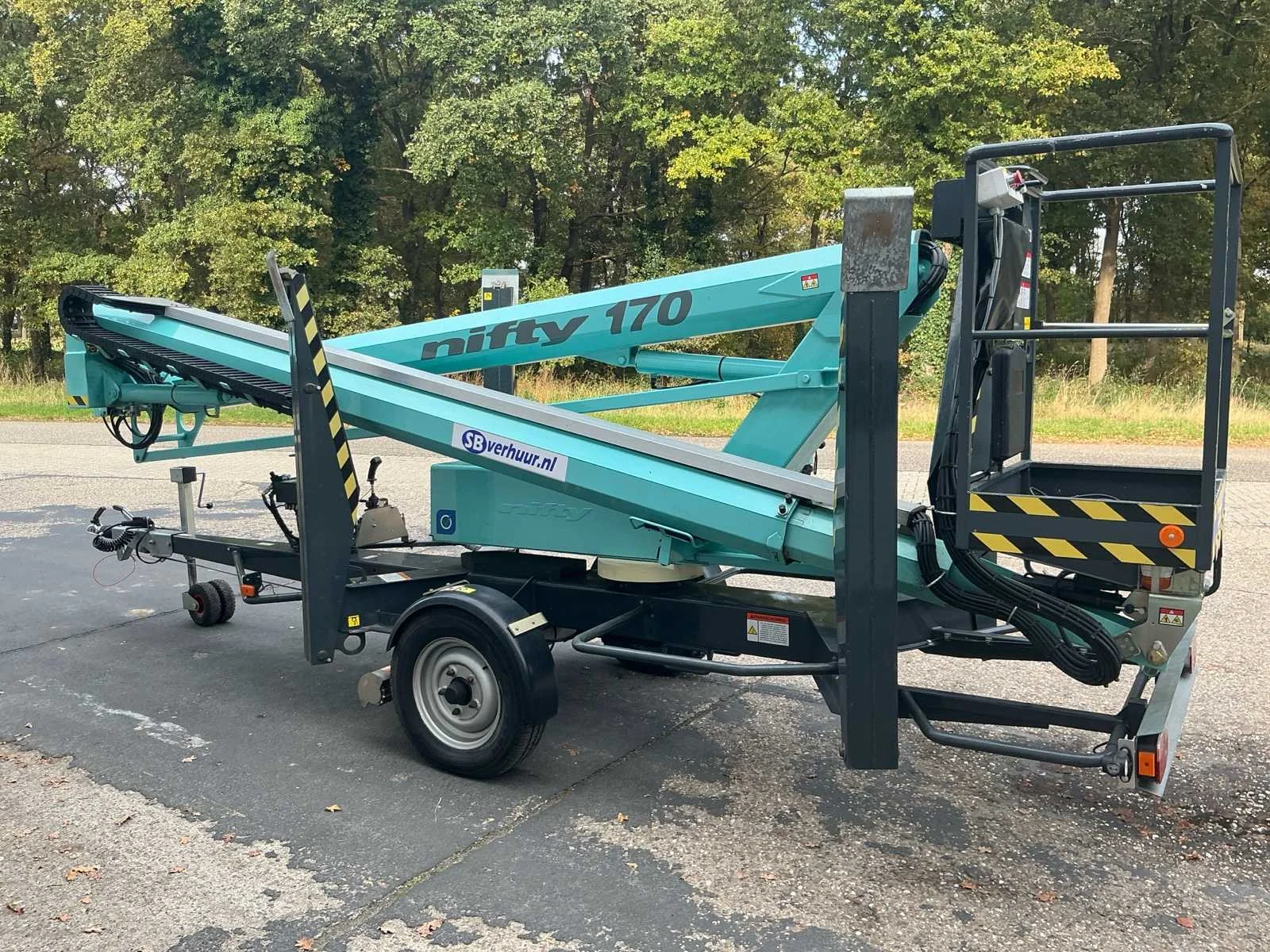 Voorzien van interne lader, nieuw accu pakket met loodzuur, September 2025 gekeurd, moovers, 24V DC (4x 6V deep cycle batterijen, totaal ± 340 Ah), Stempels (outriggers): 4 hydraulisch bedienbare stempels met waterpasindicator, Rotatie: 360° continu (niet-overlappend), Platformrotatie: 100° (handmatig of hydraulisch, afhankelijk van optie), Kenteken: 60-WT-KP, Veiligheidssystemen: Nooddaalsysteem, kantelbeveiliging, overbelastingbeveiliging. Nee Merk: Nifty Type: 170HET MK1B Bouwjaar: 2018 Serienummer: 17 41881 Elektrisch: true Knikarm hoogwerker: true Werkhoogte: 17100mm Horizontale rijkwijdte: 8700mm Plateau afm. l: 960mm Plateau afm. b: 670mm Platform capaciteit: 200kg Accu lader: true Eigen gewicht: 2170kg Totale afmeting L: 6200mm Totale afmeting Breedte: 1600mm Totale afmeting Hoogte: 2150mm