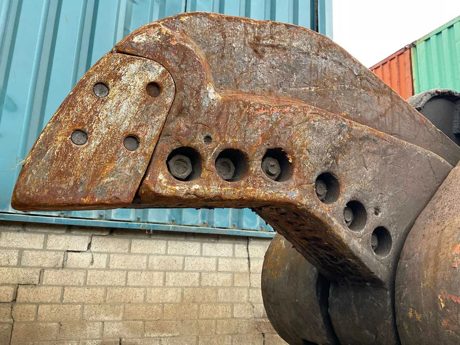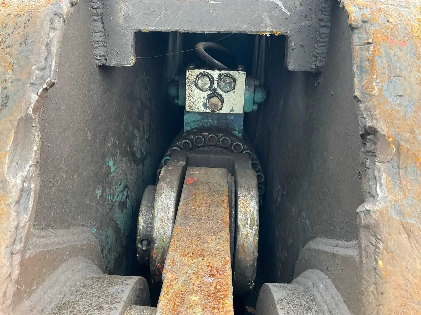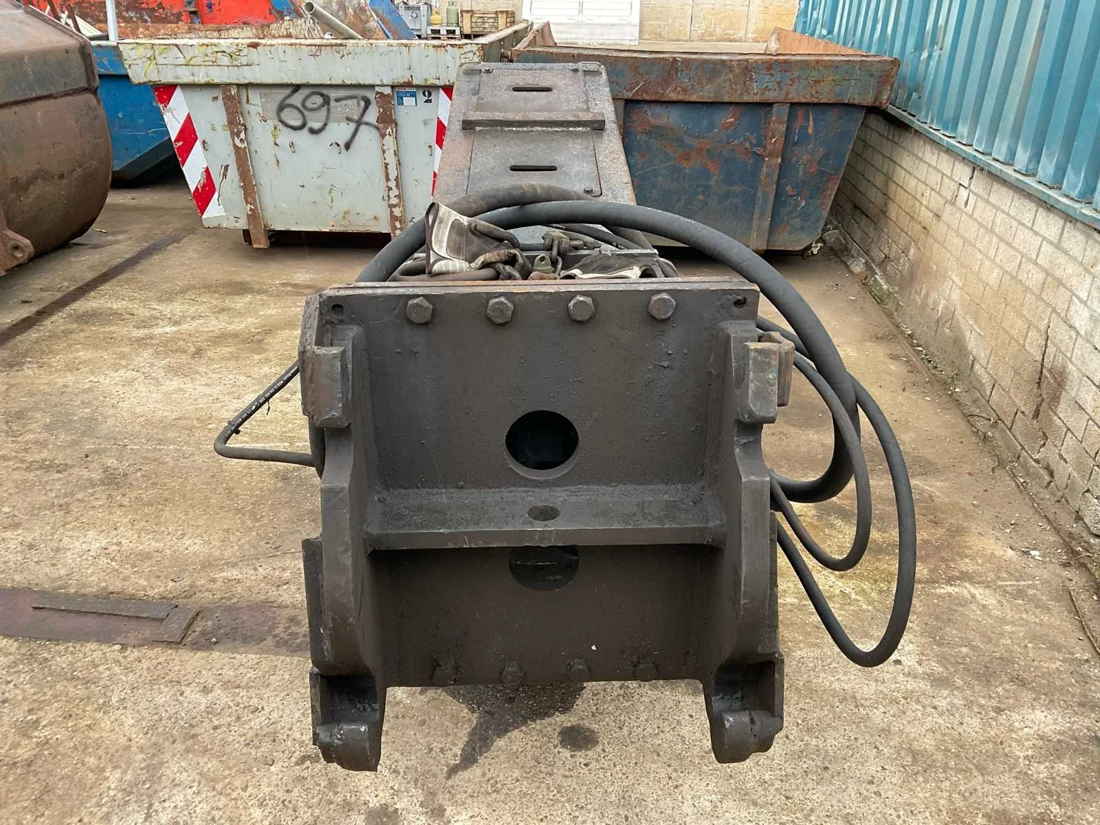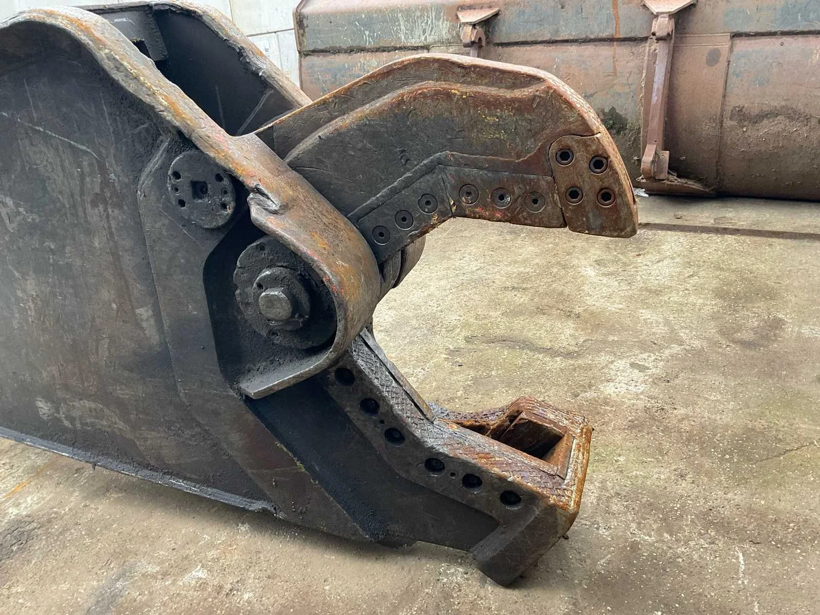Hydraulisch aangedreven, lengte schaar: 600mm, voorzien van: CW30 aansluiting, verdraaibare messen (1 kant gebruikt, nog 3 kanten te gebruiken), Nee Merk: Eagleshears Type: MBI Totale afmeting L: 3200mm Totale afmeting Breedte: 720mm Totale afmeting Hoogte: 1280mm