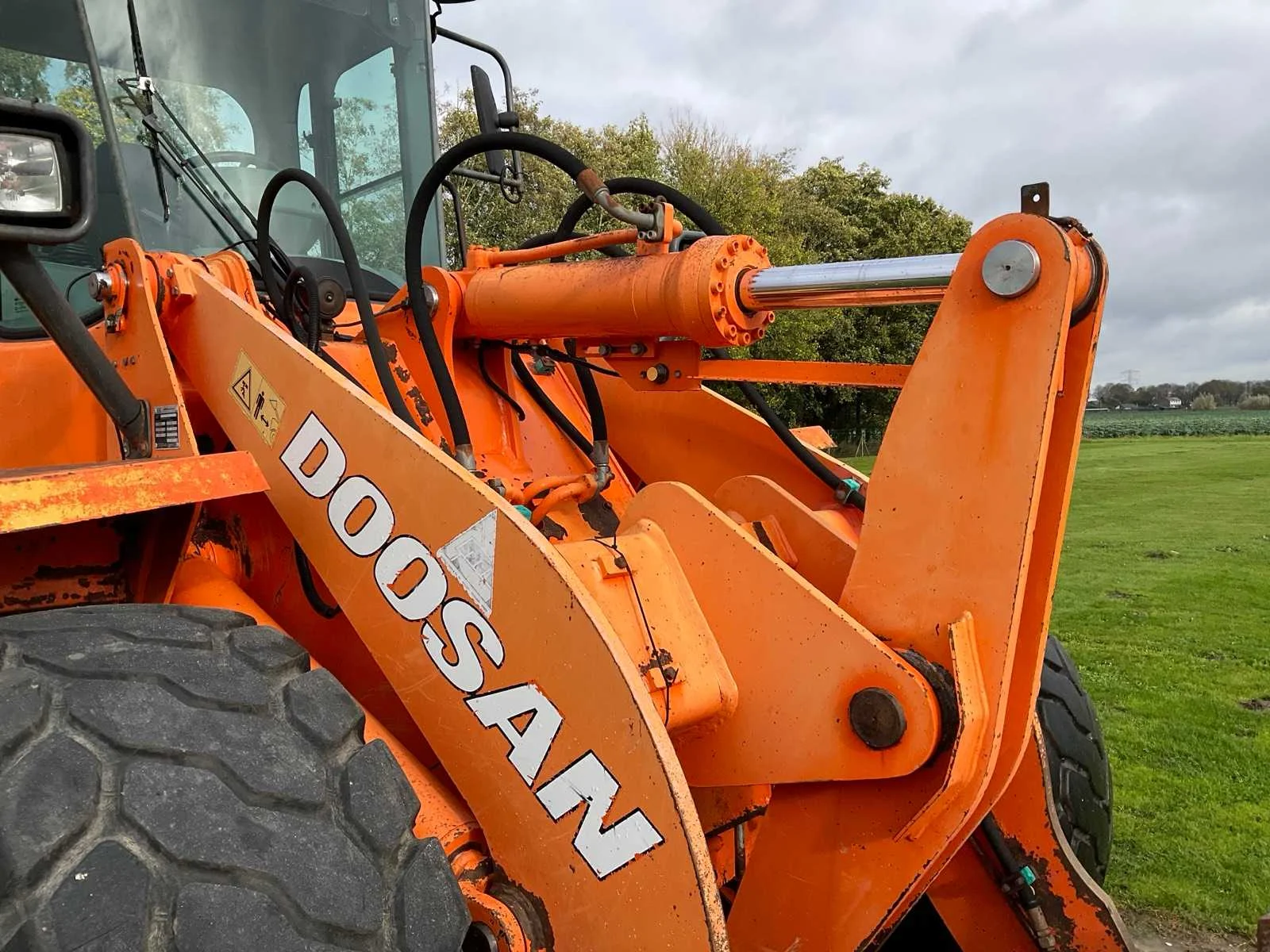 Voorzien van: hoogkipbak, climate control, automatisch smeersysteem, (geen kentekenregistratie) No Merk: Doosan Type: DL200 Bouwjaar: 2011 Serienummer: DHKCWLACTA0005508 Motorvermogen (kW): 107kW Brandstof: diesel Graafbak afm. b: 2480mm Bandenmaat: Bridgestone 20.5R26 Cabine: true Afgelezen urenstand: 8866 Totale afmeting L: 7600mm Totale afmeting Breedte: 3200mm Totale afmeting Hoogte: 3200mm