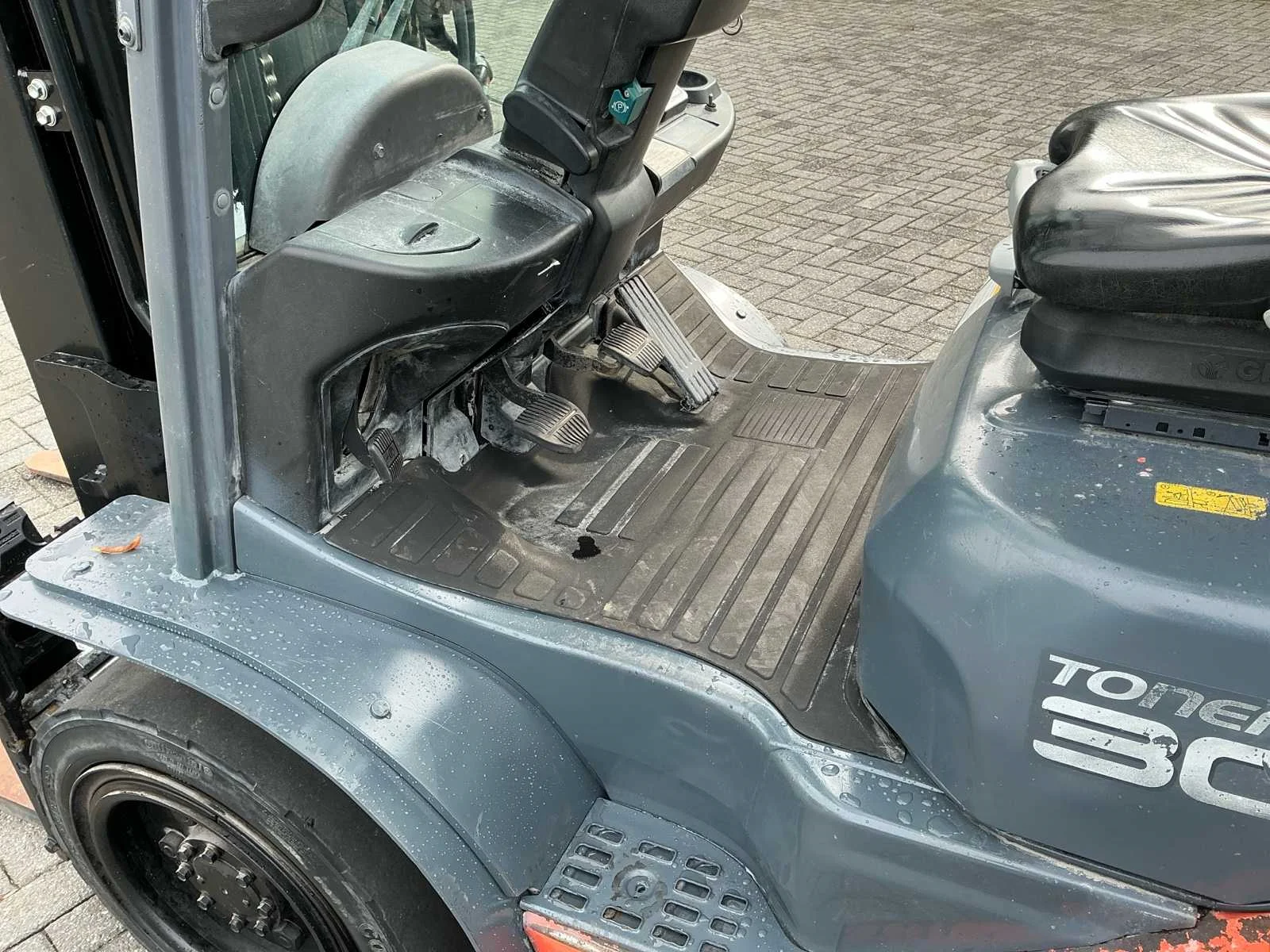 Voorzien van: triplex mast, side-shift, hydraulische vorken verstelling, werklampen, ruitenwissers, cycloon filter, Grammer mechanisch geveerde stoel, verstelbare stuurkolom, handrem, knipperlicht. Nee Merk: Toyota Type: 8 FDF30 Bouwjaar: 2013 Serienummer: 31170 Brandstof: Diesel Mast: Triplex Soort band: Volrubber Aantal wielen: 4 Afgelezen urenstand: 1868 Side-shift: true Hydraulisch verstelbare lepels: true Triple mast: true Eigen gewicht: 4850kg Hefvermogen: 3000kg Lepellengte: 1200mm Vol rubber banden: true Minimale doorrijhoogte: 2650mm Totale afmeting L: 4000mm Totale afmeting Breedte: 1250mm Totale afmeting Hoogte: 2650mm Diesel: true Leveringsvoorwaarden: Geladen op vrachtwagen