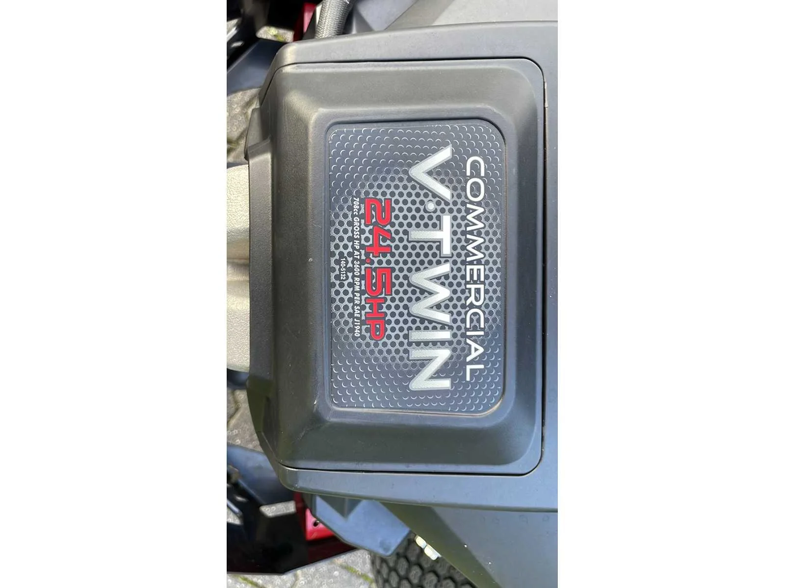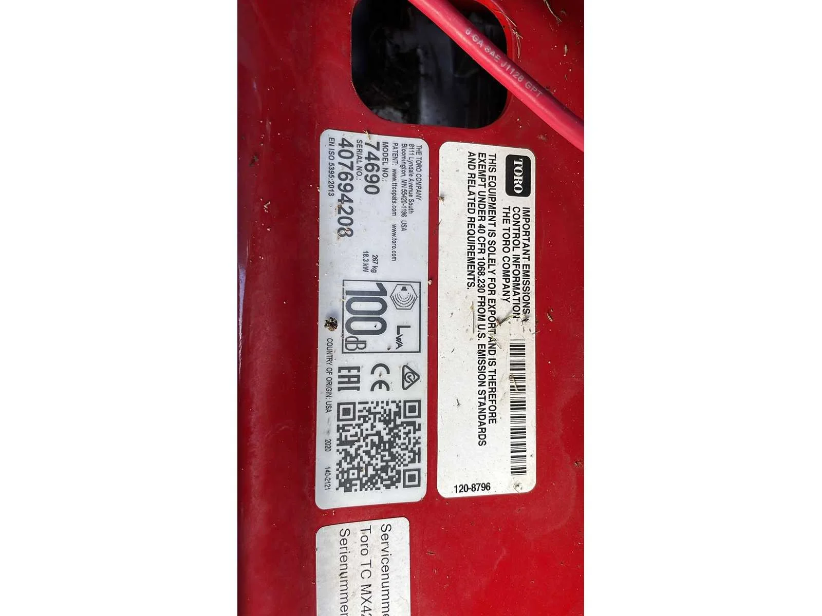 Voorzien van: motor 2cill 24,5 pk 725cc Kohler V-twin cilinderinhoud 708 cc, brandstoftank 11,4 liter, maaibreedte 107 cm, maaidek van 107 cm, voetbediening maaihoogte, rijsnelheid 9,7 km/u, maaihoogte 3,8 - 11,4 cm, comfort Platform MyRIDE® ophanging, stoel met hoge rugsteun van 46 cm met armsteunen en schuifhendel, twee stuurhendels, banden 28 cm x 15 cm glad vooraan, 46 cm x 24 cm - 20 cm achter, twee hydrostatische aandrijvingen HG-ZT2100, rechtszijdige uitworp, maaien: 0 tot 11,3 km/u (0 tot 7,0 mph), trimmen: 0 tot 8,9 km/u (0 tot 5,5 mph), slepen: 0 tot 6,4 km/u (0 tot 4,0 mph), achteruit: 0 tot 4,4 km/u (0 tot 3,5 mph), breedte deflector omlaag: 136,0 cm (53,6 inch), deflector omhoog: 110,0 cm (43,4 inch), totale lengte 190,5 cm (75,0 inch), totale hoogte 111,8 cm (44,0 inch). Nee Merk: Torro Type: MX4275T Bouwjaar: 2020 Serienummer: 407694208 Werkbreedte: 107cm Zelfrijdend: true Benzinemotor: true Brandstof: Benzine Vermogen (pk): 24.7 Eigen gewicht: 267kg Totale afmeting L: 190cm Totale afmeting Breedte: 136cm Totale afmeting Hoogte: 112cm