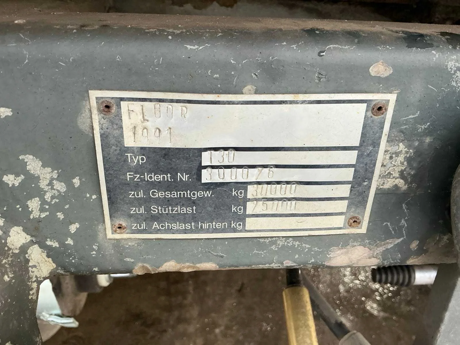 Voorzien van: luchtgeremd, luchtgeveerd, verlichting, landbouwkenteken, trekoog, asophanging matig, opbergruimte Nee Merk: Floor Type: 130 Bouwjaar: 1991 Chassisnummer VIN: 300076 Kenteken: LHV-86-J Datum eerste toelating (NL): 2021-11-05 Datum eerste toelating: 1991-06-30 APK vervaldatum: 1993-06-30 Aantal assen: 3 Laadvermogen: 5000kg Eigen gewicht: 25000kg Totale afmeting L: 10300mm Totale afmeting Breedte: 2600mm Totale afmeting Hoogte: 1200mm