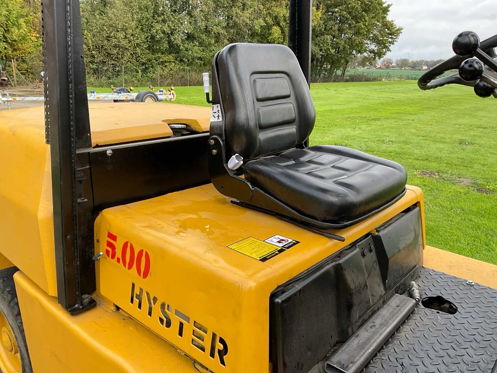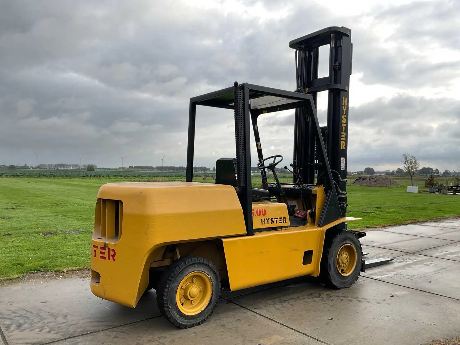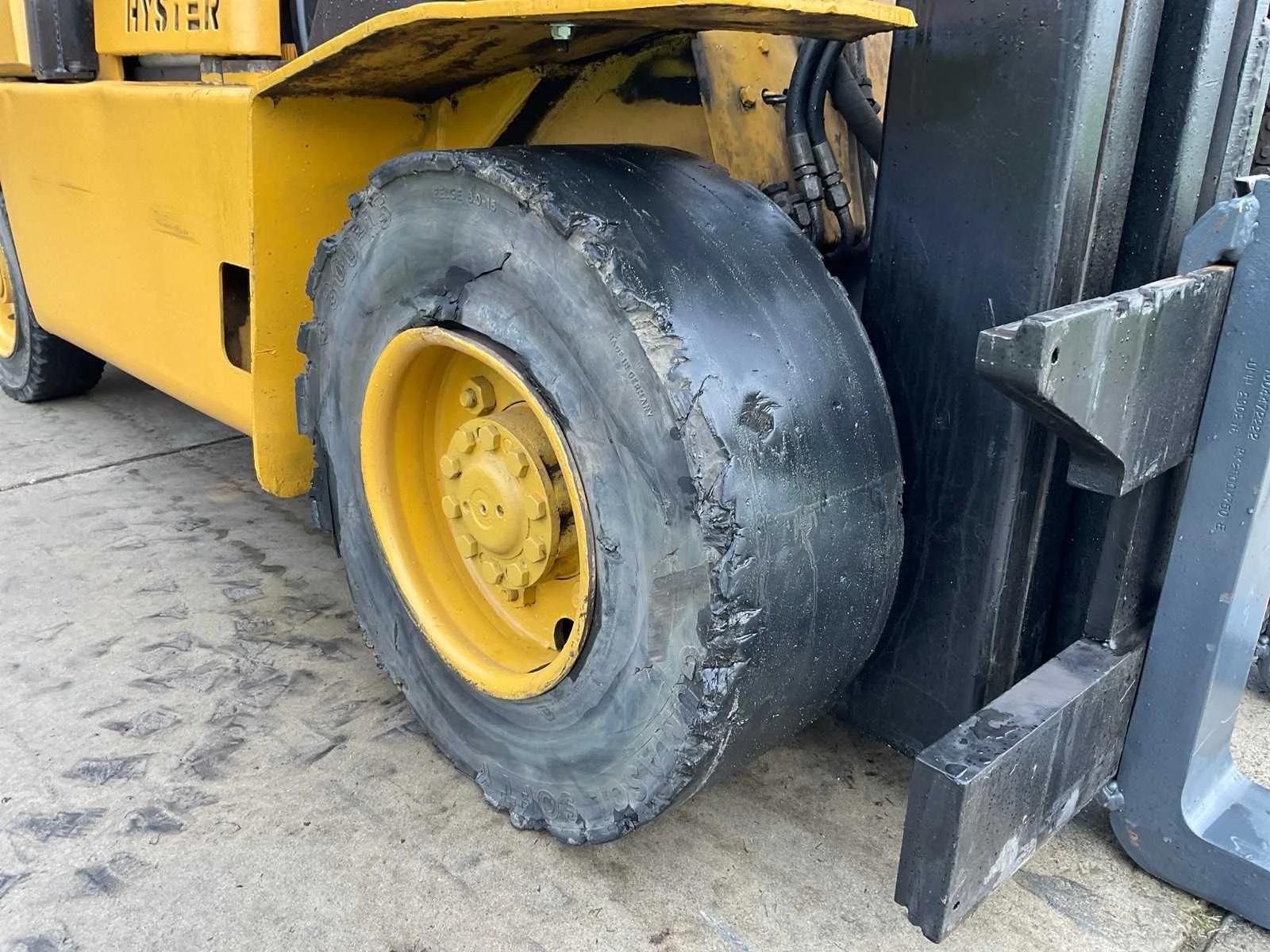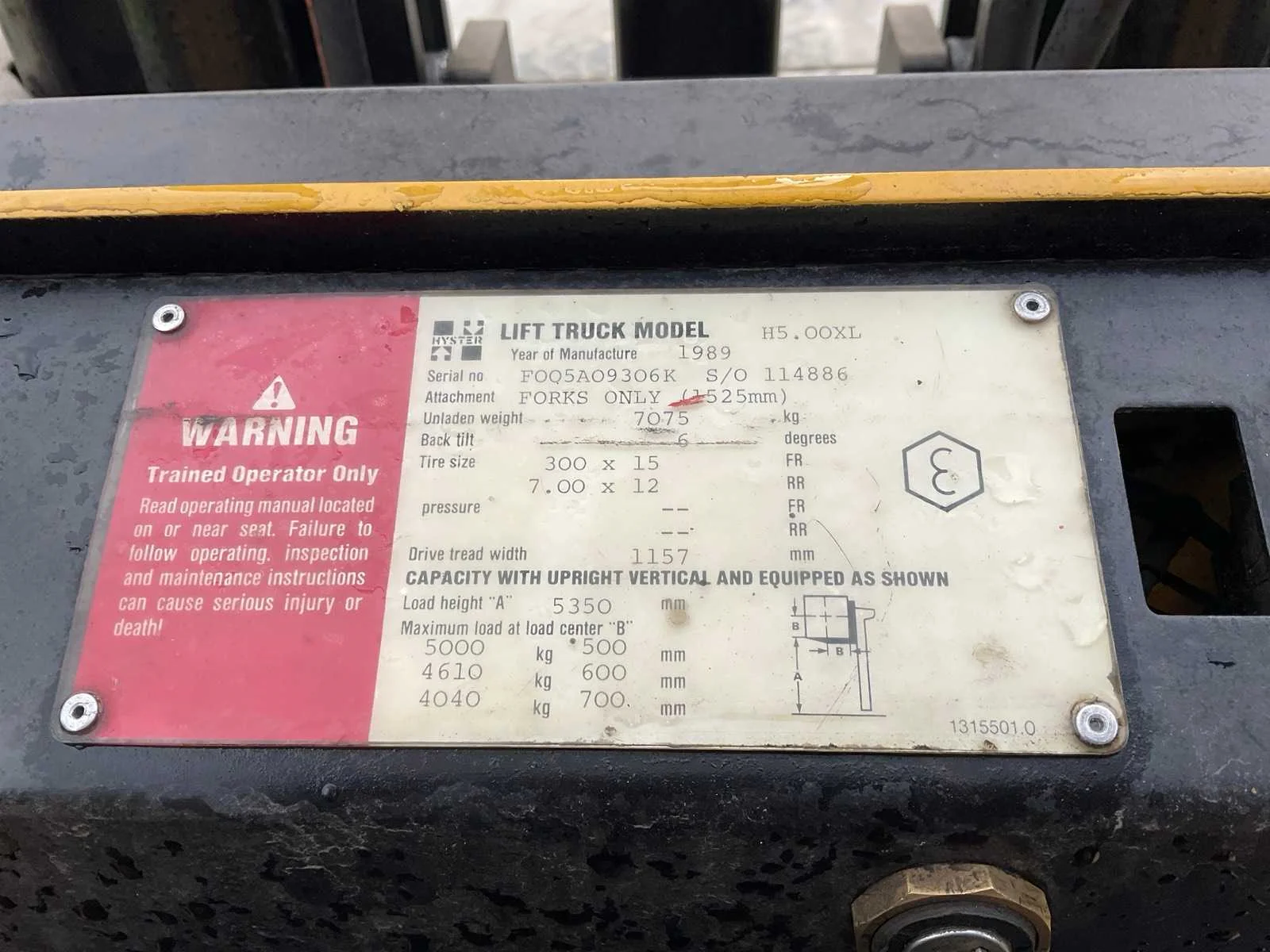 Voorzien van: hydraulische functie rechts-voor, kentekenregistratie (exportdocumenten en te naam stellen mogelijk door verkoper) Nee Merk: Hyster Type: H5.00XL Bouwjaar: 1989 Serienummer: FOO5A09306K114886 Brandstof: diesel Kenteken: TVT-26-L Mast: Triple Soort band: Volrubber banden Aantal wielen: 4 Afgelezen urenstand: 781 Hefvermogen: 5000kg Lepellengte: 1200mm Hefhoogte: 6000mm Totale afmeting L: 4350mm Totale afmeting Breedte: 1430mm Totale afmeting Hoogte: 3220mm