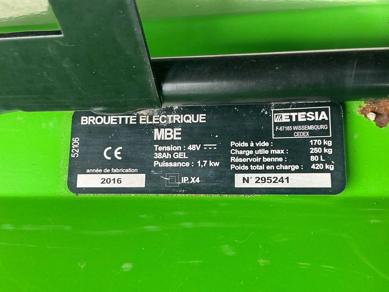 Serienummer: 295241, 48v, 1,7kw, externe lader, tot 420kg, urenstand: 293. Nee Merk: Etesia Model: MBE Lengte: 180cm Breedte: 90cm Hoogte: 130cm