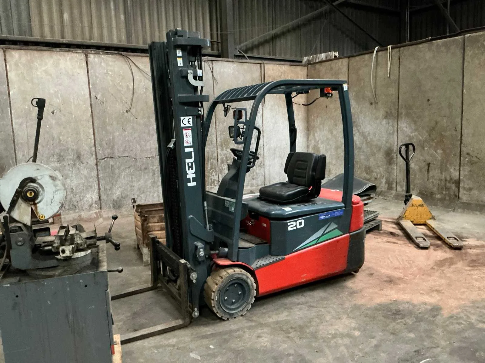 Voorzien van: HELI CPD20SSQ, elektrisch, hefvermogen: 2000Kg, volrubber banden, nieuwe accu's 2025, accu lader, defect rijmotoren, urenstand onbekend. Nee Merk: Heli Type: CPD20SQ Bouwjaar: 2012 Serienummer: 06020DA1011 Brandstof: Elektrisch Soort band: Volrubber banden Aantal wielen: 4 Accu lader: true Side-shift: true Duplex mast: true Eigen gewicht: 2562kg Lepellengte: 1200mm Vol rubber banden: true Minimale doorrijhoogte: 2400mm Totale afmeting L: 3400mm Totale afmeting Breedte: 1100mm Totale afmeting Hoogte: 2400mm