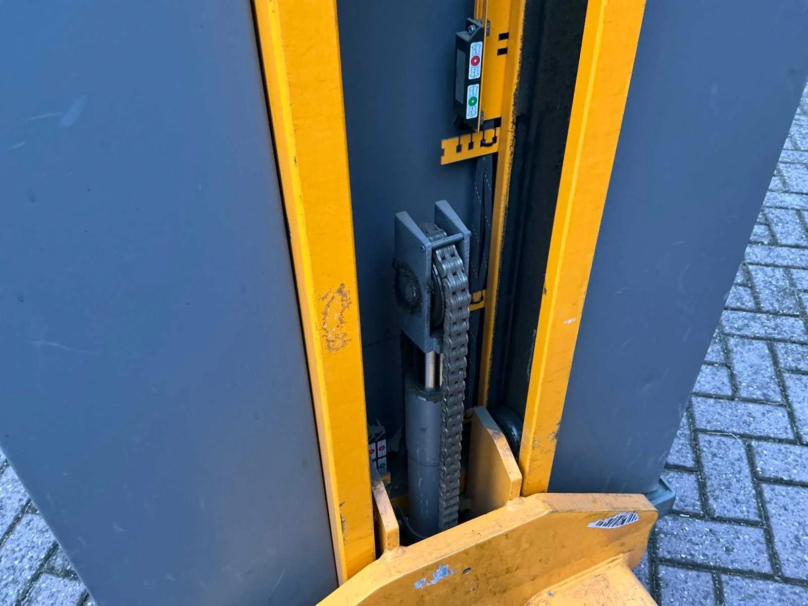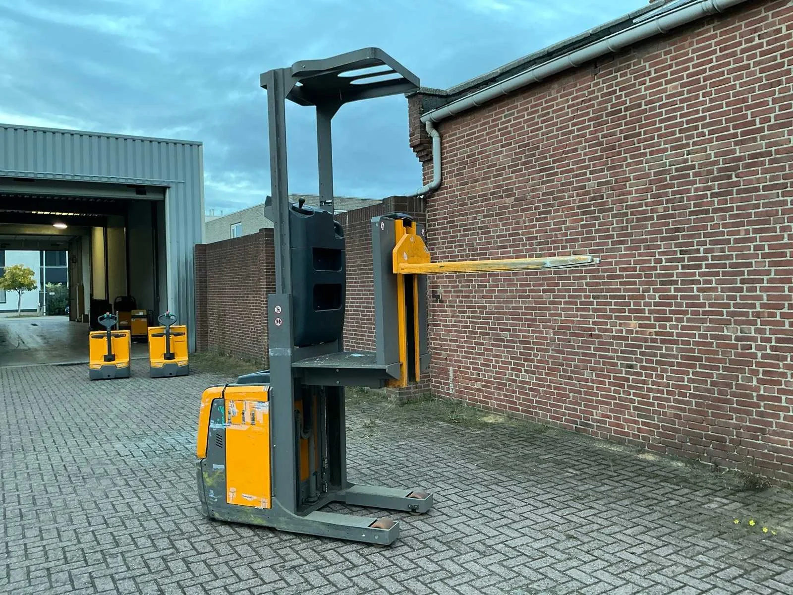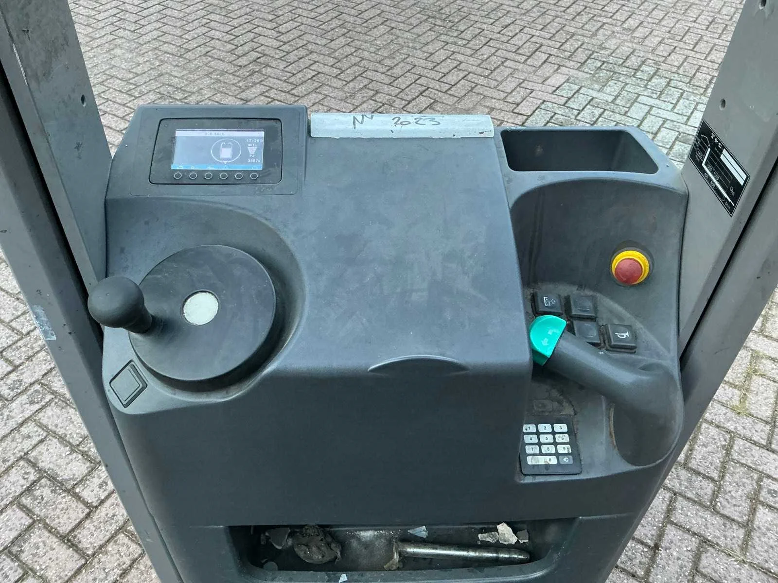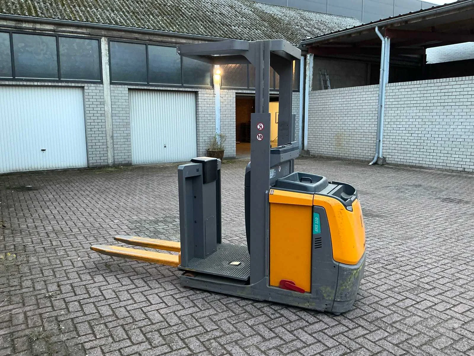 Voorzien van: accu gereviseerd, capaciteit 1000kg, hefhoogte 1000-2800 mm, rijsnelheid 13 km/h, accuspanning 24 V, totale lengte 2.890 mm, lastzwaartepunt van 600 mm, bekleding van de rugleuning, , ergonomische rubbermat, geïntegreerde DIN-A4-houder en andere opbergvakken, energie terugwinning, regeneratief remmen, 4-inch display en een selectie van 3 rijprogramma’s, contactslot, noodstop. No Merk: Jungheinrich Type: EKS 110 Bouwjaar: 2020 Serienummer: 91644811 Brandstof: Elektrisch Afgelezen urenstand: 3887 Eigen gewicht: 1661kg Hefvermogen: 1000kg Lepellengte: 1200mm Totale afmeting L: 2890mm Totale afmeting Breedte: 810mm Totale afmeting Hoogte: 1650mm