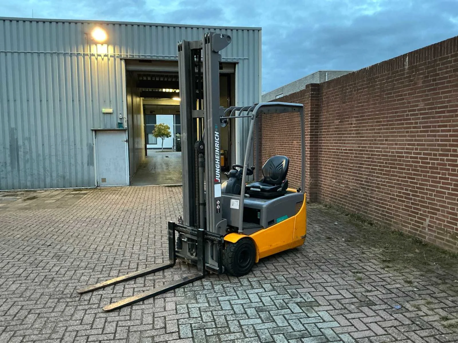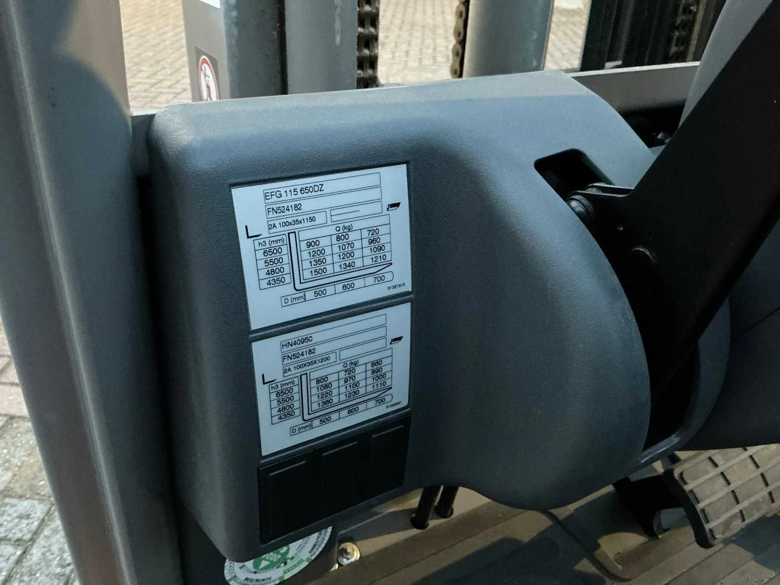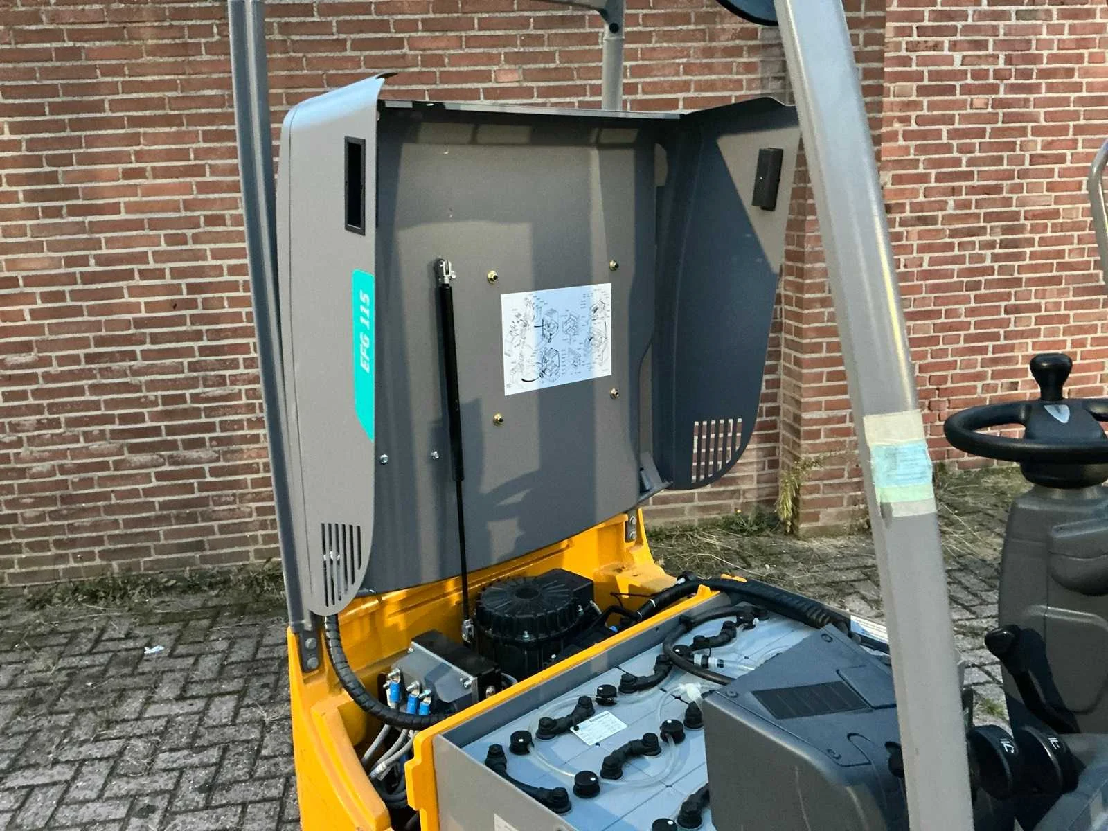 Voorzien van: 48V-accu, capaciteit 1500kg, hefhoogte 6.500 mm, energieterugwinning regeneratief remsysteem, tweemotorige voorwielaandrijving, veiligheidsgordel met contactschakelaar, onderhoudsvrije rijmotor, trekhaak, side-shift, totale breedte 990 mm, banden SE 2/1x, hijsmotor 6 kW, rijsnelheid met / zonder lading 12/12.5 km/h. Nee Merk: Jungheinrich Type: EFG 115 Bouwjaar: 2016 Serienummer: FN524182 Brandstof: Elektrisch Mast: Triple Soort band: Volrubber banden Aantal wielen: 3 Afgelezen urenstand: 218 Free-lift: true Side-shift: true Triple mast: true Eigen gewicht: 2900kg Lepellengte: 1200mm Max. hefhoogte: 6500mm Hefhoogte: 6500mm Vol rubber banden: true Minimale doorrijhoogte: 3550mm Totale afmeting L: 2900mm Totale afmeting Breedte: 990mm Totale afmeting Hoogte: 3550mm