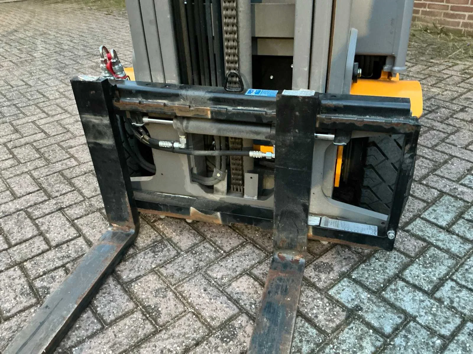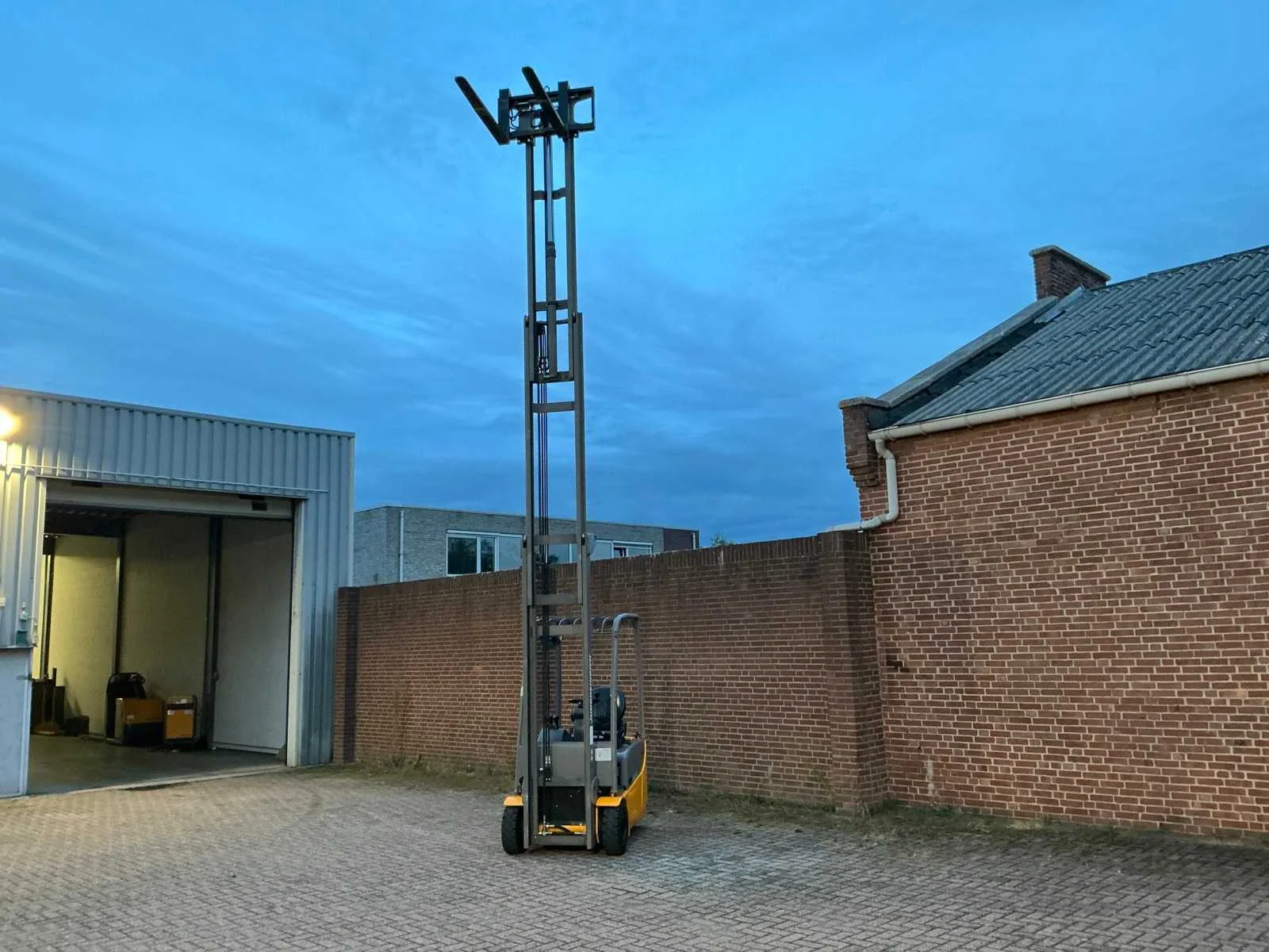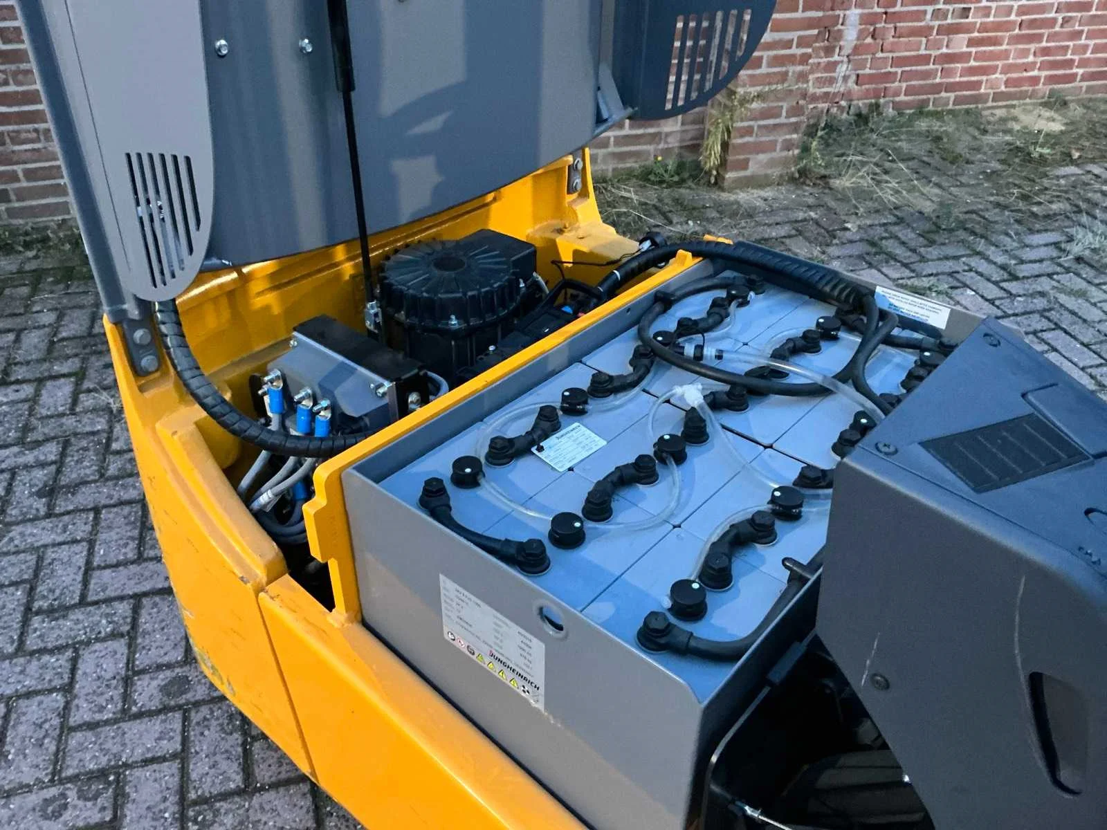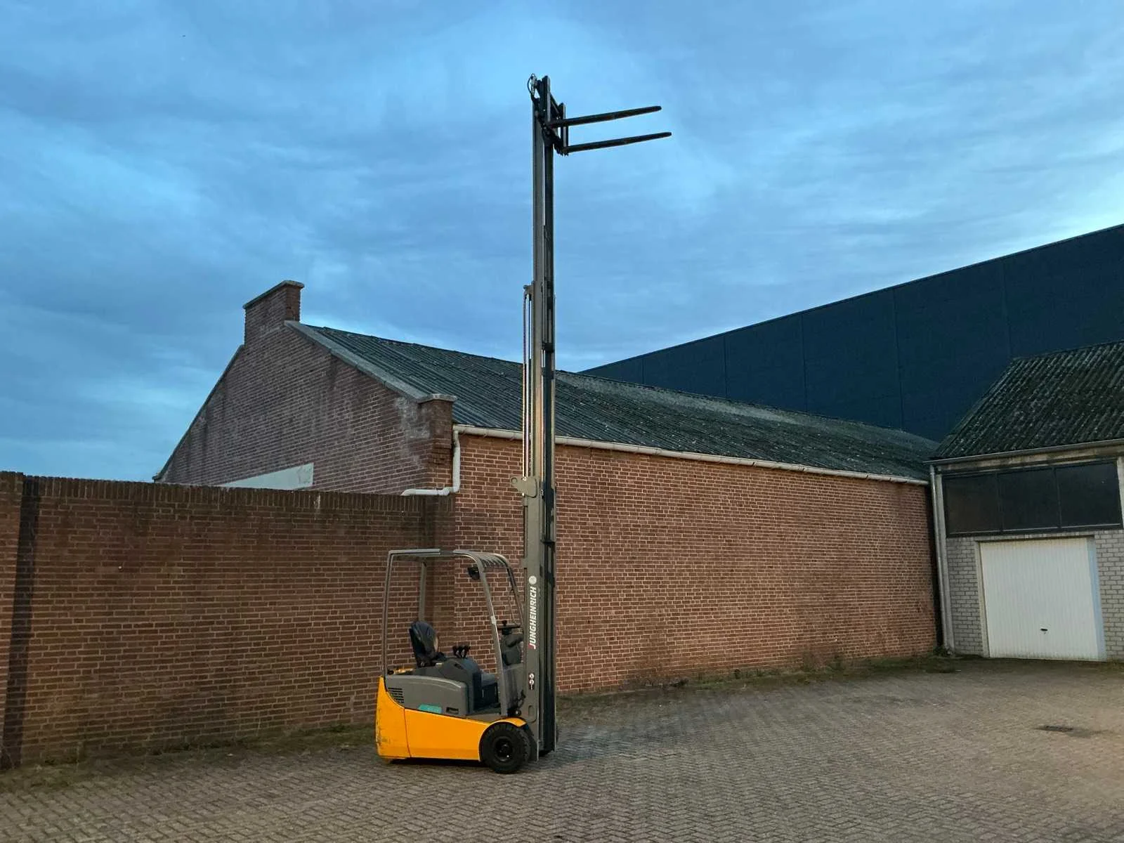 Voorzien van: 48V-accu, capaciteit 1500kg, hefhoogte 6.500 mm, energieterugwinning regeneratief remsysteem, tweemotorige voorwielaandrijving, veiligheidsgordel met contactschakelaar, onderhoudsvrije rijmotor, trekhaak, side-shift, totale breedte 990 mm, banden SE 2/1x, hijsmotor 6 kW, rijsnelheid met / zonder lading 12/12.5 km/h. Nee Merk: Jungheinrich Type: EFG 115 Bouwjaar: 2016 Serienummer: FN524182 Brandstof: Elektrisch Mast: Triple Soort band: Volrubber banden Aantal wielen: 3 Afgelezen urenstand: 218 Free-lift: true Side-shift: true Triple mast: true Eigen gewicht: 2900kg Lepellengte: 1200mm Max. hefhoogte: 6500mm Hefhoogte: 6500mm Vol rubber banden: true Minimale doorrijhoogte: 3550mm Totale afmeting L: 2900mm Totale afmeting Breedte: 990mm Totale afmeting Hoogte: 3550mm