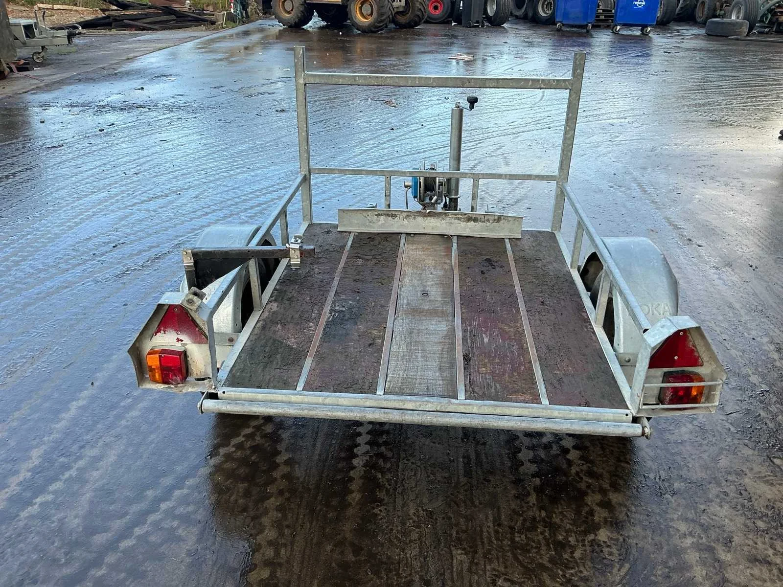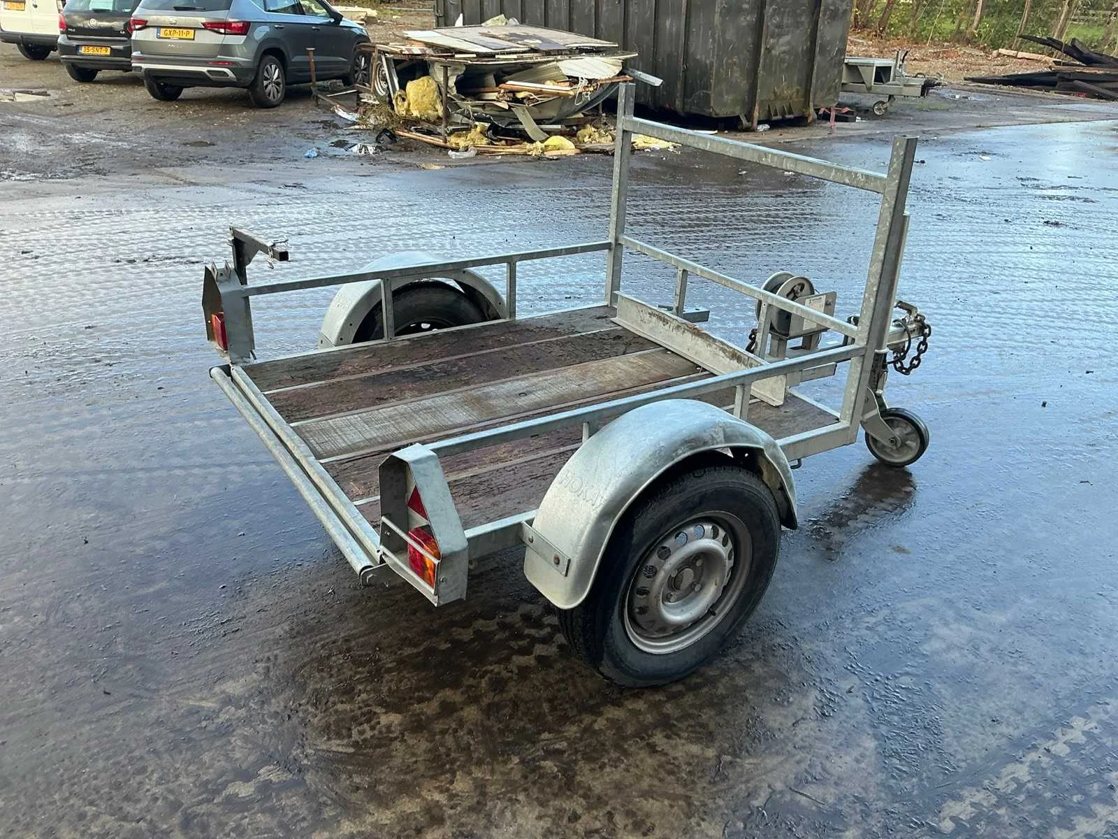 Voorzien van: karretje voor trilplaat te gebruiken, verlichting, 3 ploeg stekker, neuswiel, trekhaakkoppeling, lier Nee Merk: Hoka Laadbak afmeting l: 1300cm Laadbak afmeting b: 1100cm Hoogte: 1200cm Lengte: 2500cm Breedte: 157cm