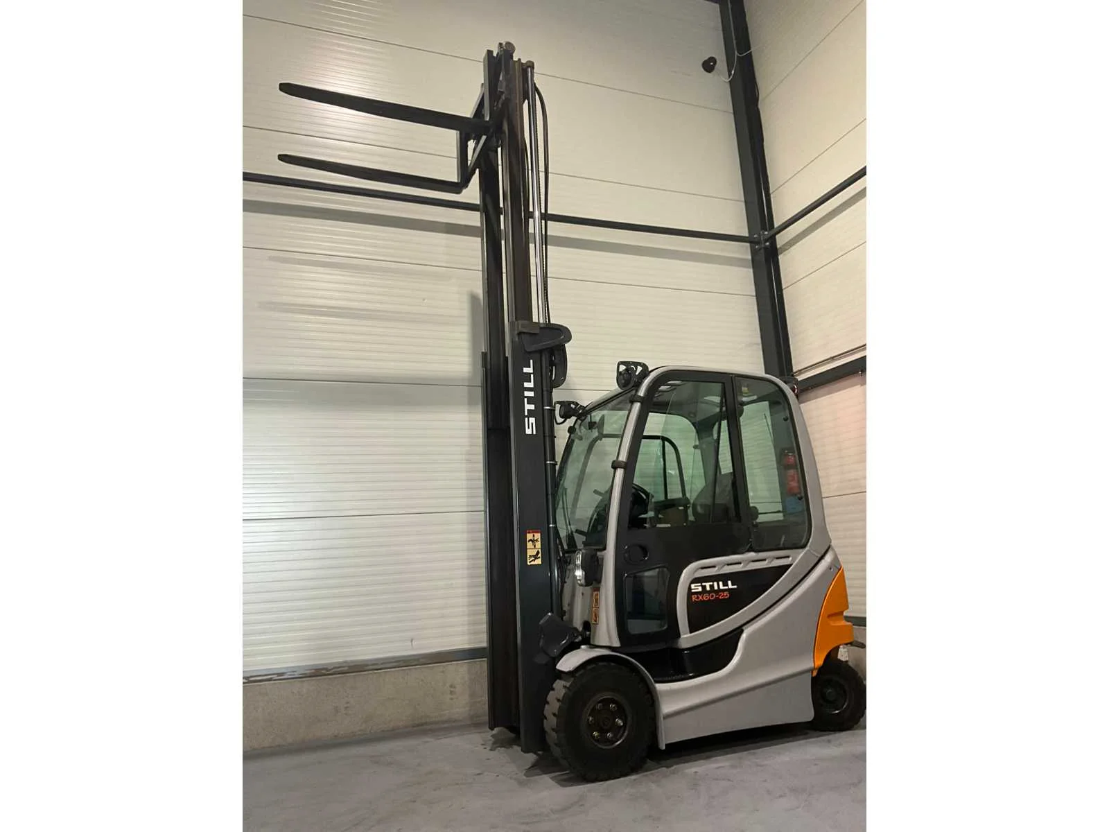 Extra opties : Blue spot , Led verlichting voor en achter , dagrijverlichting , brandblusser , joy stick , ongebruikte lepels , volledige cabine , binnen verlichting , zwaailamp Nee Merk: Still Type: RX 60-25 Bouwjaar: 2016 Serienummer: 516345G00021 Aantal wielen: 4 Afgelezen urenstand: 1873 Eigen gewicht: 4575kg Hefvermogen: 2500kg Hefhoogte: 3670mm Totale afmeting L: 3540mm Totale afmeting Breedte: 1070mm Totale afmeting Hoogte: 2490mm