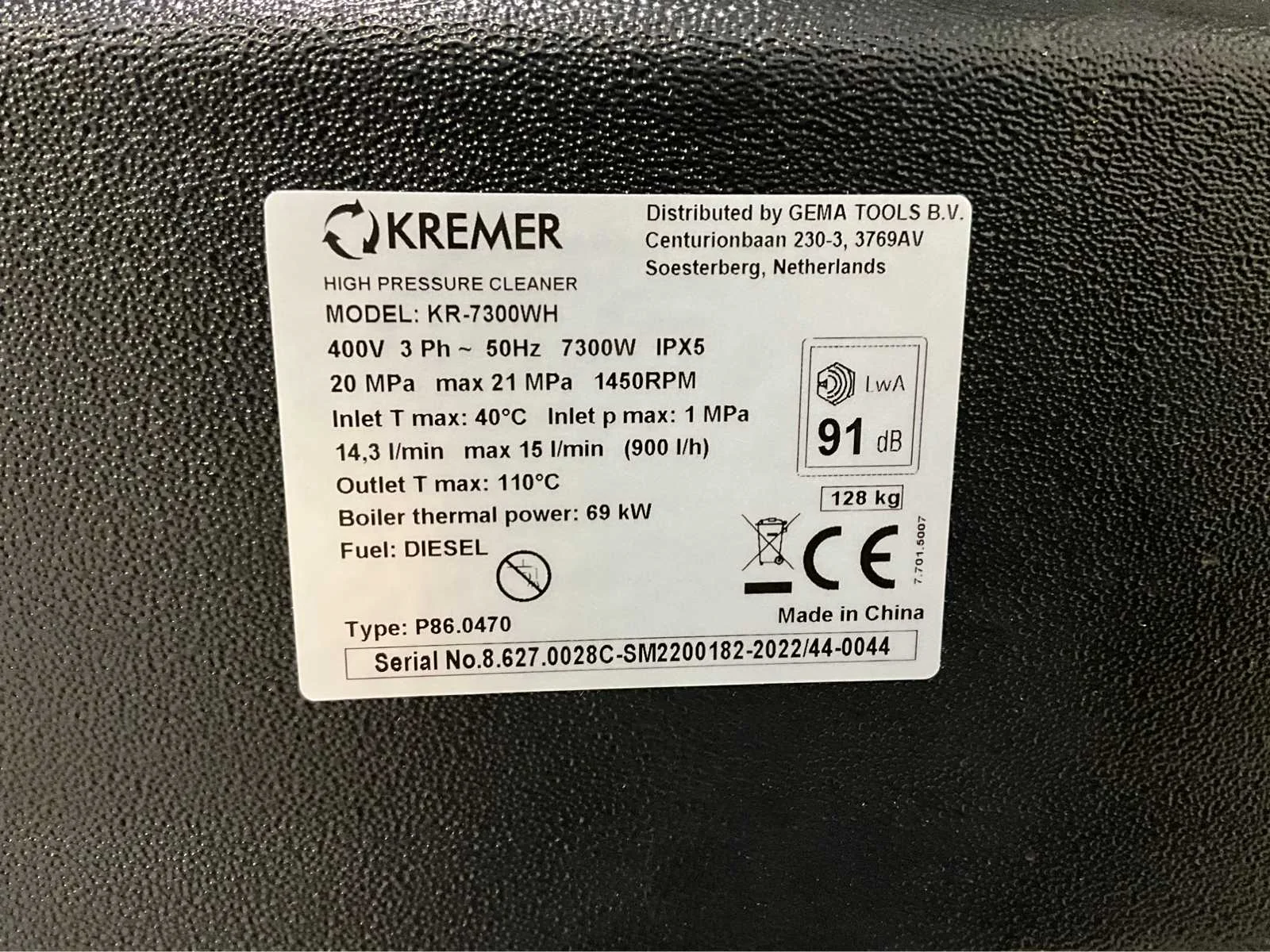 Kremer - 2025 - kr 7300 warm water diesel - hogedrukreiniger