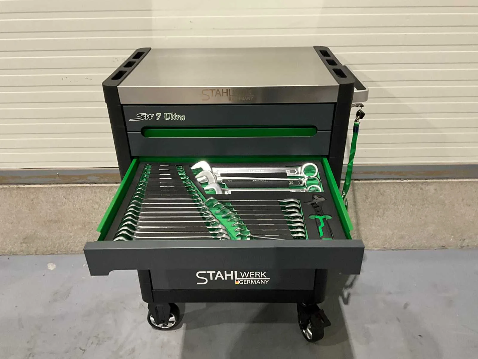 Ongebruikt , 3 stopcontacten , 2 usb poorten 13 stuks 1/4” doppen: 4-4,5-5-5,5-6-7-8-9-10-11-12-13-14mm 10 stuks 3/8” doppen: 13-14-15-16-17-18-19-20-21-22mm 14 stuks 1/2” doppen: 12-13-14-15-17-18-19-21-22-23-24-27-30-32mm 12 st. 1/2” dopsleutel: 12-13-14-15-16-17-18-19-21-22-24mm 3 stuks 1/4“ 3/8” 1/2” duwstang 3 stuks 1/4“ 3/8” 1/2” kruiskoppeling 2 st. 1/4“ maat 2” & 4” verlengstang 2 st. 3/8“ maat 3”&6” verlengstang 2 st. 1/2“ maat 5”&10” verlengstang 3 stuks 1/4“ 3/8” 1/2” ratelhandgreep 72T 1 st. 1/4“ snijhendel 1/2” Dr. koppeling 10 st. Bits PH3-4, PZ3-4, SL8, T40-45-50, H7-8; 12 st. 1/2” inbusbits maat: H14-17-19, M16, M9, MP9, M16, T80, M14, T40-45-50. 45 stuks 1/4” dopsleutels: SL4-SL5,5-... (en zo verder volgens uw lijst) 12 stuks 1/2” Pneumatische doppen: 10-11-12... (enzovoort) 9 stuks Lange inbussleutels: 1,5-2-2,5-... (enzovoort) 14 stuks schroevendraaiers: SL8*175-SL8*150-... (enzovoort) 7 stuks schroevendraaiers: SL6*38-SL5*100-... (enzovoort) 9 stuks. Flachringschlüssel:8-9-10-11-... (enzovoort) 21 stuks Kombischlüssel:6-7-8-9-10-11-... (enzovoort) 1 st. 8” verstelbare moersleutel 9 stuks schroevendraaiers: H2*100-5*150-... (enzovoort) 8 stuks T-Stecknuss:6-7-8-9-10-11-12-13mm 1 st. 8” combinatietang 1 stuk 8” naaldneuzen 1 x 8” zijkniptang 1 x 10” waterpomptang 1 x 10” vergrendeltang 1 stuk 7” binnenringtang recht 1 stuk 7” binnenringtang gebogen 1 x 7” buitenringtang recht 1 st. 7” buitenringtang gebogen 1 st. Meetlint 5 Nee Merk: Stahlwerk Type: SW 7 Bouwjaar: 2025 Aantal laden: 7 Met inhoud: true
