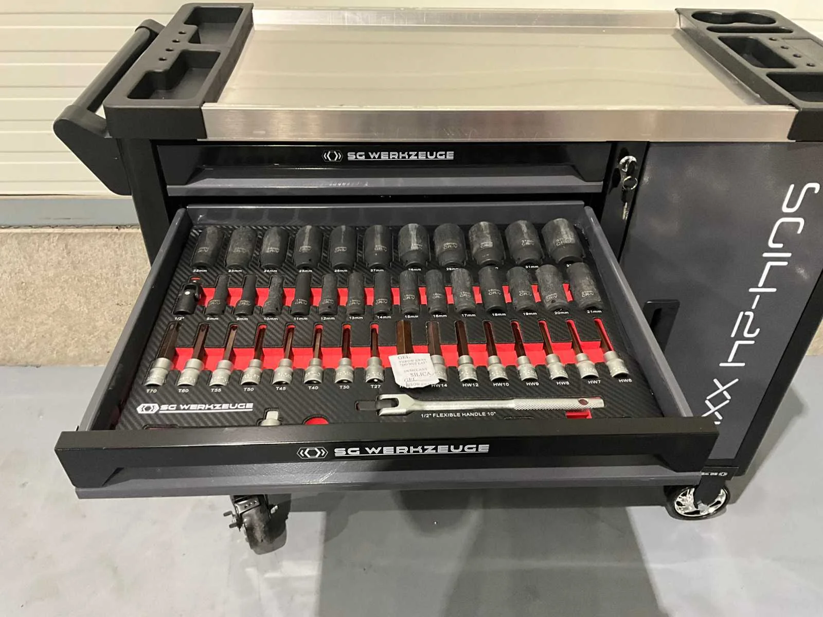 Ongebruikt , met zwenkwielen Nee Merk: SG Werzeuge Bouwjaar: 2025 Aantal laden: 7 Met inhoud: true Eigen gewicht: 75kg Totale afmeting L: 1050mm Totale afmeting Breedte: 480mm Totale afmeting Hoogte: 760mm