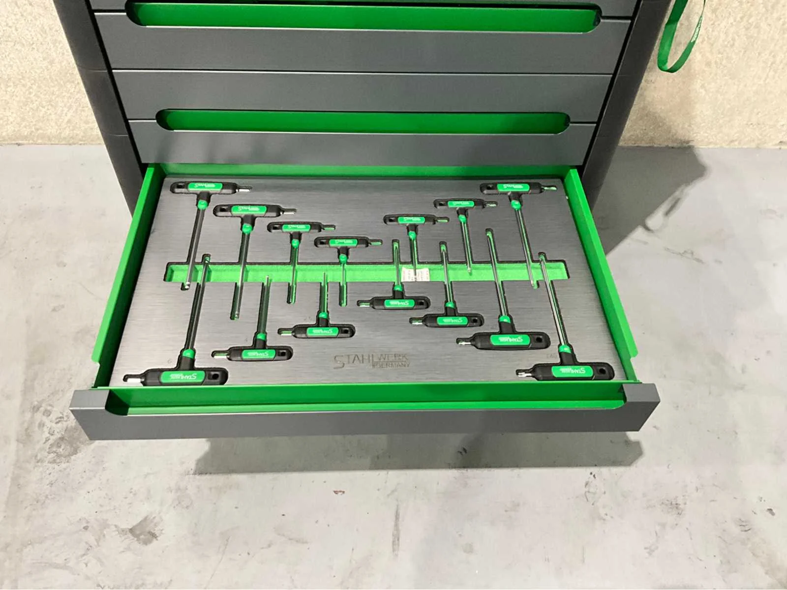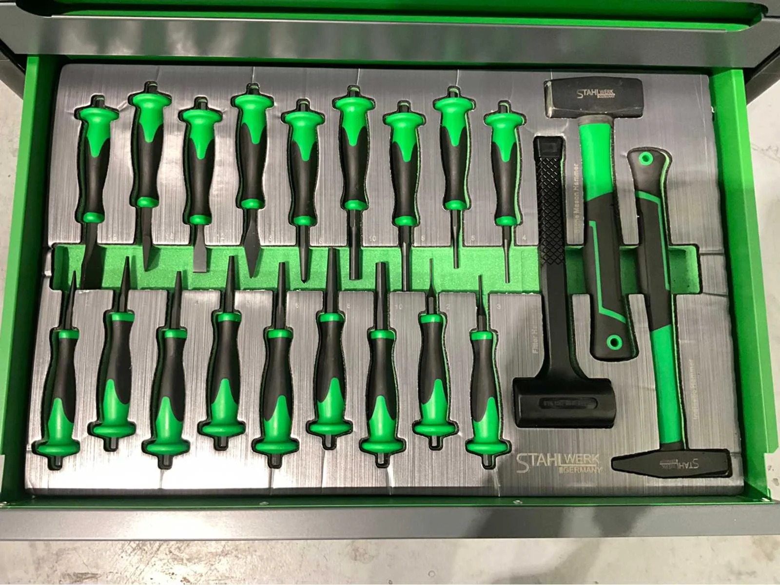 Ongebruikt 13 stuks 1/4" steeksleutelmaat: 4-4,5-5-5,5-6-7-8-9-10-11-12-13-14 mm 10 stuks 3/8" steeksleutelmaat: 13-14-15-16-17-18-19-20-21-22 mm 14 stuks 1/2" dopsleutelmaat: 12-13-14-15-17-18-19-21-22-23-24-27-30-32 mm 12 stuks 1/2" diepe steeksleutelmaat: 12-13-14-15-16-17-18-19-20-21-22-24 mm 3 stuks 1/4“ 3/8” 1/2" schuifstang 3 stuks 1/4“ 3/8” 1/2" universele koppeling 2 stuks 1/4“ maat 2” & 4" verlengstang 2 stuks 3/8“ maat 3”&6" verlengstang 2 stuks 1/2“ maat 5”&10" verlengstang 3 stuks 1/4“ 3/8” 1/2" ratelgreep 72T 1 stuk 1/4" snijgreep 1/2” Dr. koppeling 10 stuks bits PH3-4, PZ3-4, SL8, T40-45-50, H7-8; 12 stuks 1/2” steeksleutelbits: H14-17-19, M16, M9, MP9, M16, T80, M14, T40-45-50. 45 stuks 1/4”Dr. steeksleutelbits: SL4-SL5.5-... (enzovoort volgens uw lijst) 12 stuks 1/2” pneumatische dopsleutels: 10-11-12... (enzovoort) 9 stuks lange inbussleutels: 1,5-2-2,5-... (enzovoort) 14 stuks schroevendraaiers: SL8*175-SL8*150-... (enzovoort) 7 stuks schroevendraaiers: SL6*38-SL5*100-... (enzovoort) 9 stuks platte ringsleutels: 8-9-10-11-... (enzovoort) 21 stuks combinatiesleutels: 6-7-8-9-10-11-... (enzovoort) 1 stuk 8” verstelbare sleutel 9 stuks schroevendraaiers: H2*100-5*150-... (enzovoort) 8 stuks T-dopsleutels: 6-7-8-9-10-11-12-13 mm 1 stuk 8" combinatietang 1 stuk 8" punttang 1 stuk 8" zijkniptang 1 stuk 10" waterpomptang 1 stuk 10" versteltang 1 stuk 7" rechte binnenringtang 1 stuk 7" gebogen binnenringtang 1 stuk 7" rechte buitenringtang 1 stuk 7" buitenring Nee Merk: Stahlwerk Type: SW 9 Bouwjaar: 2025 Aantal laden: 9 Met inhoud: true