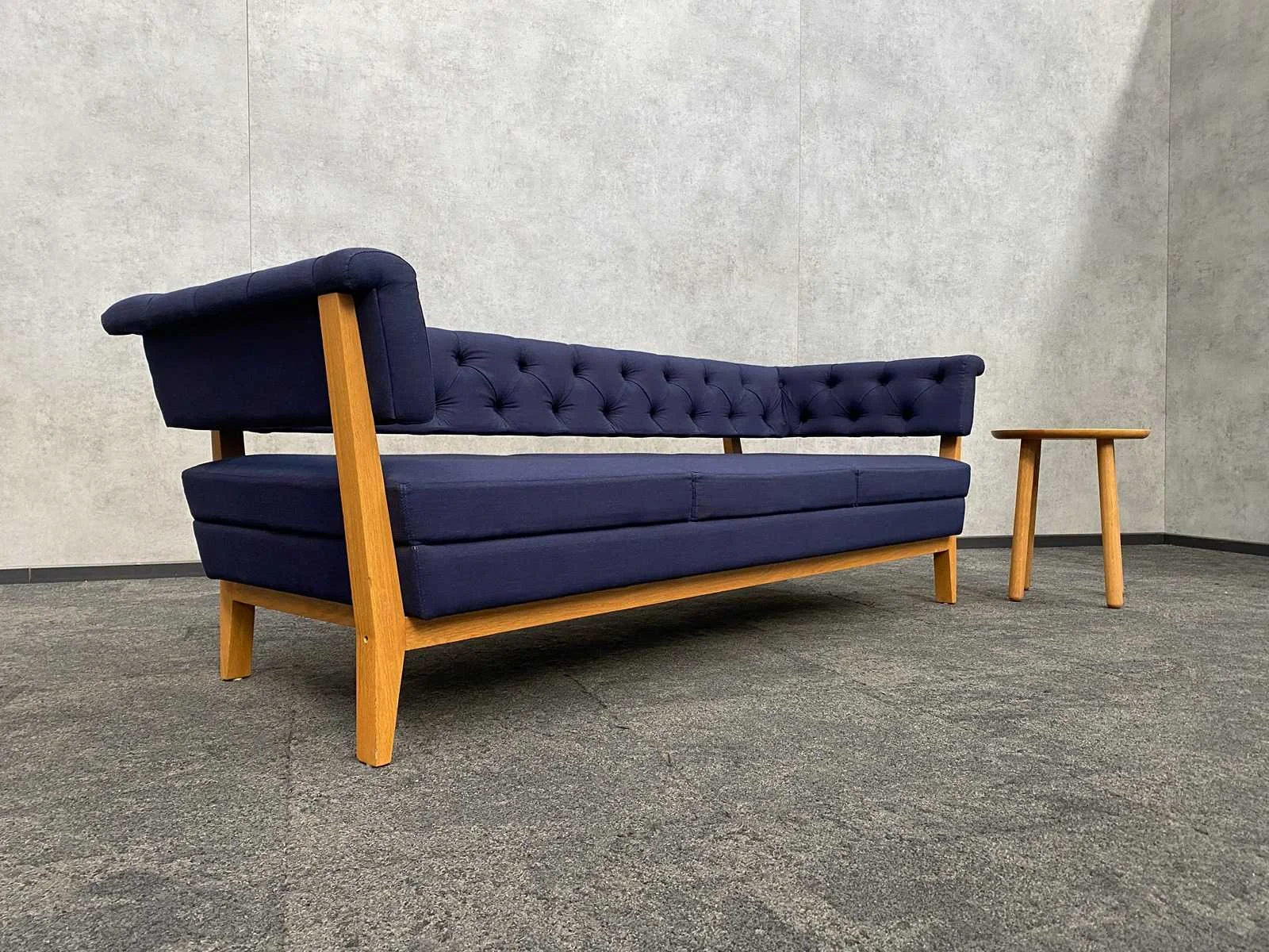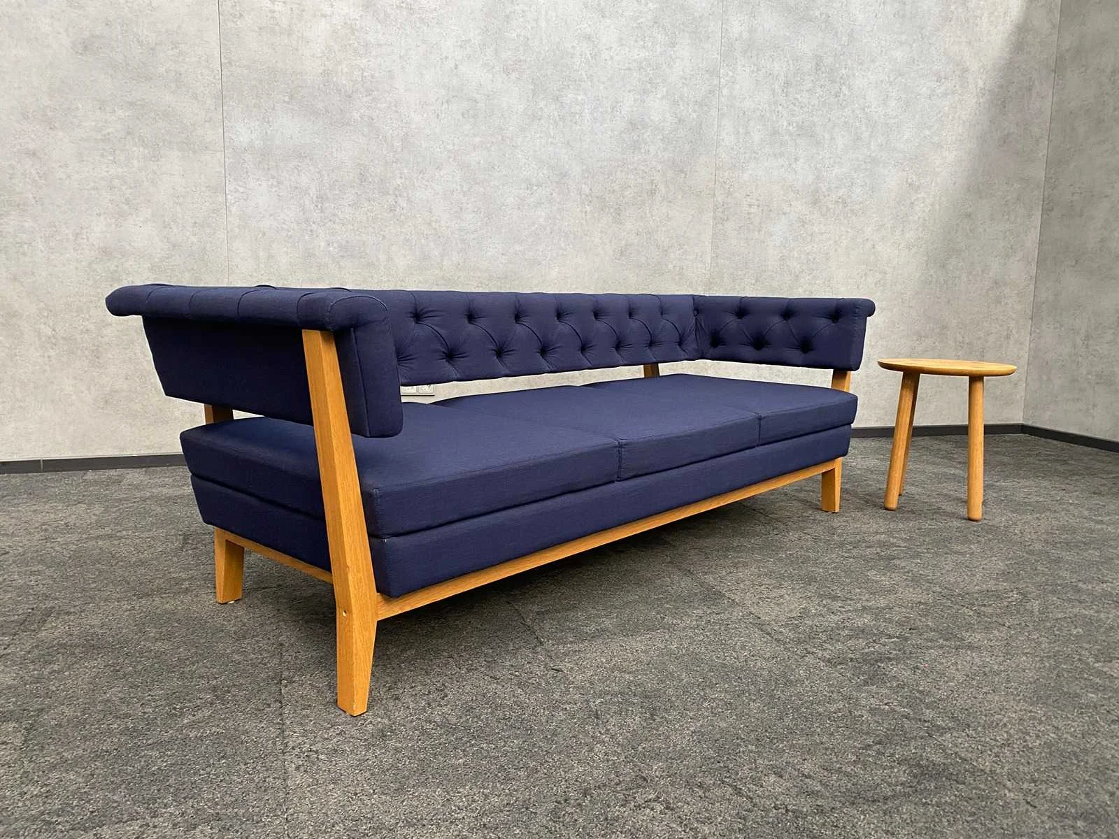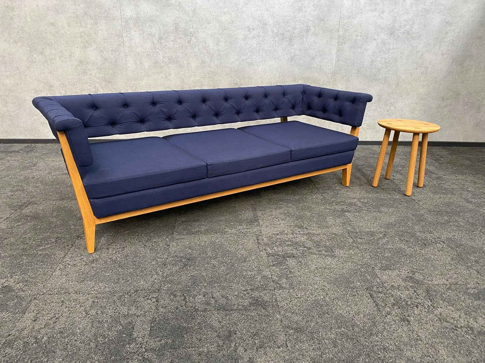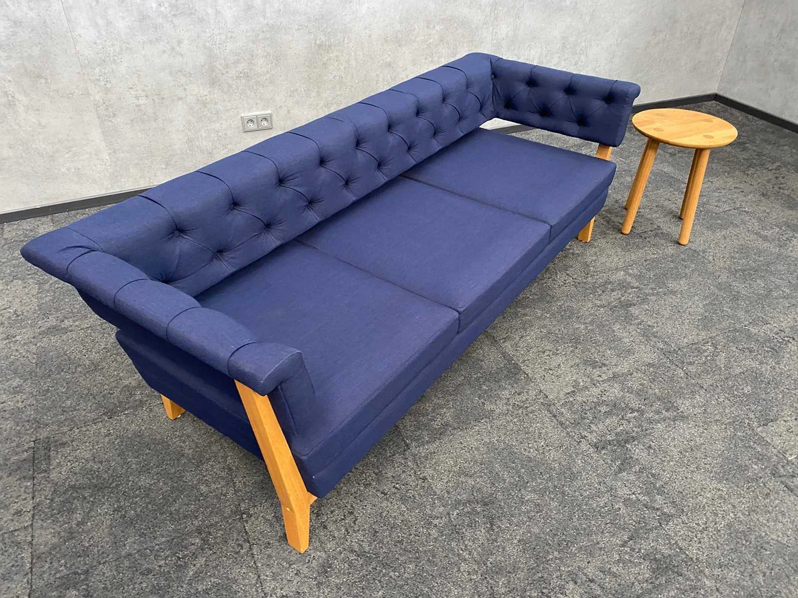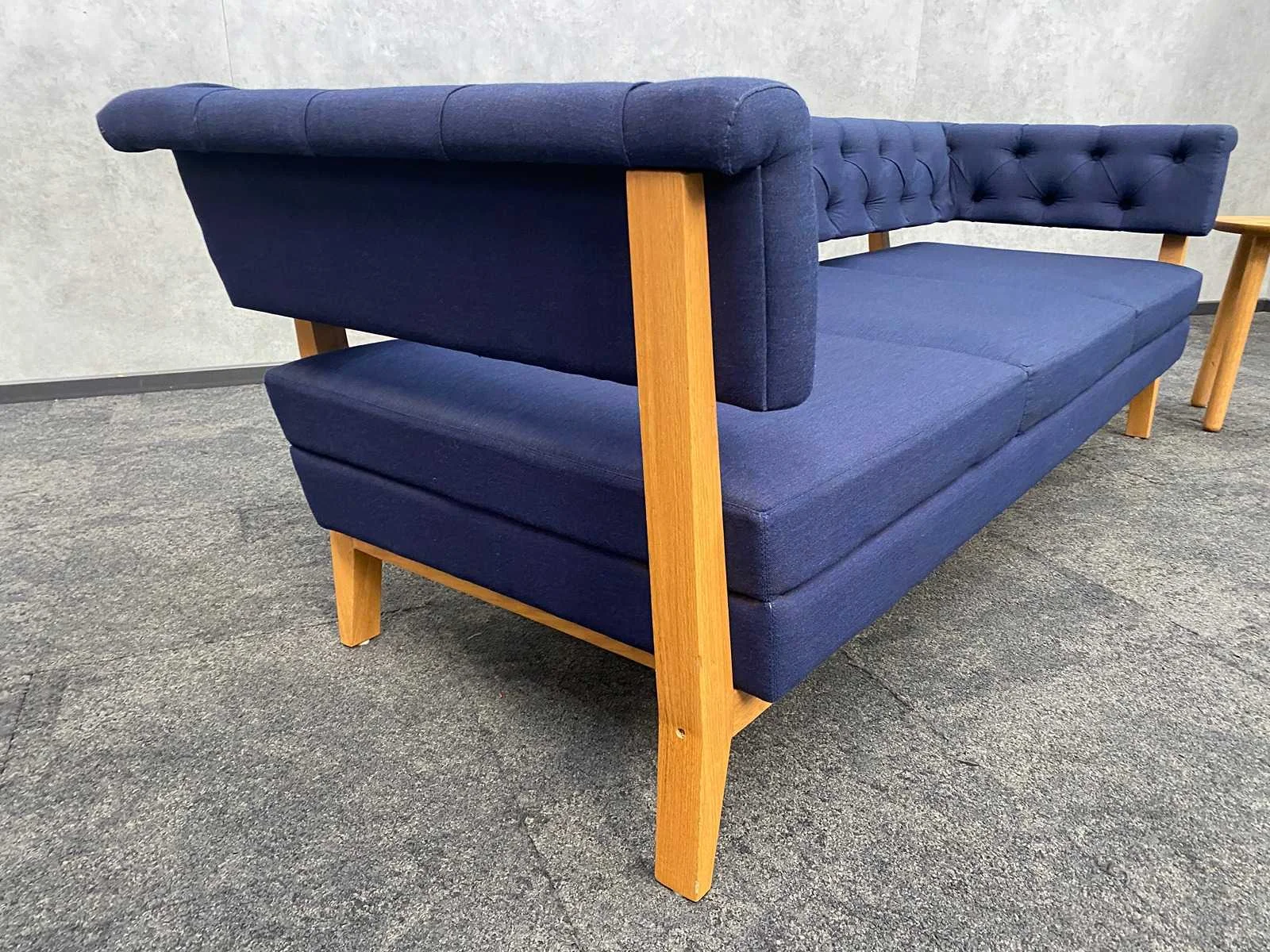 Afm. Bolia coffee table ca. hoogte 49 cm. en diameter 42 cm. -- Afm. Lyndon Arlington sofa ca. hxbxd 70x204x80 cm. zithoogte ca. 40 cm. Nee Merk: Lyndon Arlington/ Bolia