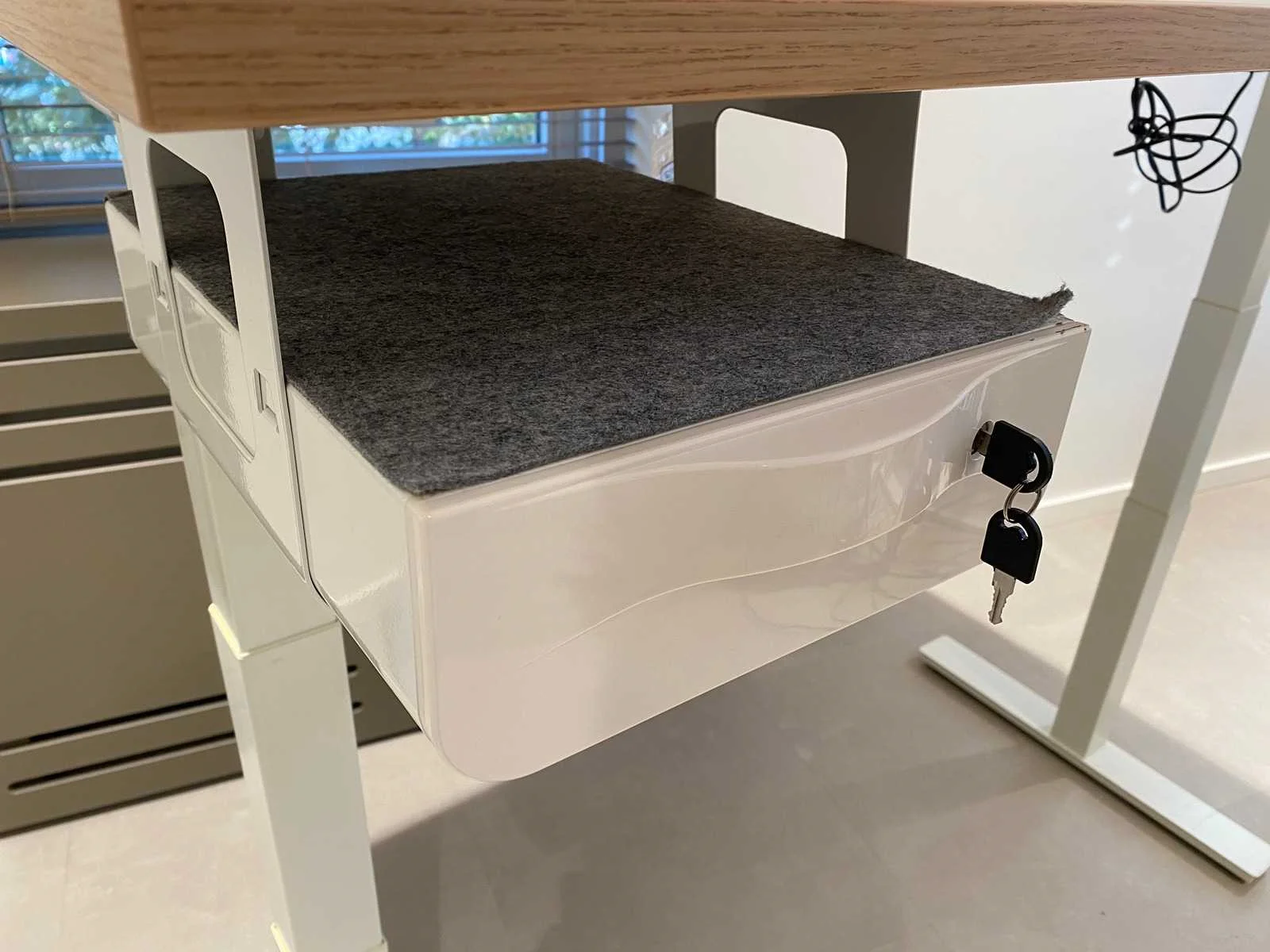 Hoogte ca. 65 - 130 cm. --- v.v. kabeldoorvoer, DUAL motor, bureaulade met sleutel, elektrische bediening met USB aansluiting. Nee Zit-sta: true Elektrisch verstelbaar: true Kleur: wit, hout Breedte: 160cm Hoogte: 130cm Materiaal: metaal, melamine Diepte: 80cm